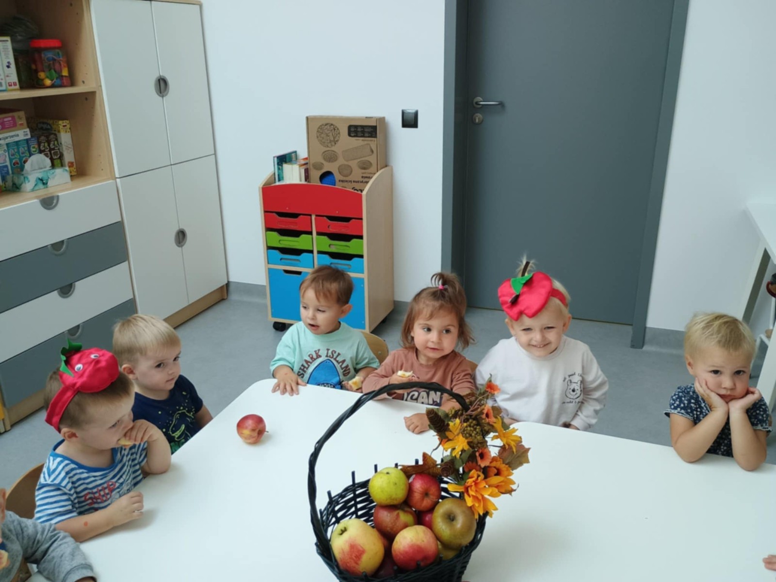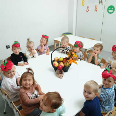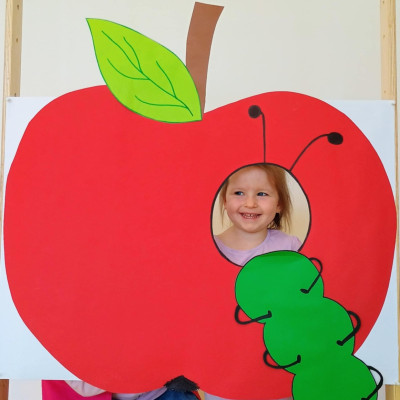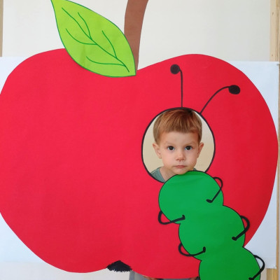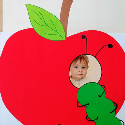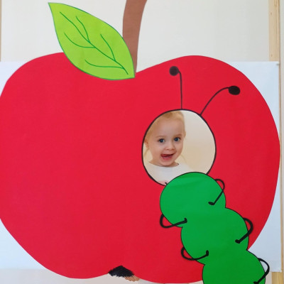 Nasi Żłobkowicze pozowały do zdjęć w fotobudce w kształcie.... jabłka oczywiście. Na koniec odbyła się jabłkowa uczta .