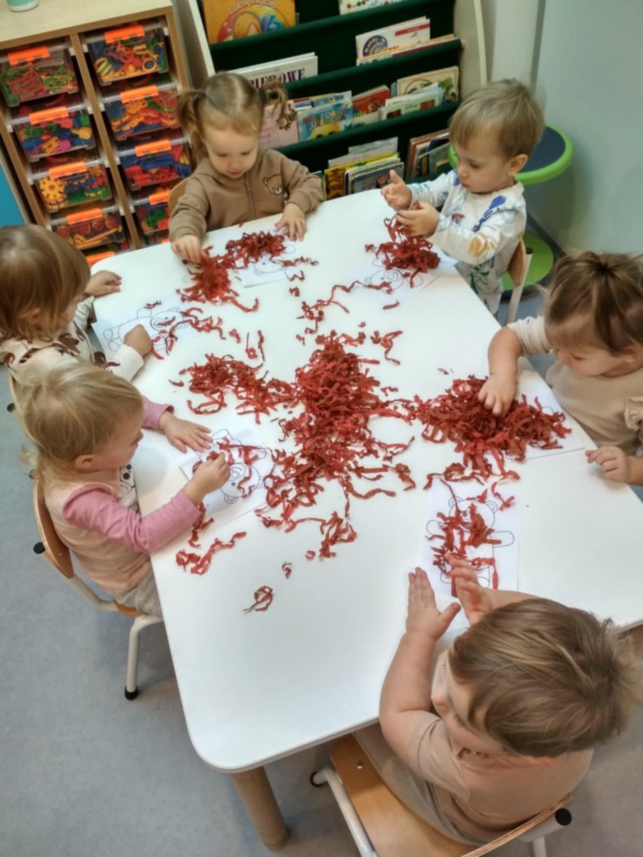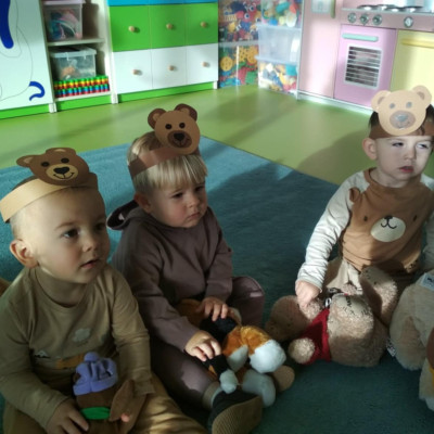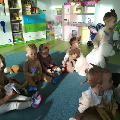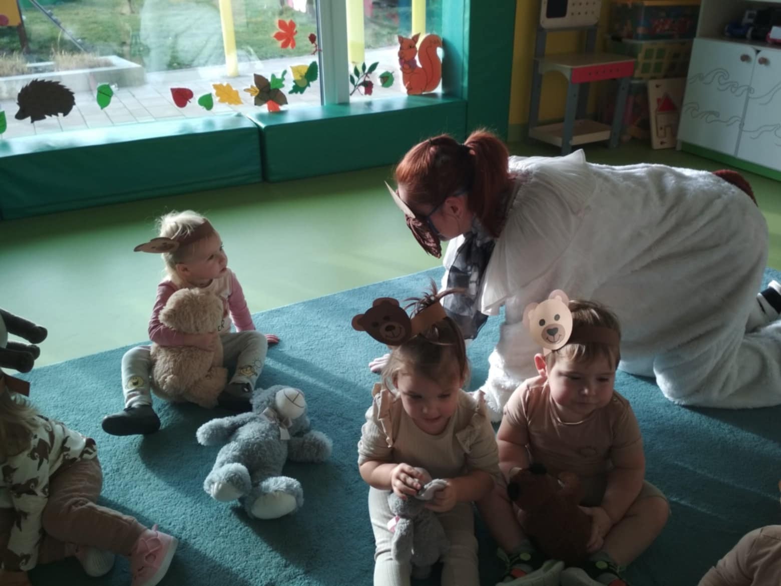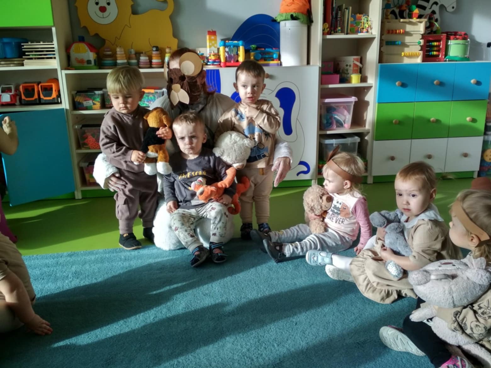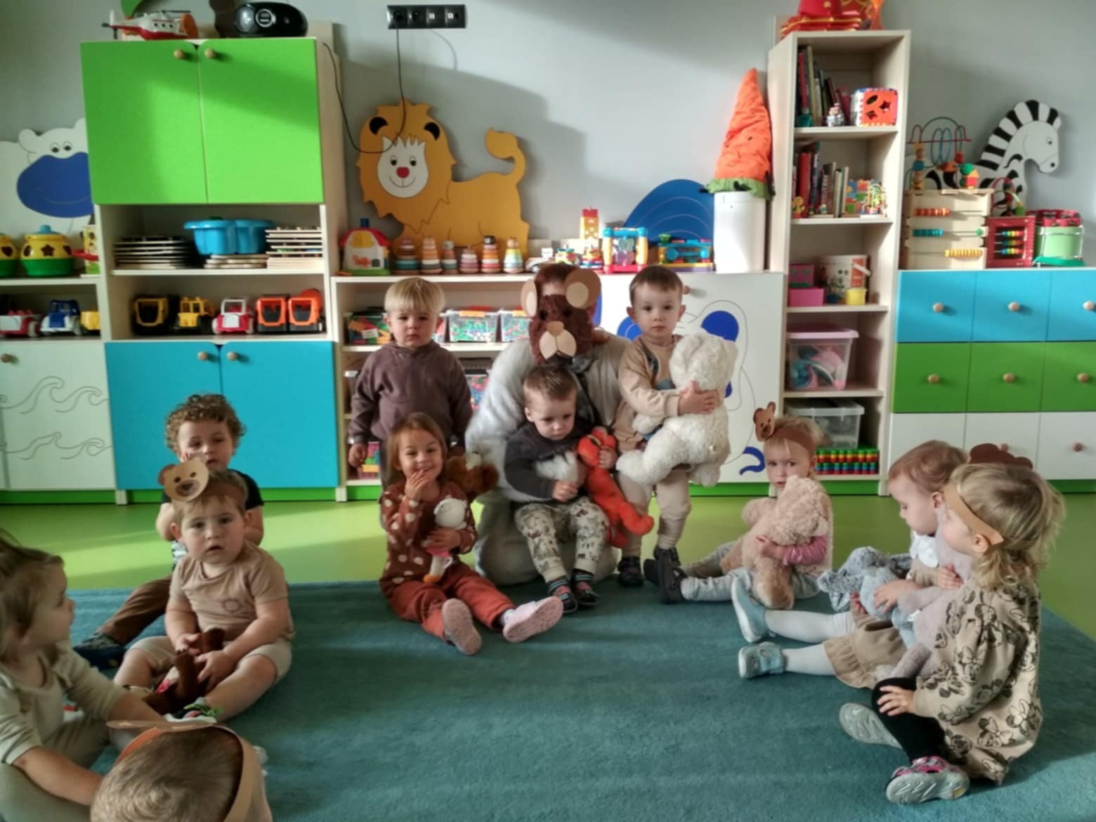 Zdjęcie przedstawia dzieci podczas zajęć w żłobku z okazji dnia misia