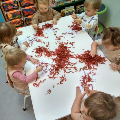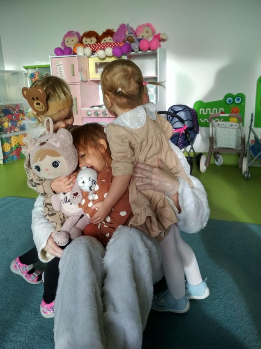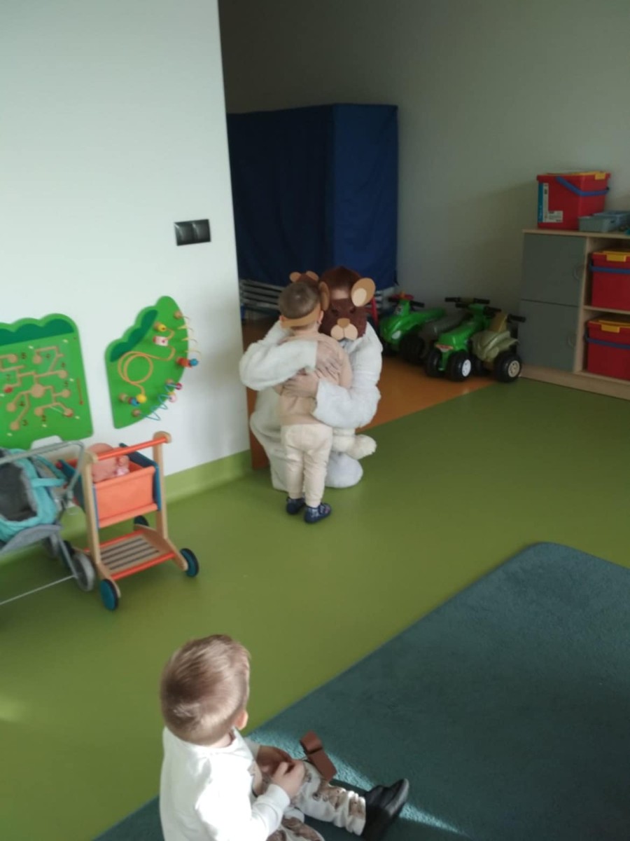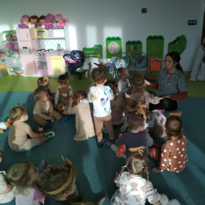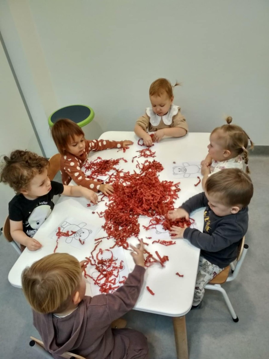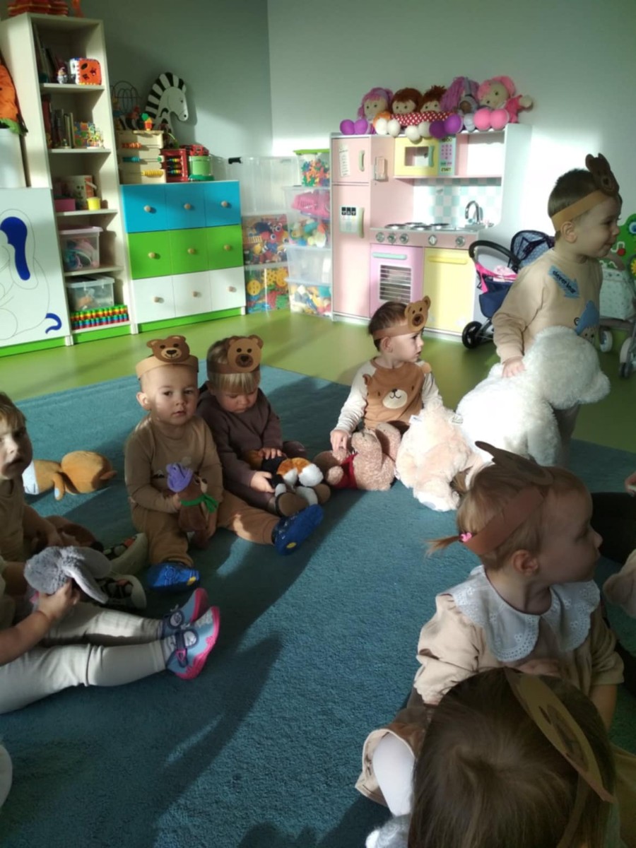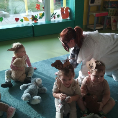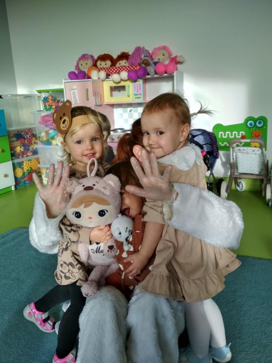 Zdjęcie przedstawia dzieci podczas zajęć w żłobku z okazji dnia misia