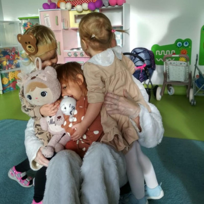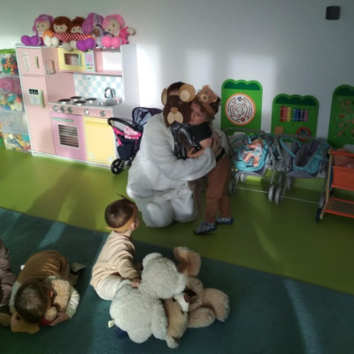 25 listopada obchodziliśmy Dzień Pluszowego Misia. Z tej okazji ciocie przygotowały dla dzieci wiele atrakcji: zabawy ruchowe, zgadywanki, śpiewanie piosenek oraz misiowe tańce z naszym gościem Misiem Lulusiem. Dzieci wykonały piękną pracę plastyczną z wykorzystaniem szablonu misia, kleju i bibuły. Ten dzień w naszym żłobku był pełen uśmiechu, radości oraz wspólnej zabawy ![]()