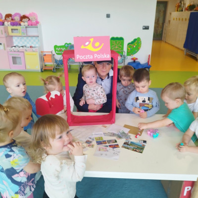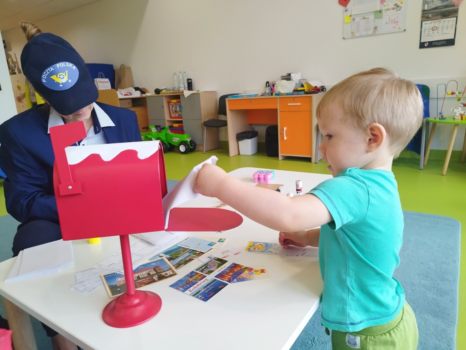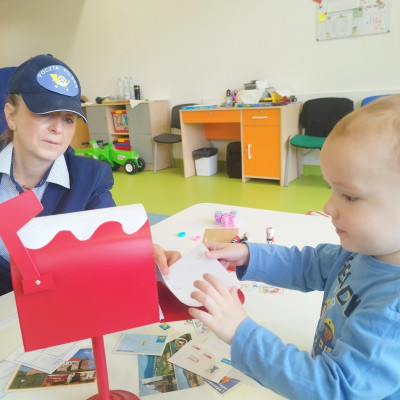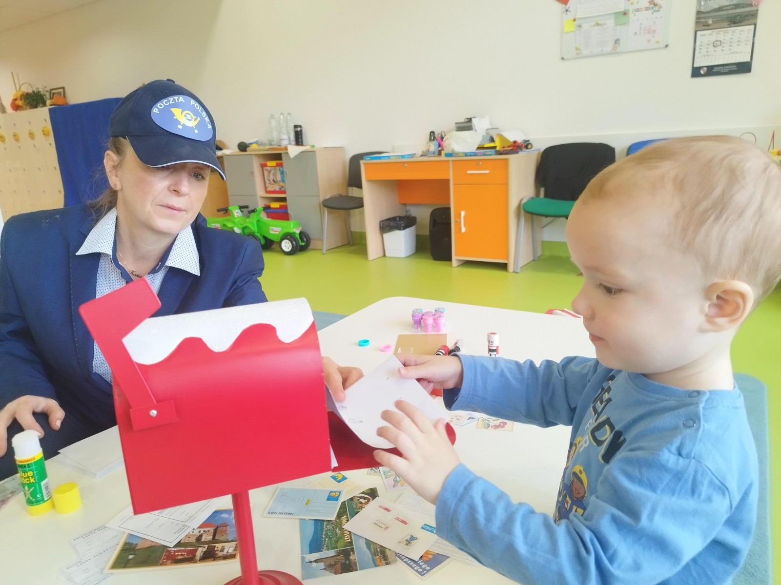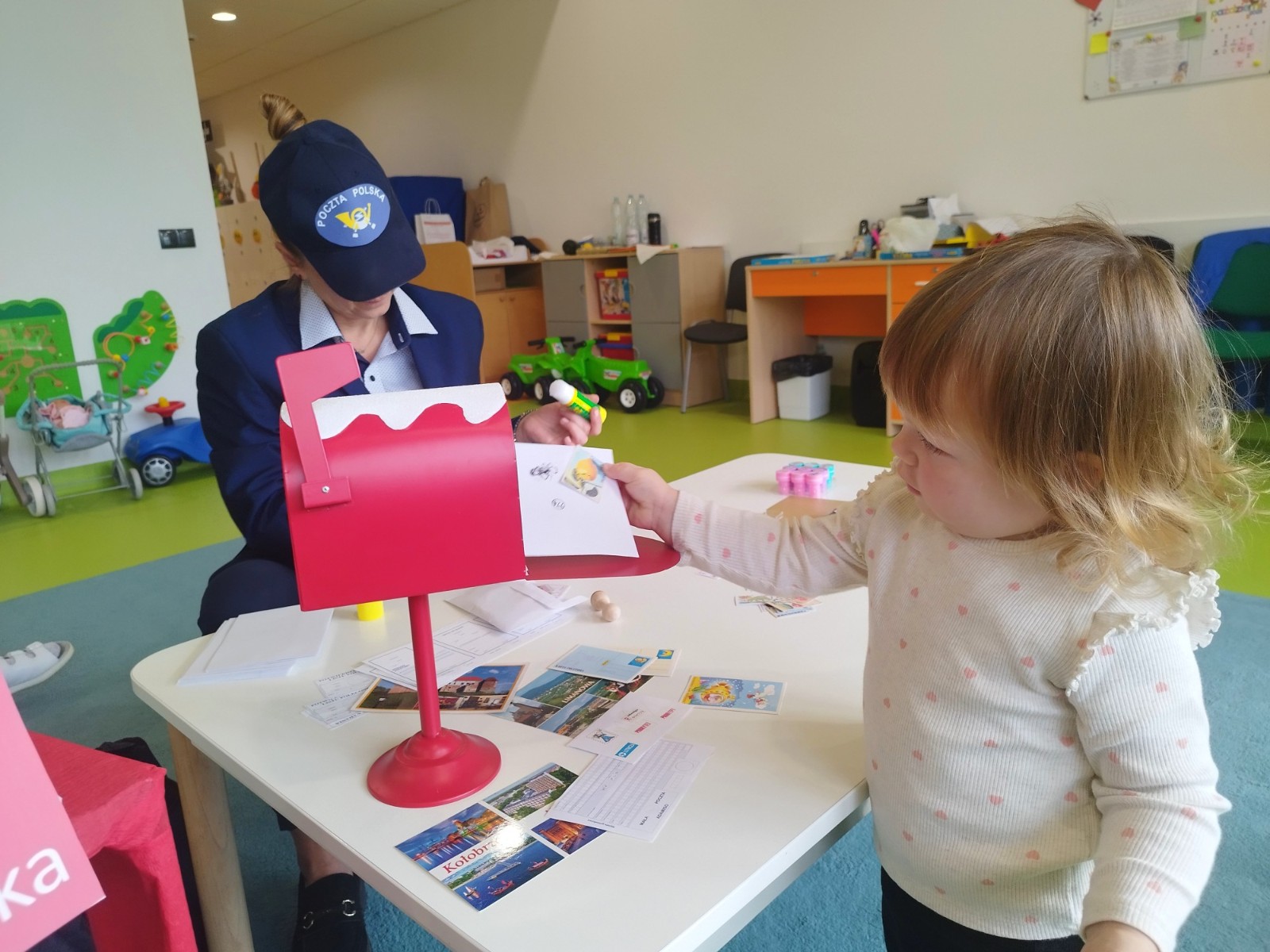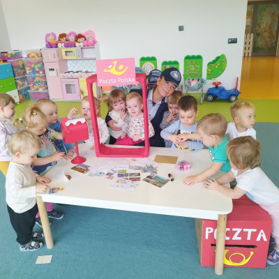 Dzisiaj w ramach zajęć edukacyjnych w grupie Tygryski został zorganizowany Dzień Poczty Polskiej.