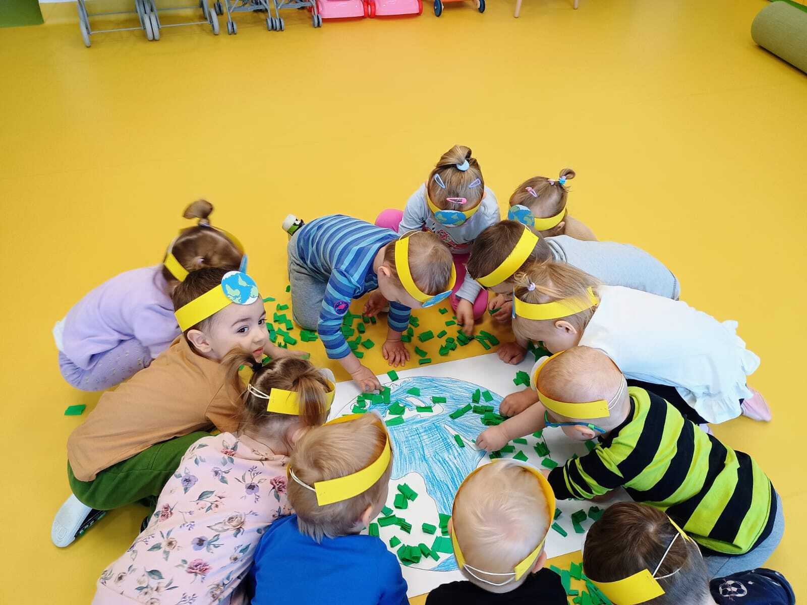 22 kwietnia obchodzimy "Międzynarodowy Dzień Ziemi". Z tej okazji dzieci z grupy Rybek dowiedziały się, jak dbać o środowisko i otaczającą nas przyrodę. Następnie wykonały pracę plastyczną.