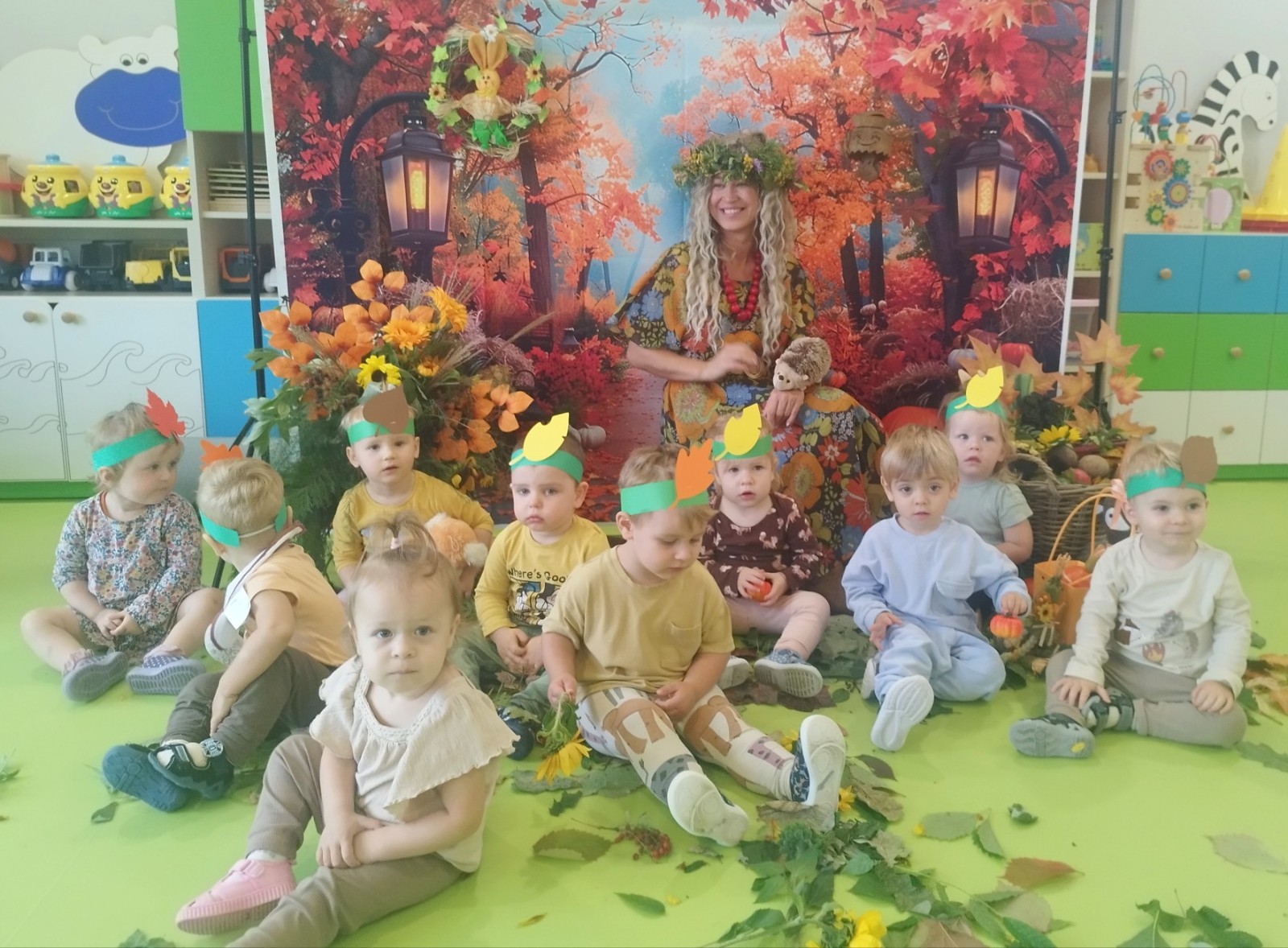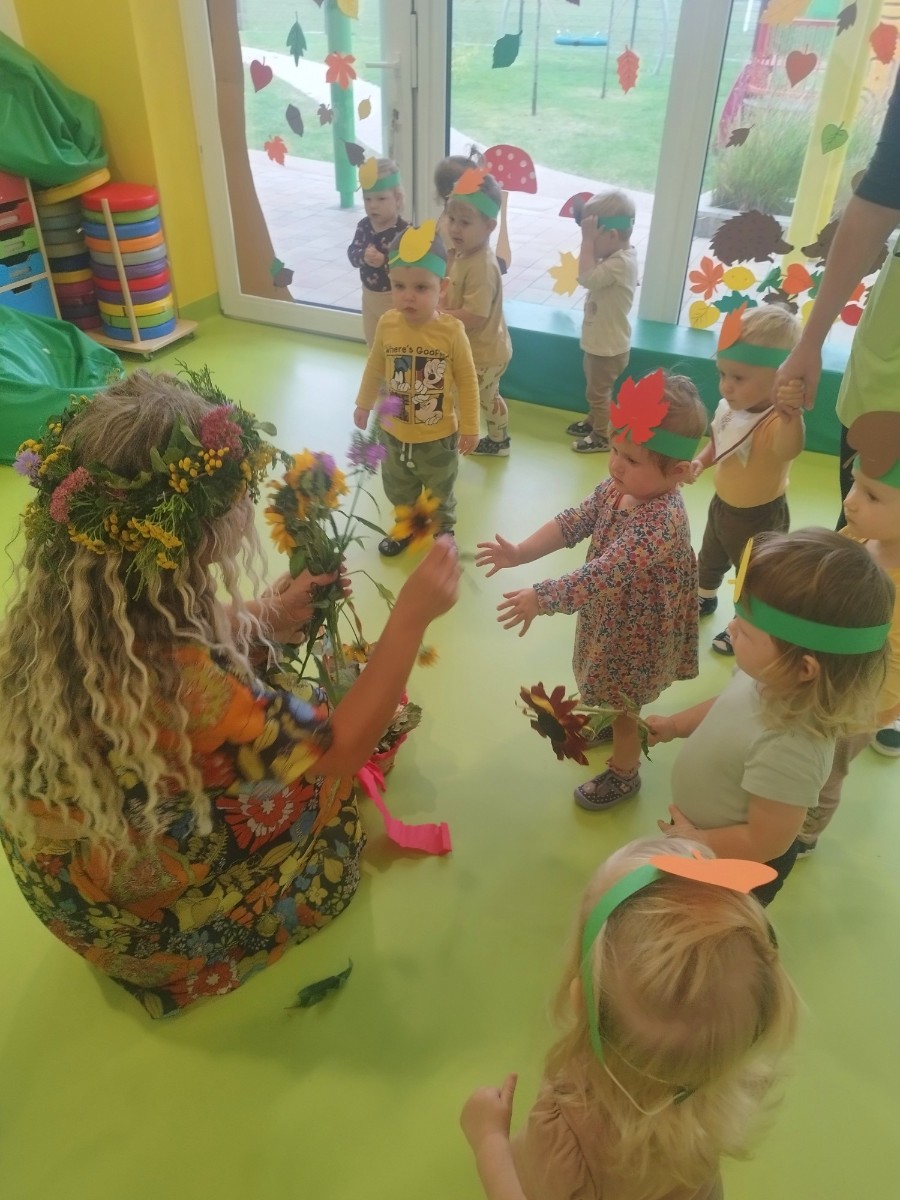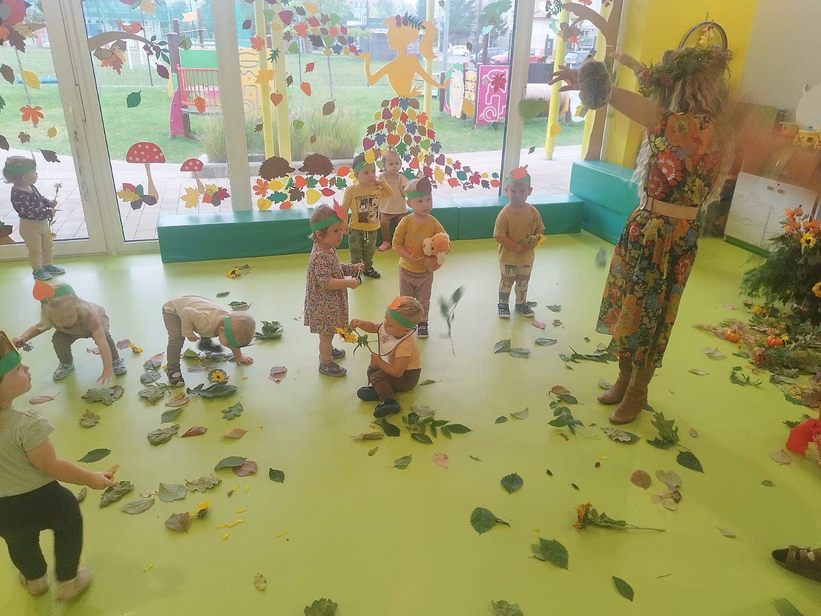 IZdjęcie przedstawia dzieci podczas zajęć z okazji święta Jesieni.