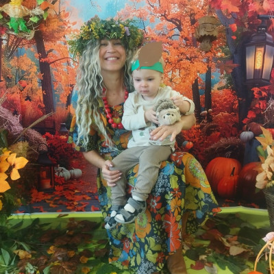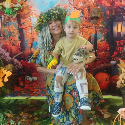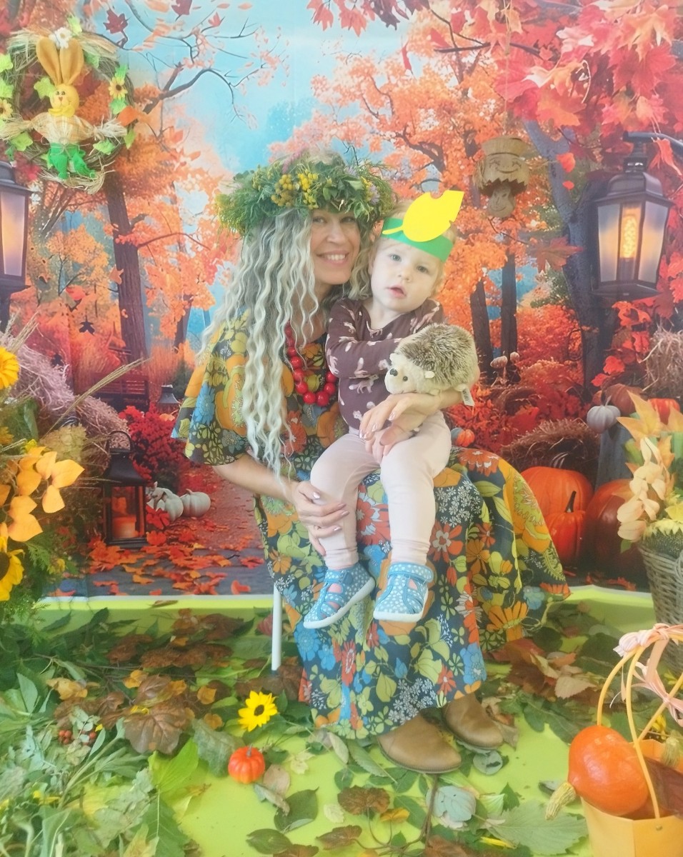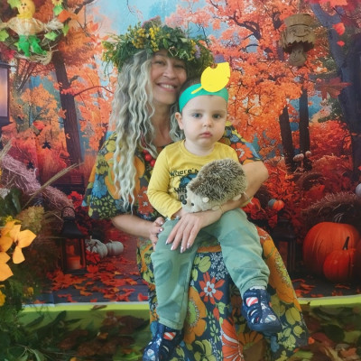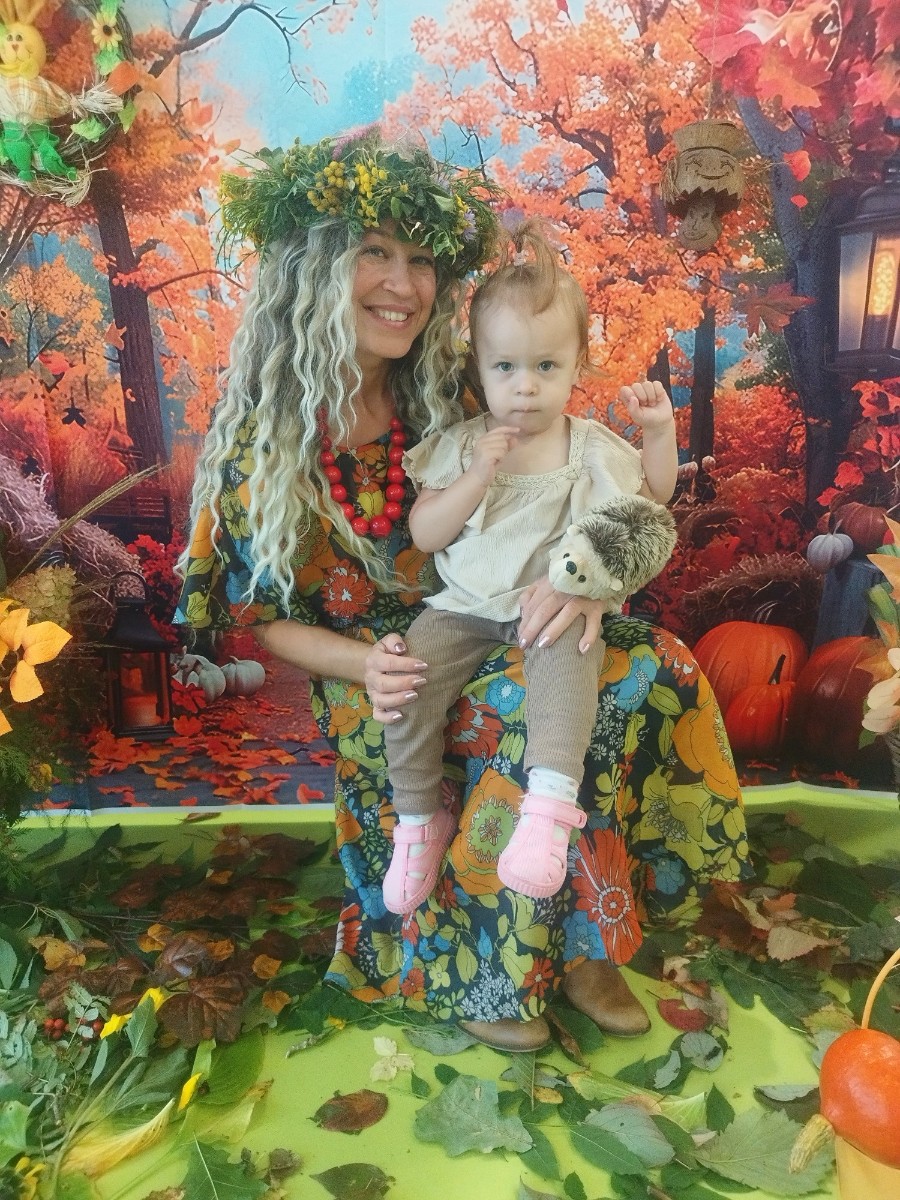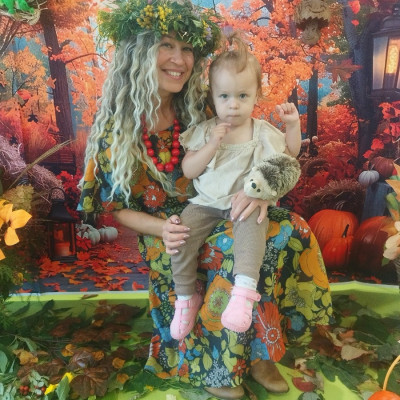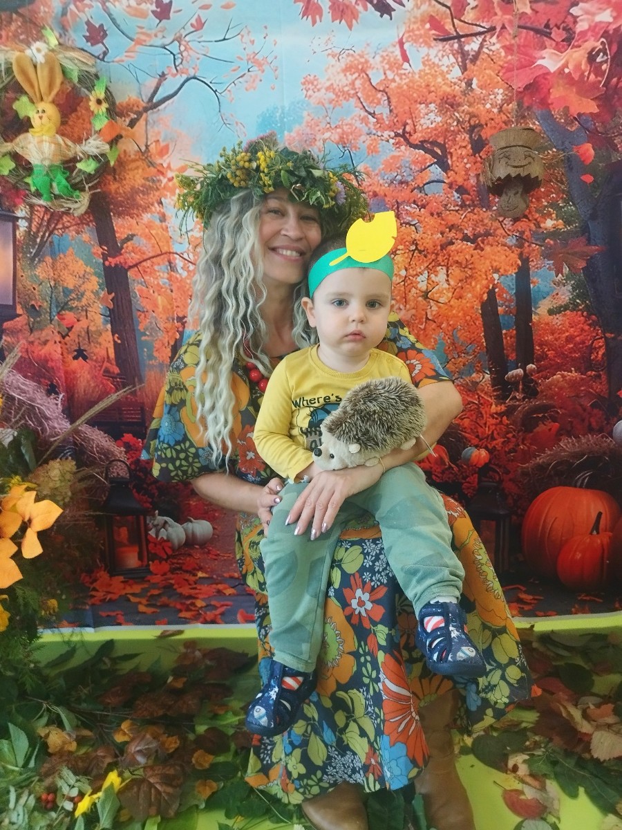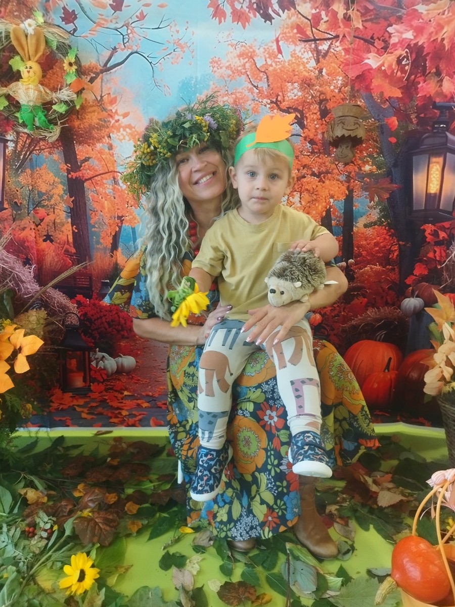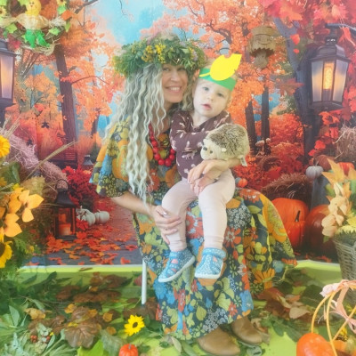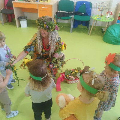 i jarzębina. Nasz specjalny gość chętnie dołączył do wesołej zabawy wśród jesiennych liści i dźwięków piosenek dedykowanych specjalnie dla Niej. Na zakończenie zajęć odbyła się kolorowa, jesienna sesja zdjęciowa z Panią Jesienią.