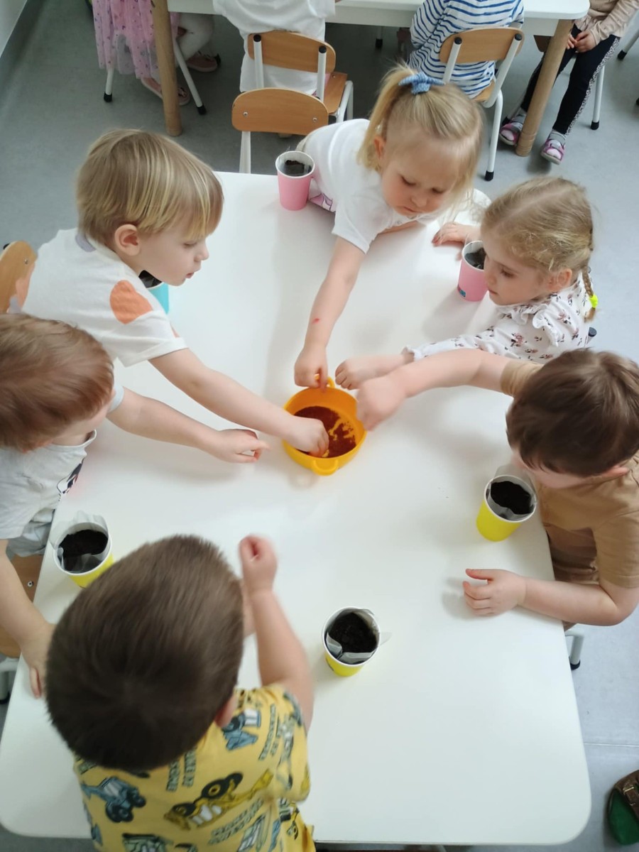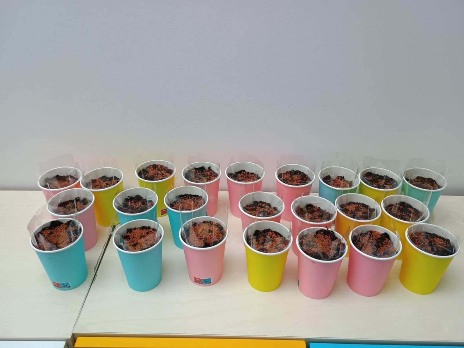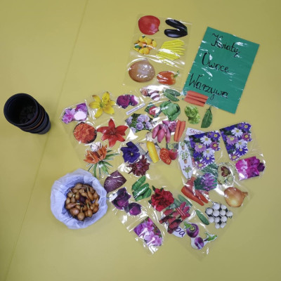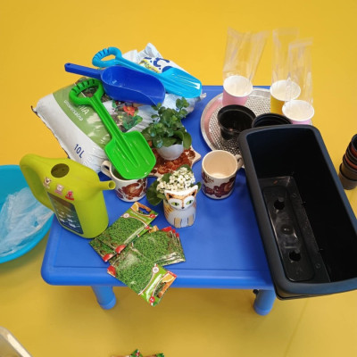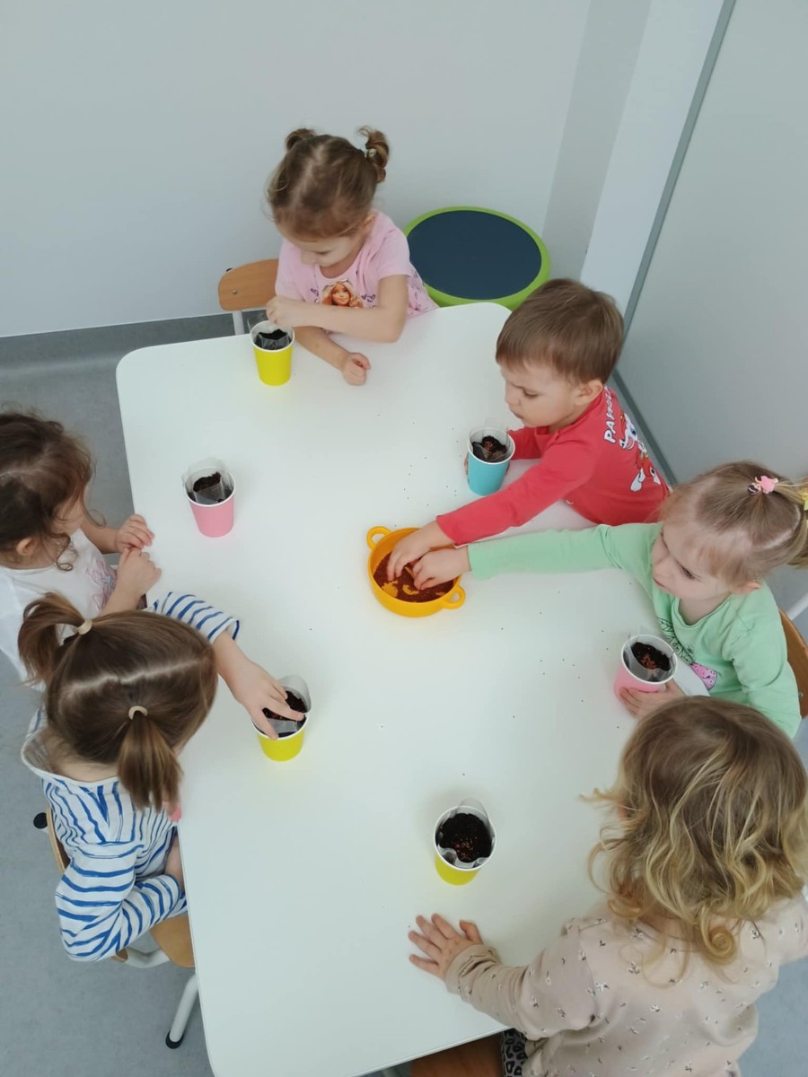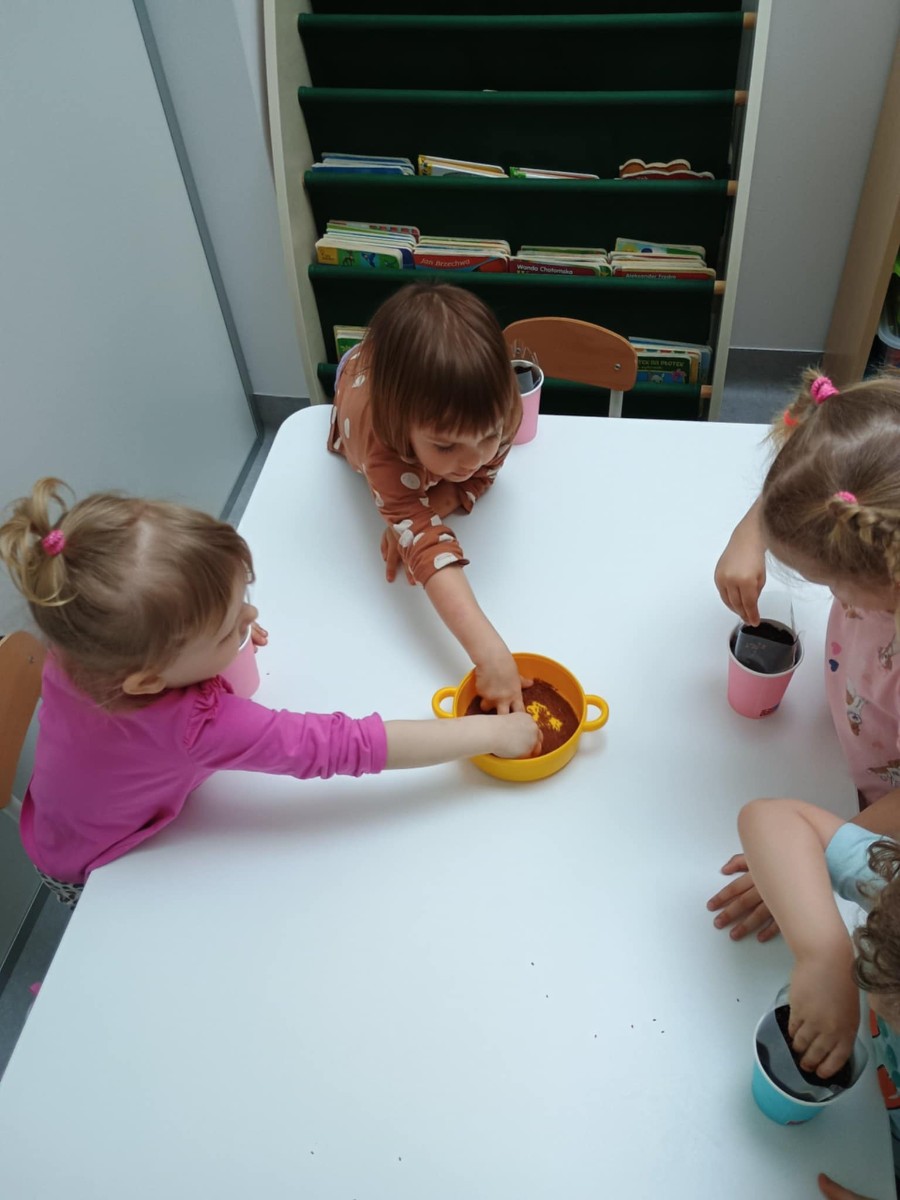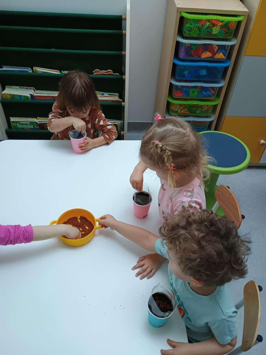 Rybki posadziły różne warzywa, a przygotowując się małymi krokami do Świąt Wielkanocnych, sadziły również rzeżuchę.