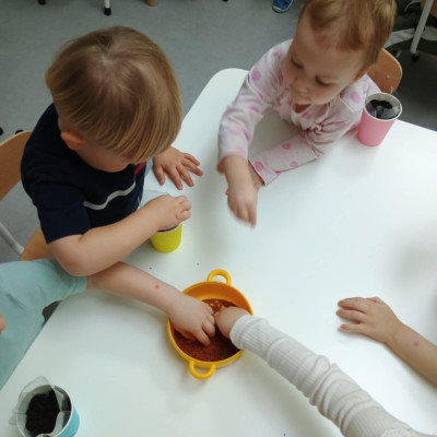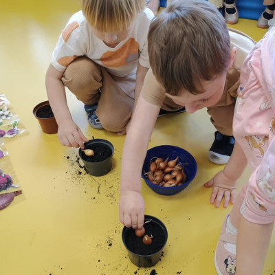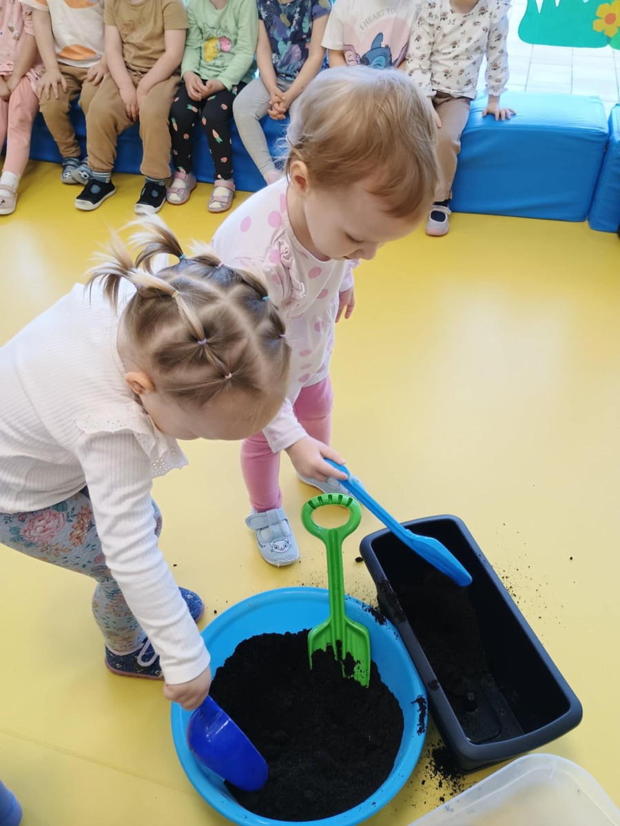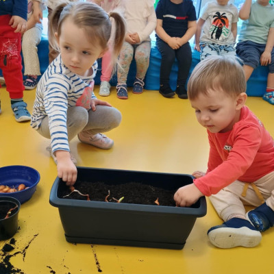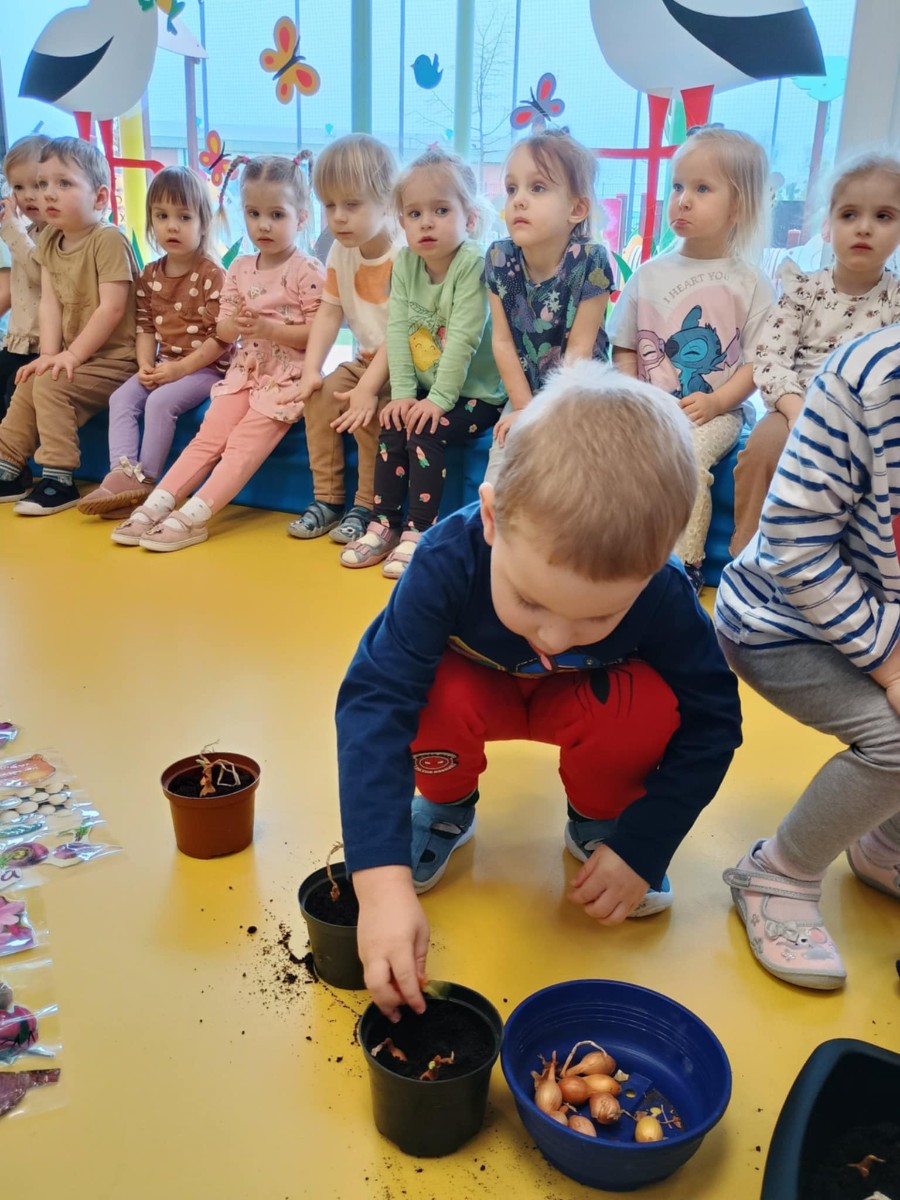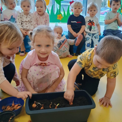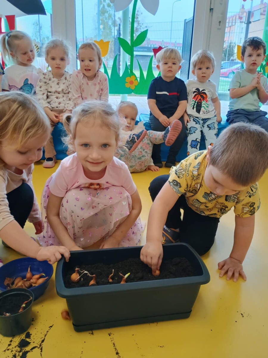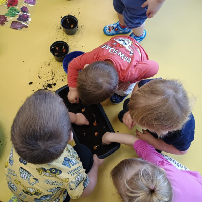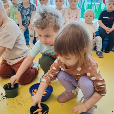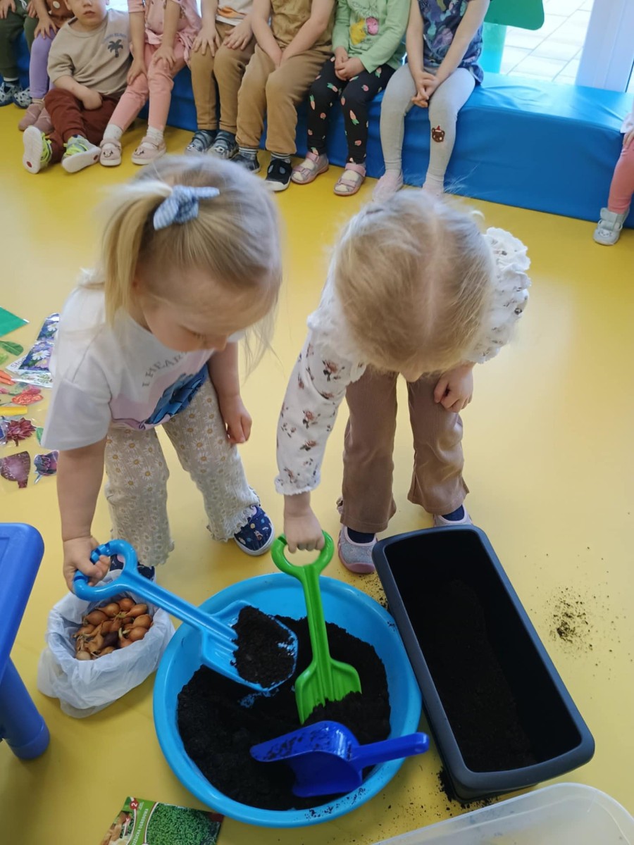 W dniu dzisiejszym w grupie Rybek odbyły się zajęcia pt.„Sadzimy kwiaty”, gdzie dzieci poszerzały wiadomości na temat wiosennych kwiatów i warunków niezbędnych do ich rozwoju. Dzieci miały okazję zabawić się w ogrodników i dowiedzieć się do czego służą odpowiednie sprzęty m.in. doniczka, ziemia, łopatka, sadzonki, rękawiczki, konewka.