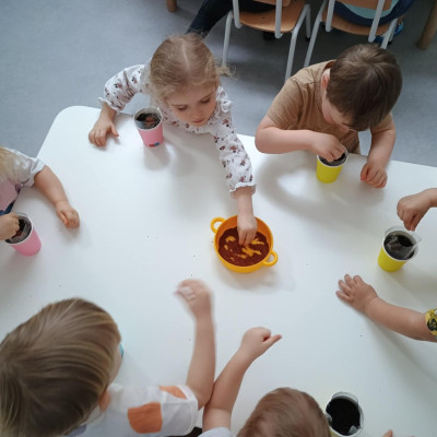 Zdjęcie przedstawia dzieci podczas zajęć w żłobku