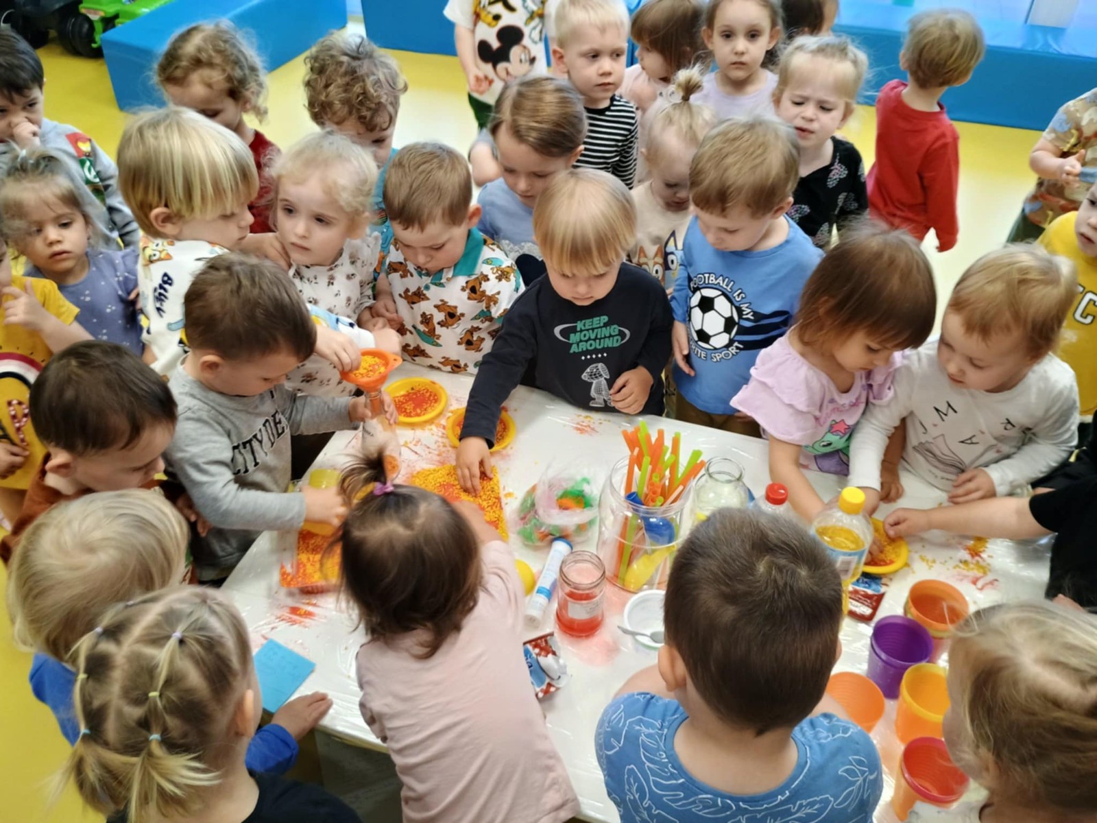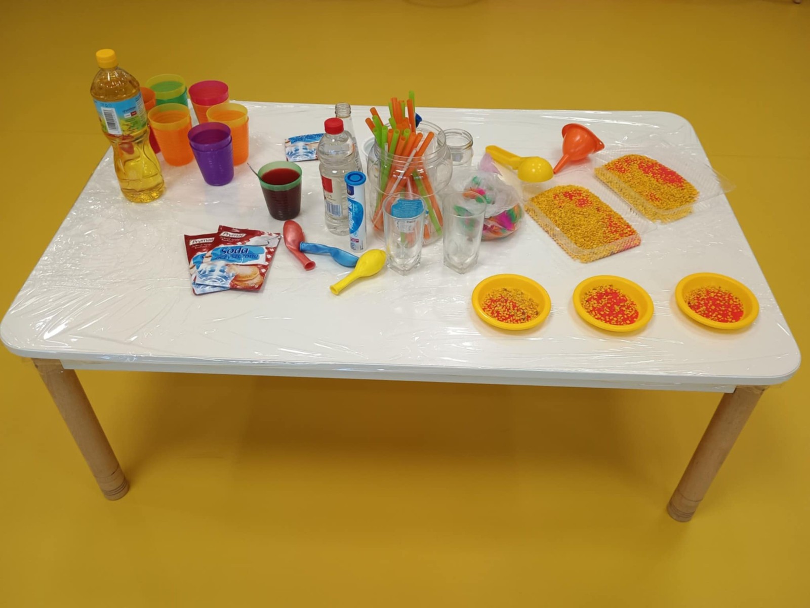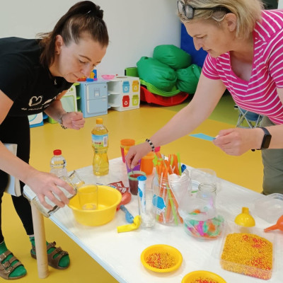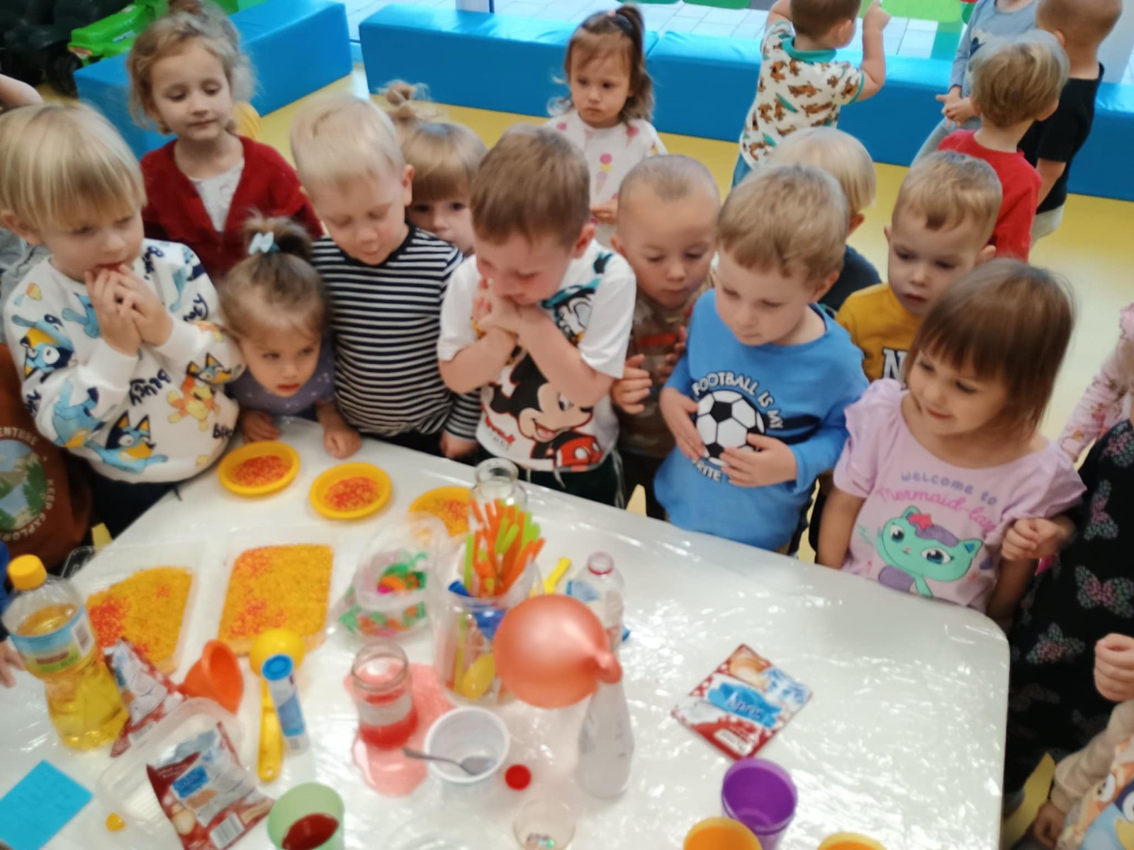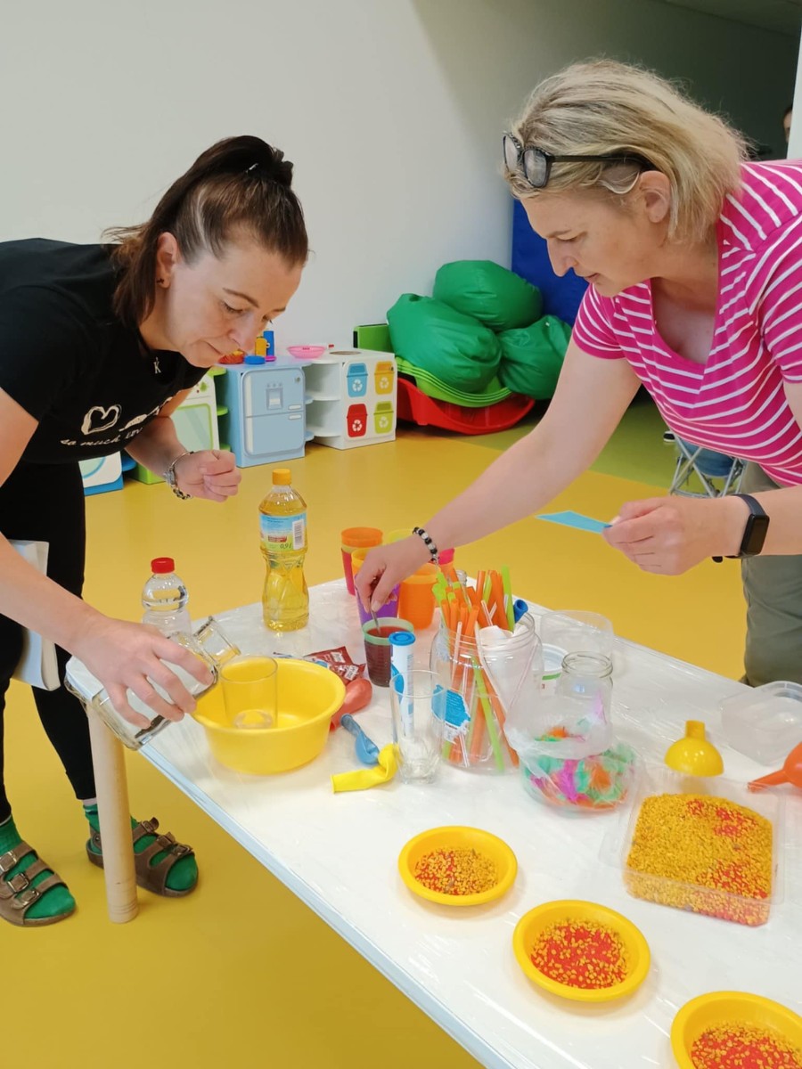 Chociaż za oknem szaro, deszczowo w dzisiejszym dniu u nas w żłobku było wesoło, kolorowo i magicznie. A to dzięki przeniesieniu dzieci w świat doświadczeń chemicznych . Te proste, eksperymenty pobudzily ciekawości dzieci , przybliżyly im podstawowe zjawiska fizyczne i chemiczne w sposób zabawowy i bezpieczny. Było mnóstwo zabawy i radości .