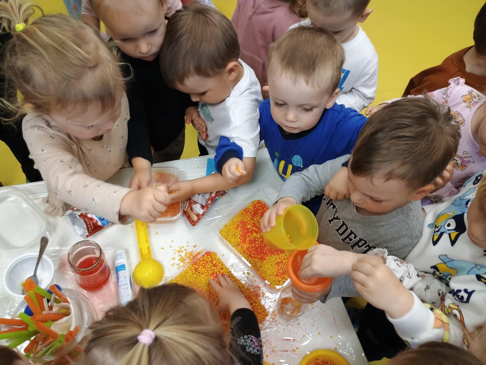 bZdjęcie przedstawia dzieci podczas zajęć w żłobku