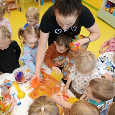 Zdjęcie przedstawia dzieci podczas zajęć w żłobku