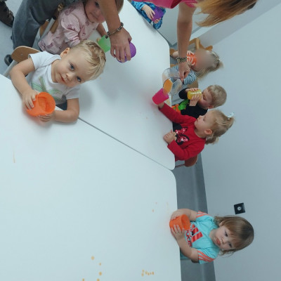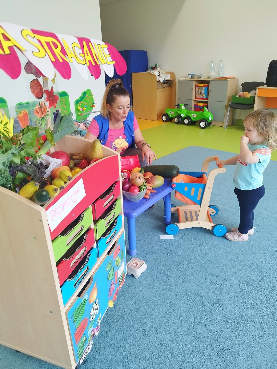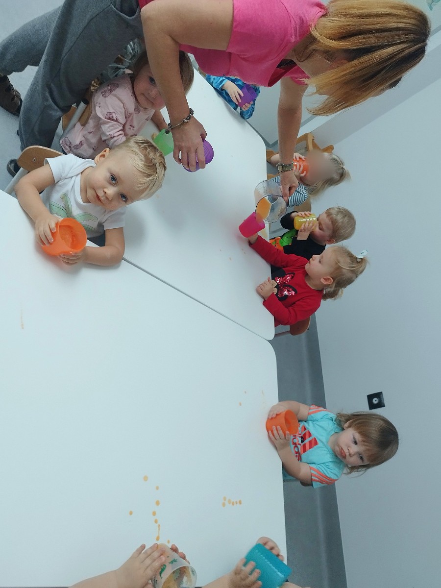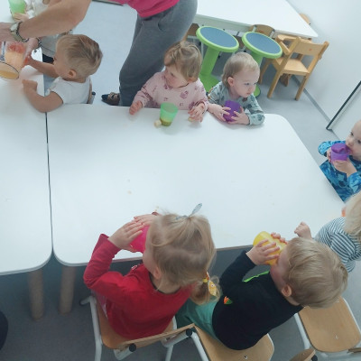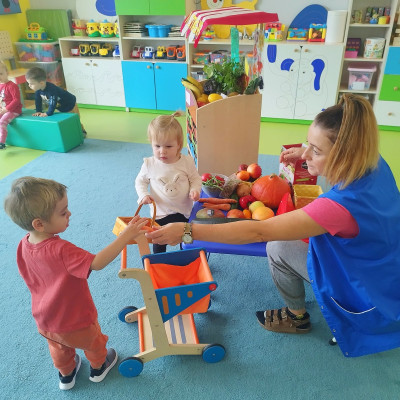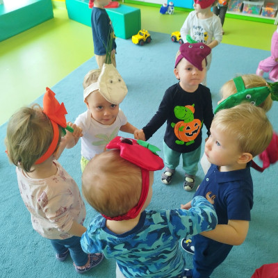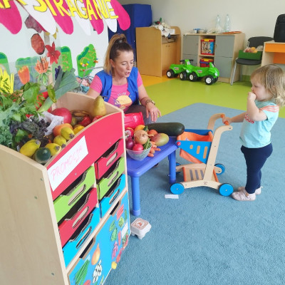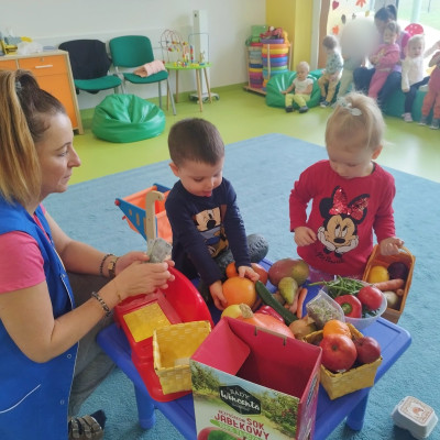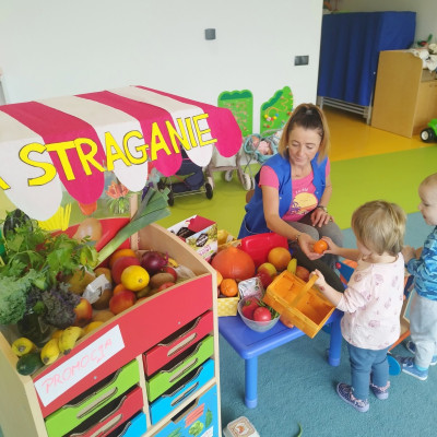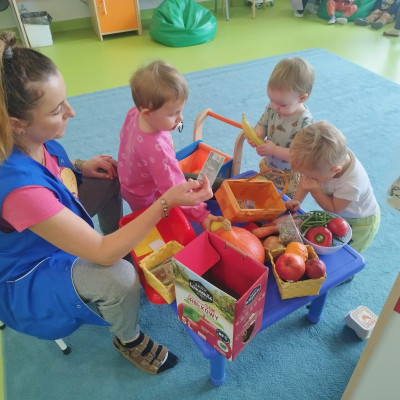 Tygryski obchodziły Dzień owoców i warzyw. Każde dziecko miało za zadanie przynieść z domu owoc i warzywo, które posłużyły nam do zajęć edukacyjnych. Poznaliśmy wiersz Jana Brzechwy pt. "Na straganie". Następnie wspólnie stworzyliśmy stragan na którym maluchy mogły "robić" zakupy wybierając swój ulubiony owoc. Odbyły się owocowo-warzywne tańce do dziecięcych przebojów. Na koniec zajęć z przyniesionych owoców i warzyw wycisnęliśmy pyszny sok, który dzieci ze smakiem wypiły.