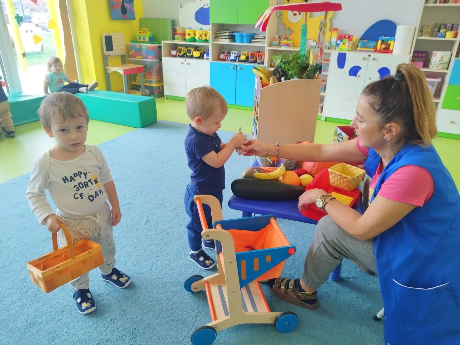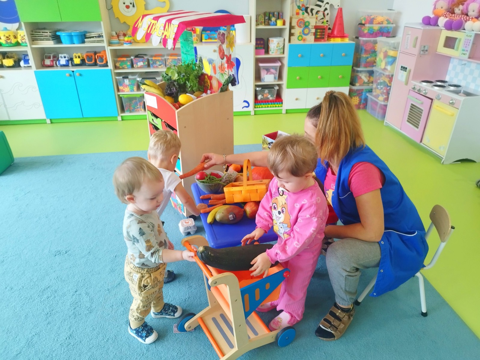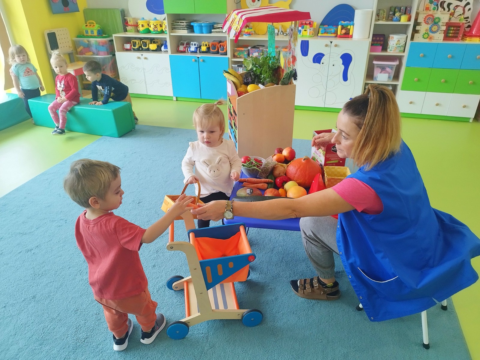 Zdjęcie przedstawia dzieci podczas zajęć edukacyjnych owocach i warzywach