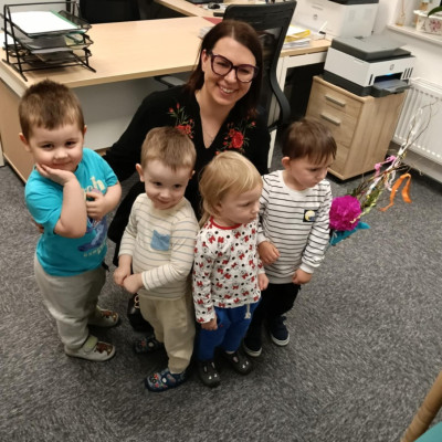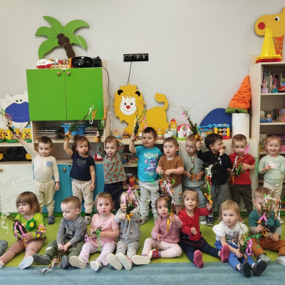 Przygotowania do świąt Tygryski rozpoczęły od zrobienia palm na Niedzielę Palmową. Pomimo mnóstwa pracy i ogromnego skupienia, było wiele radości i satysfakcji z wykonanej pracy. Nasze zuchy wykonały również palmę dla naszej Pani kierownik, którą delegacja wręczyła osobiście .