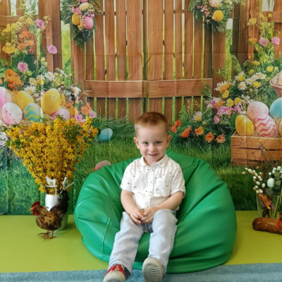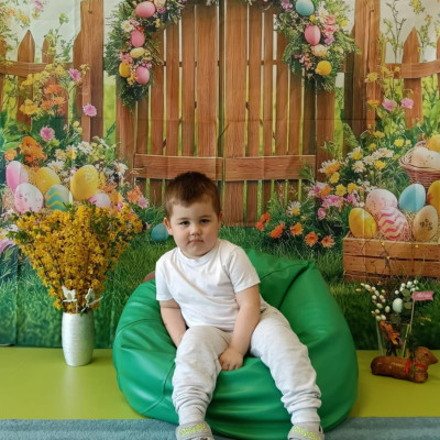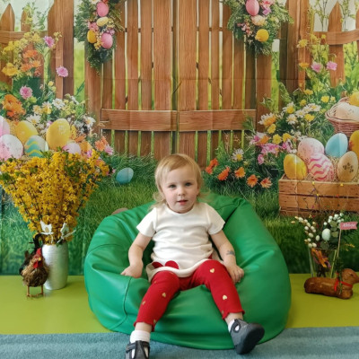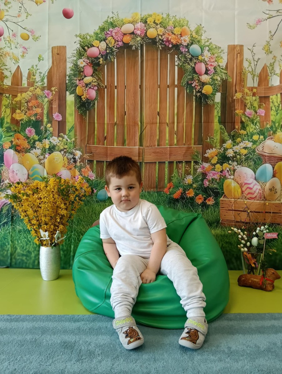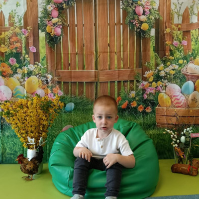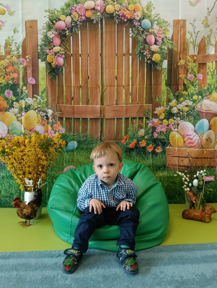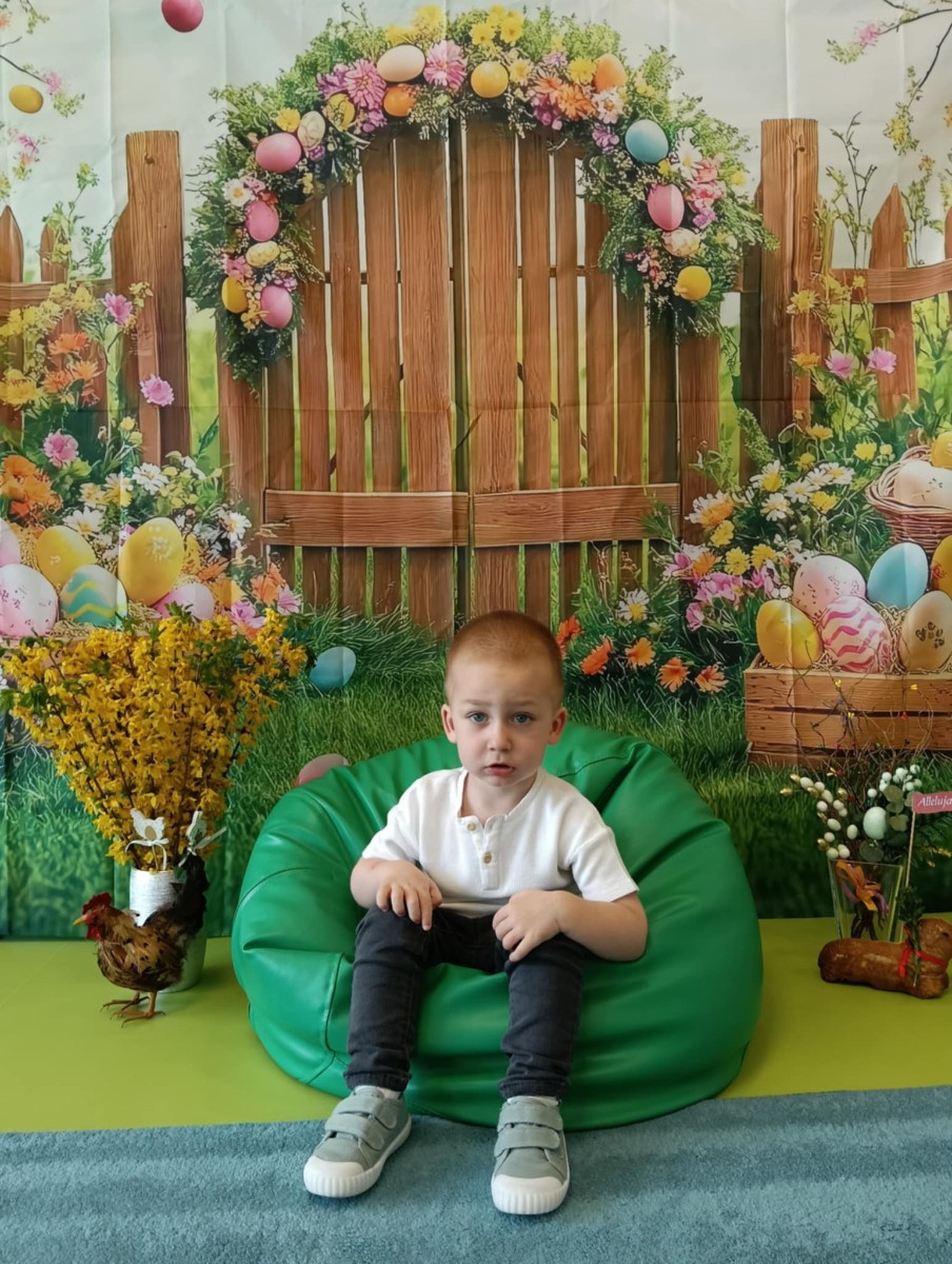4Zdjęcie przedstawia dziecko podczas sesji wielkanocnej