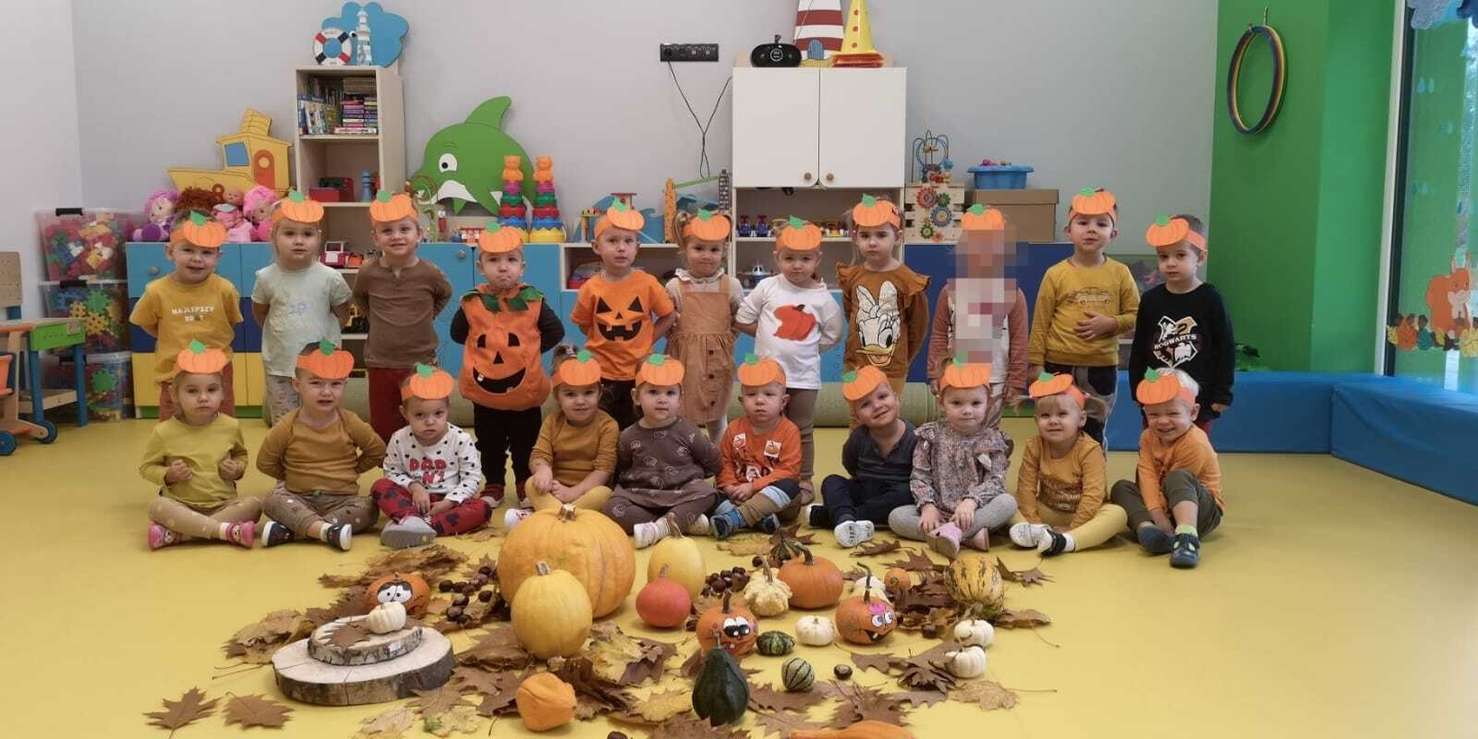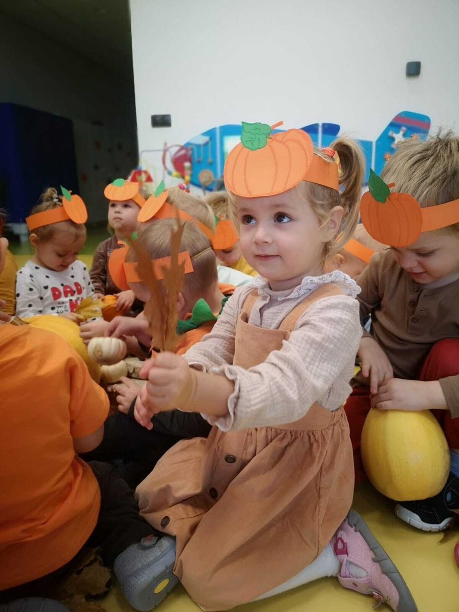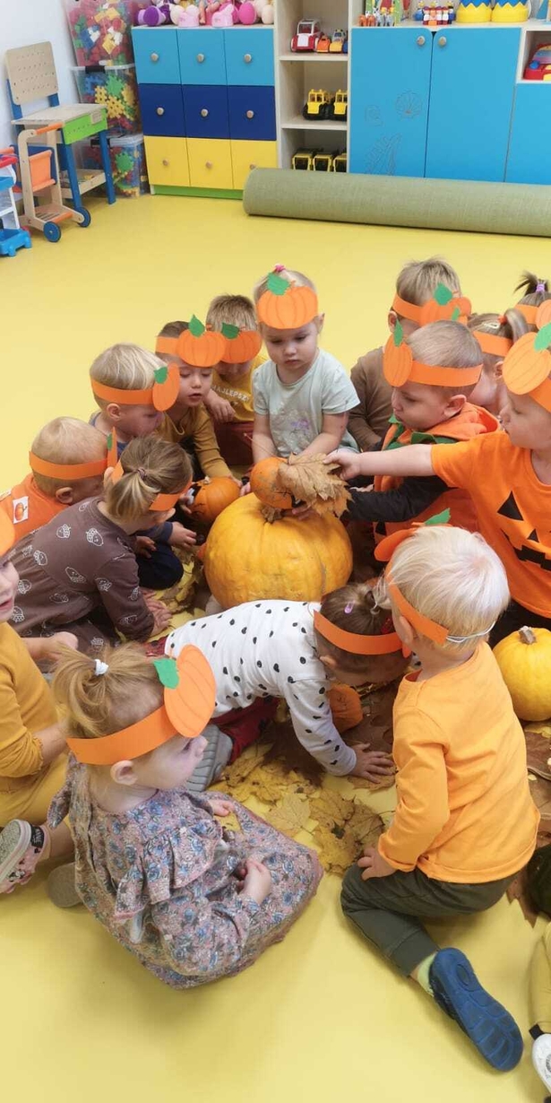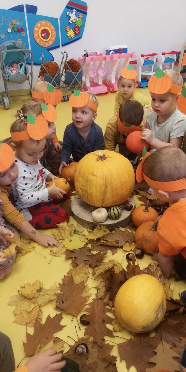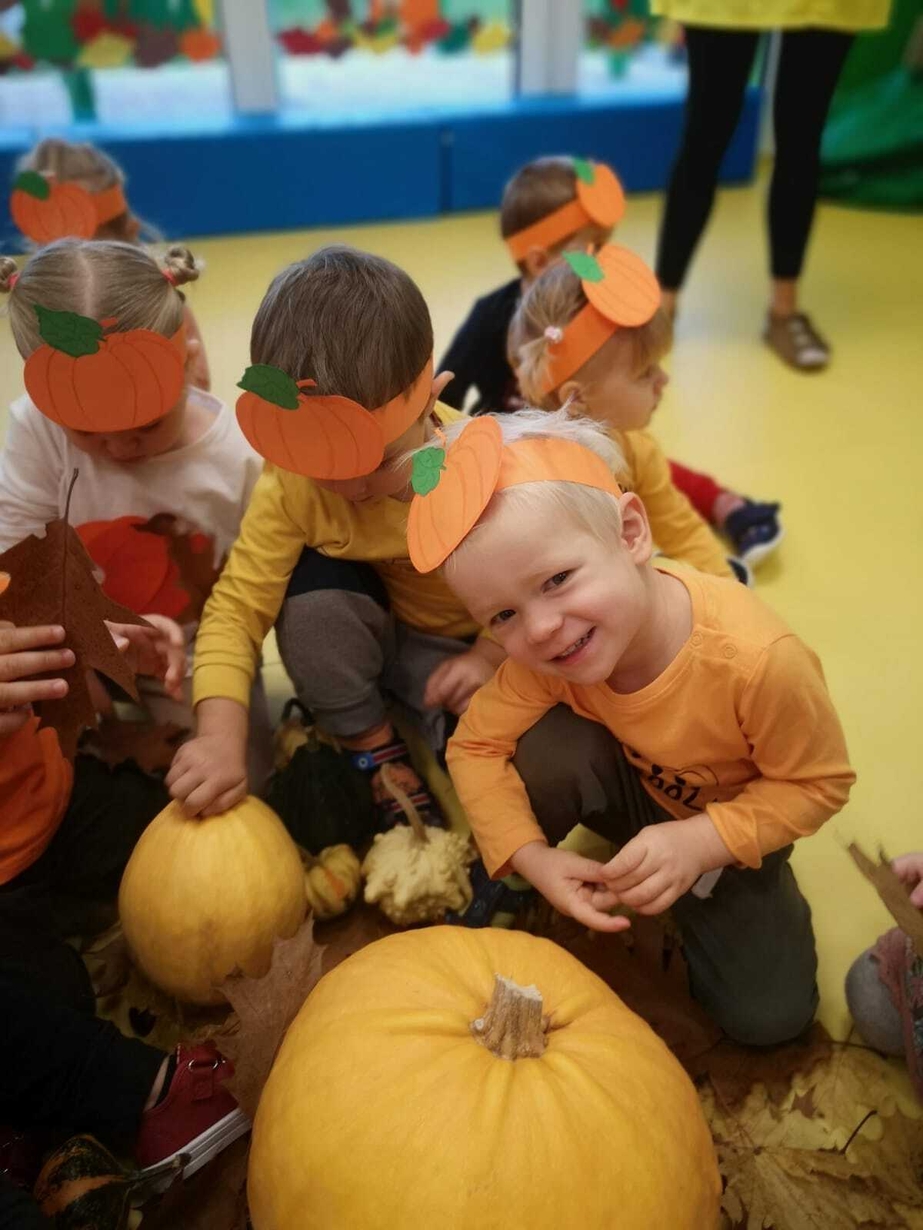 We wtorek 31.10.2023 obchodziliśmy na grupie Rybek "Święto Dyni". Dzieci mogły zobaczyć i dotknąć dynie o różnej wielkości i kolorystyce. Z wykorzystaniem liści i kasztanów stworzyły piękny stroik. Było dużo radości i śmiechu.