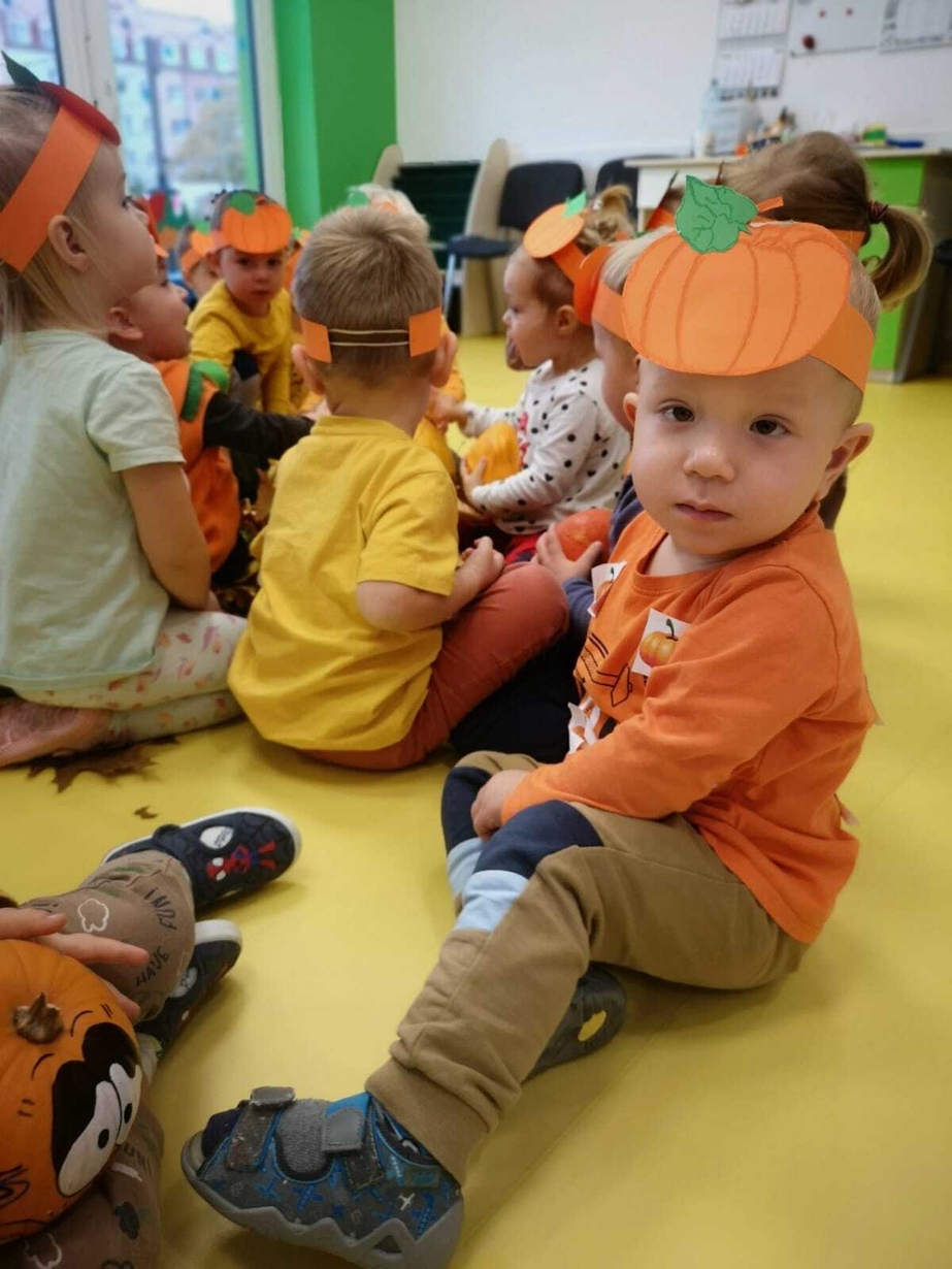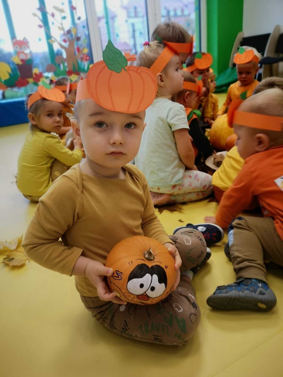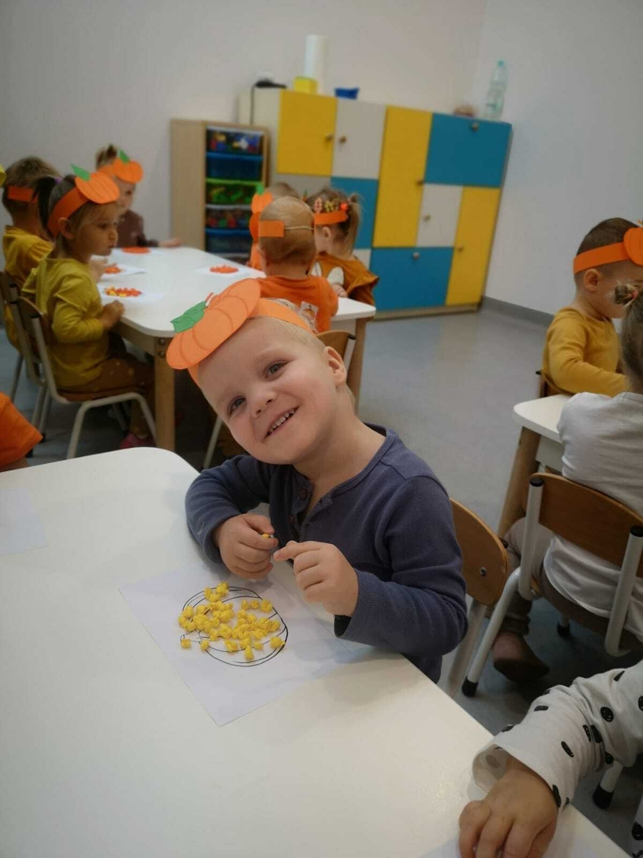 We wtorek 31.10.2023 obchodziliśmy na grupie Rybek "Święto Dyni". Dzieci mogły zobaczyć i dotknąć dynie o różnej wielkości i kolorystyce. Z wykorzystaniem liści i kasztanów stworzyły piękny stroik. Było dużo radości i śmiechu.