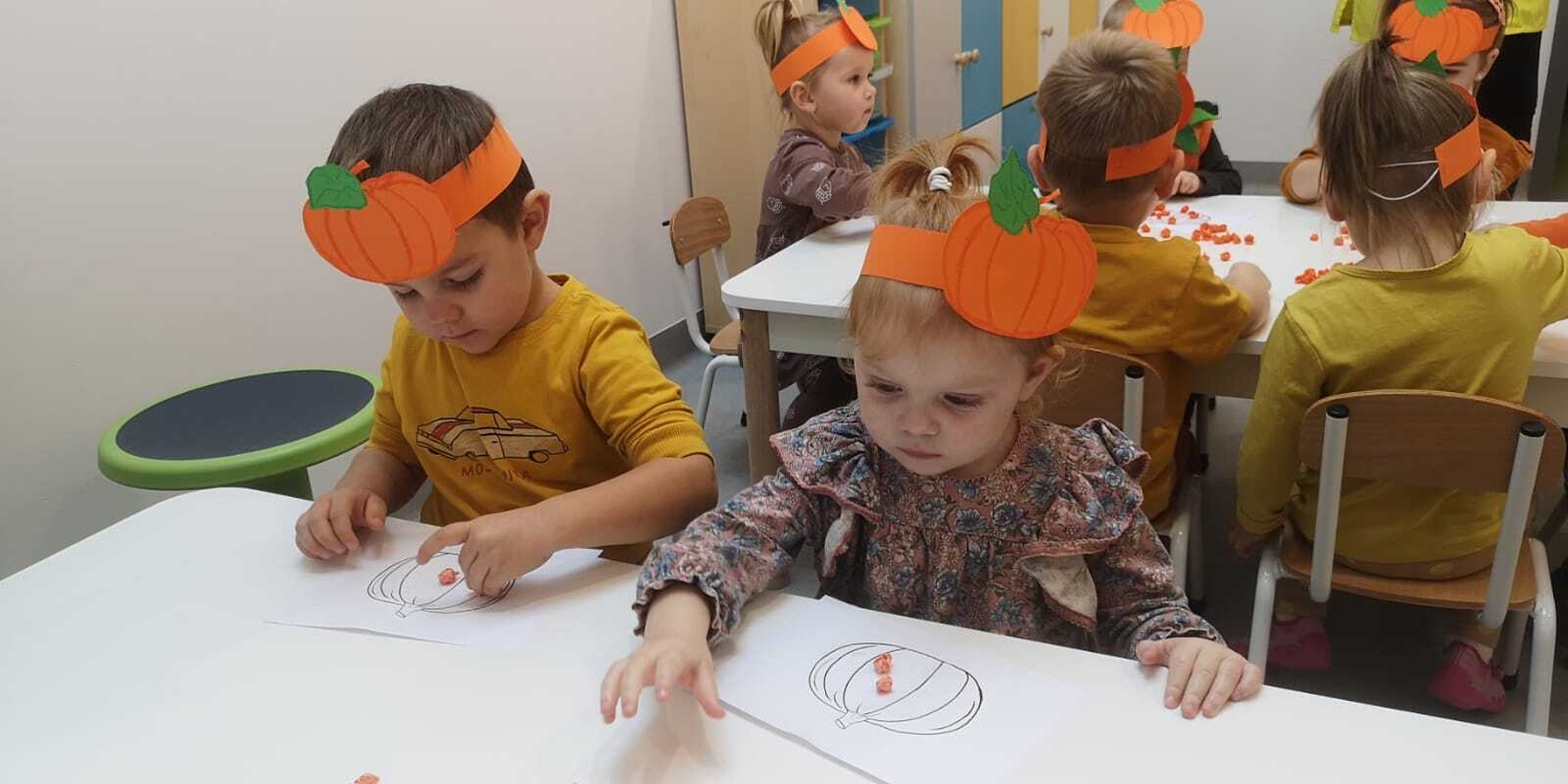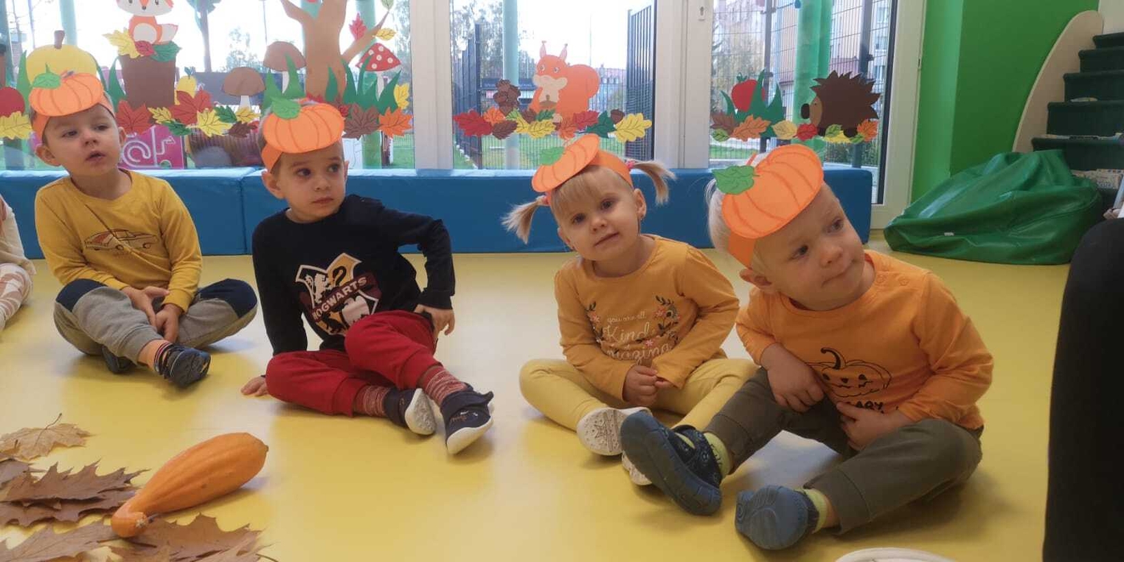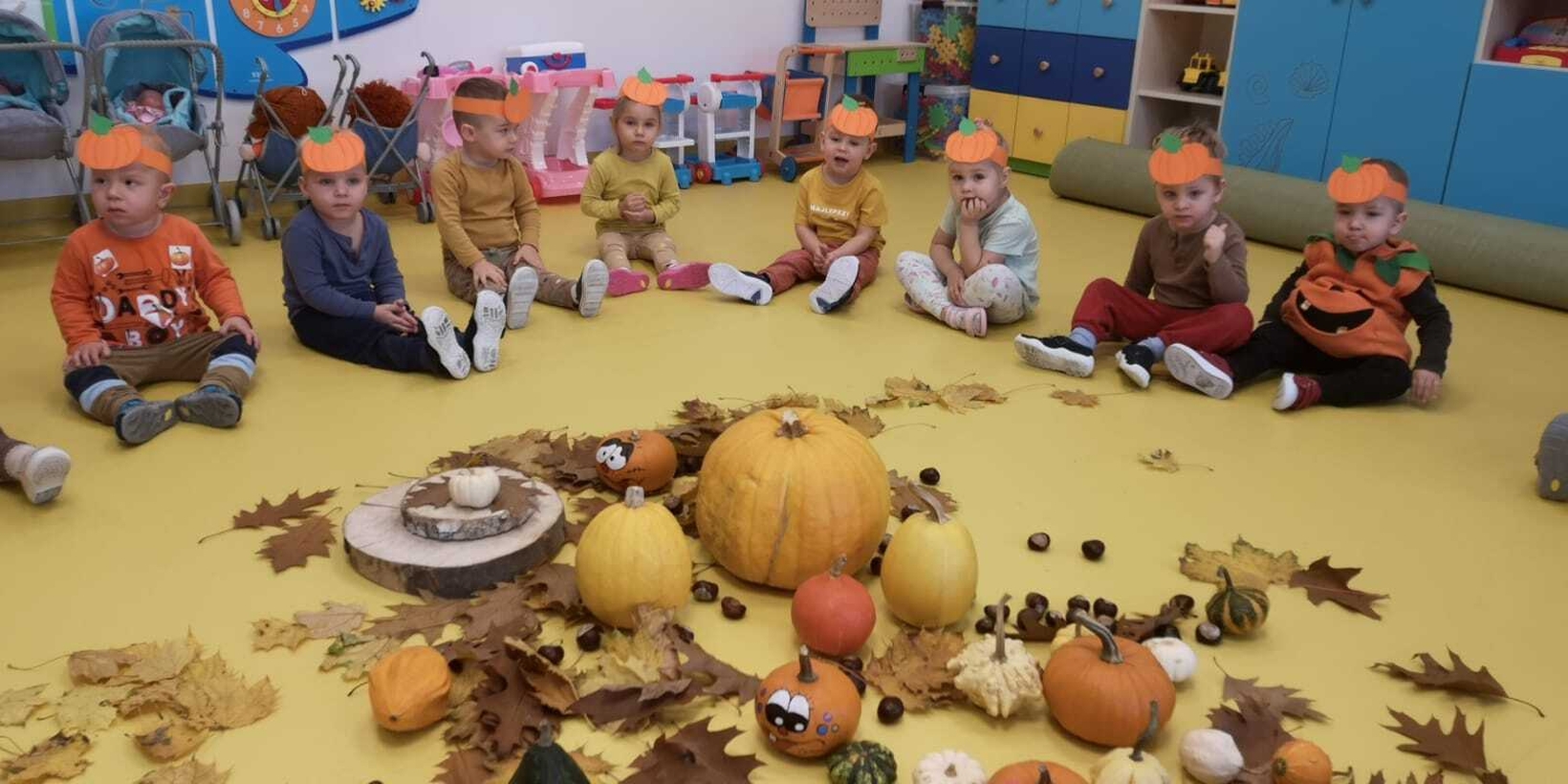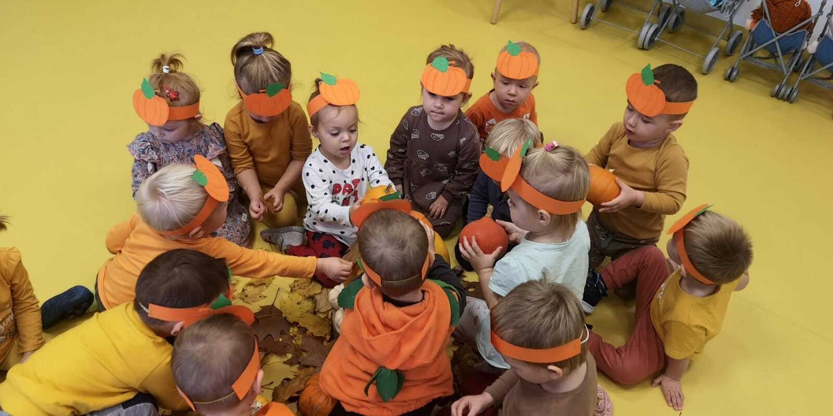 We wtorek 31.10.2023 obchodziliśmy na grupie Rybek "Święto Dyni". Dzieci mogły zobaczyć i dotknąć dynie o różnej wielkości i kolorystyce. Z wykorzystaniem liści i kasztanów stworzyły piękny stroik. Było dużo radości i śmiechu.