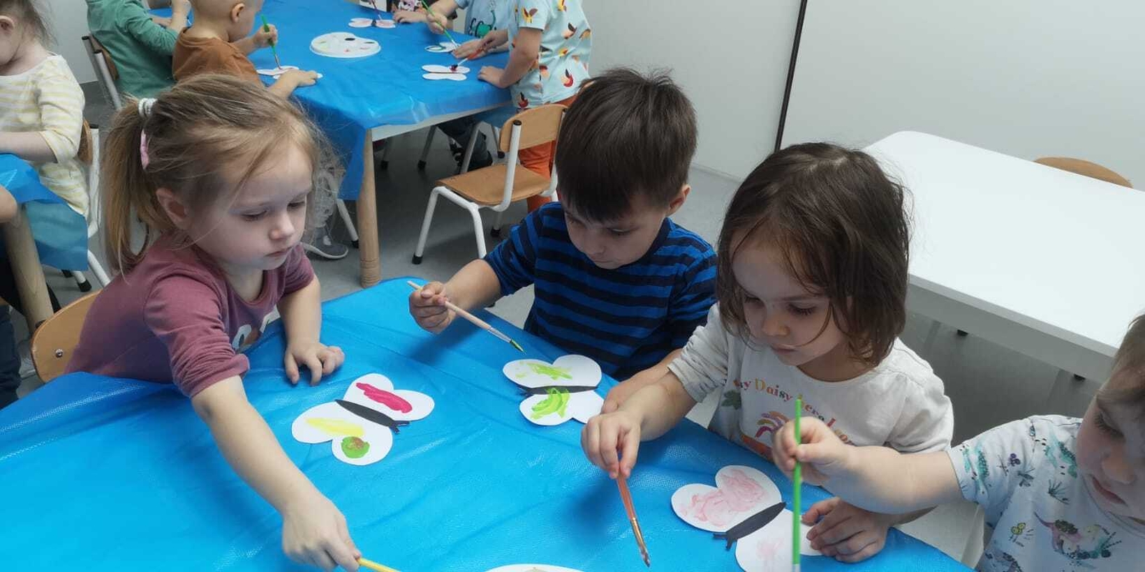Skoro Wiosna w końcu do nas zawitała grupa Rybki postanowiła udekorować naszą tablicę własnoręcznie malowanymi kolorowymi motylami.