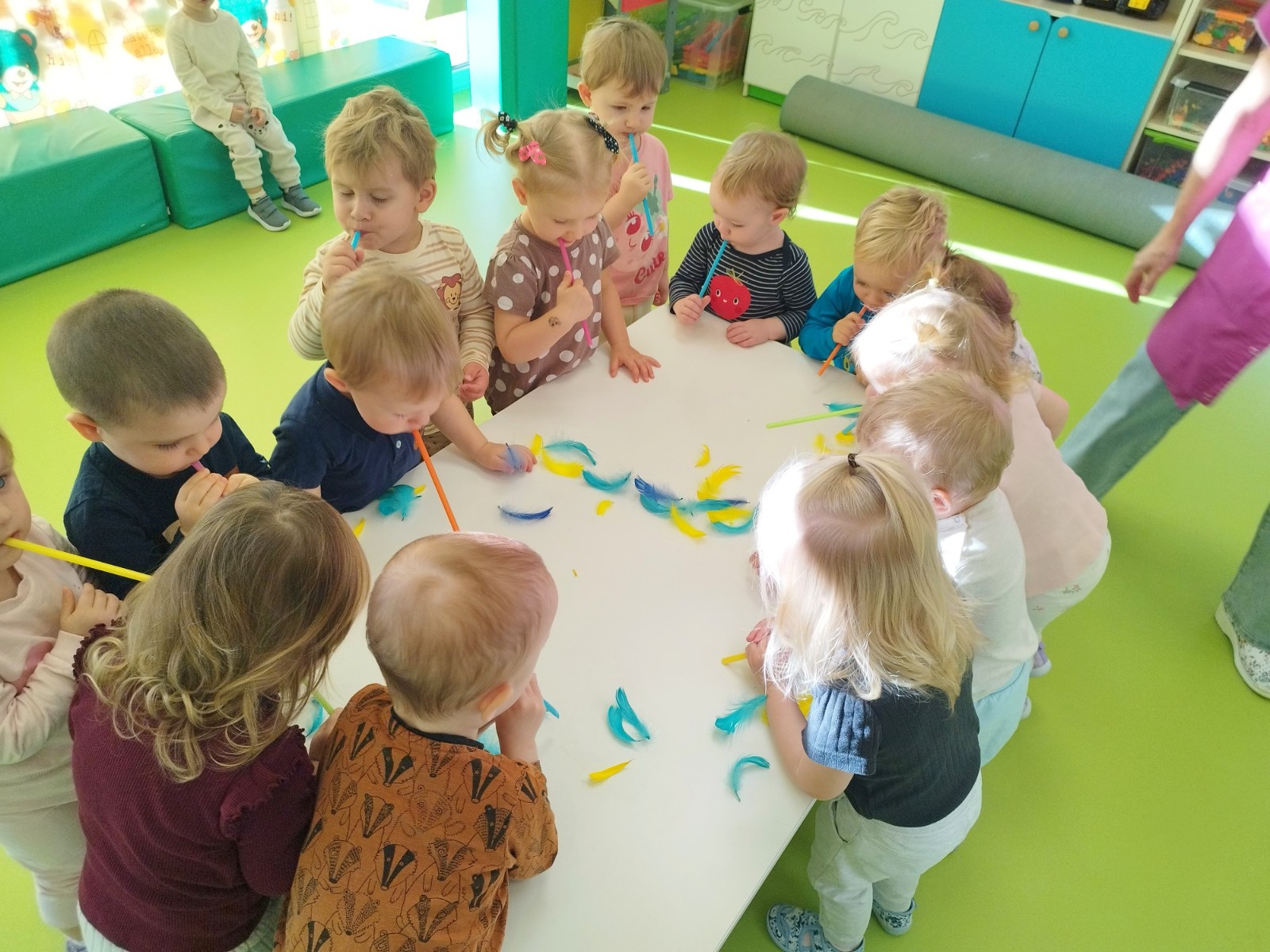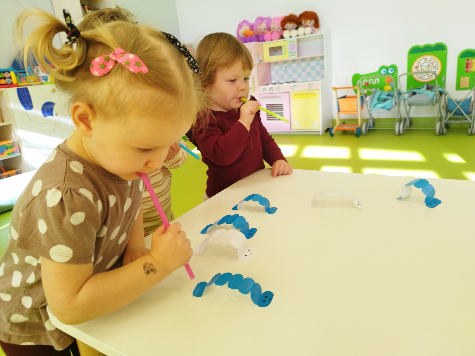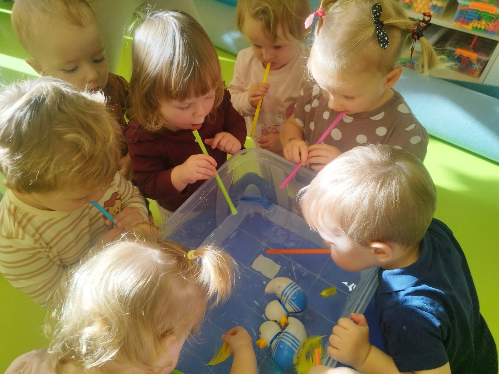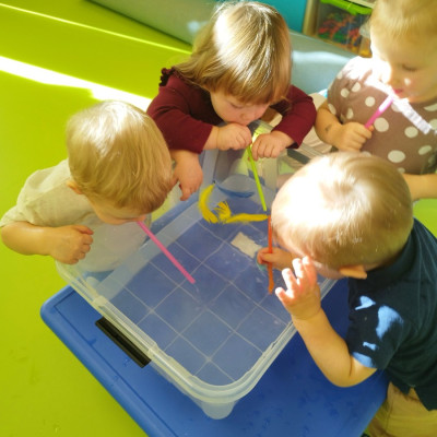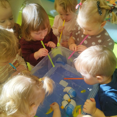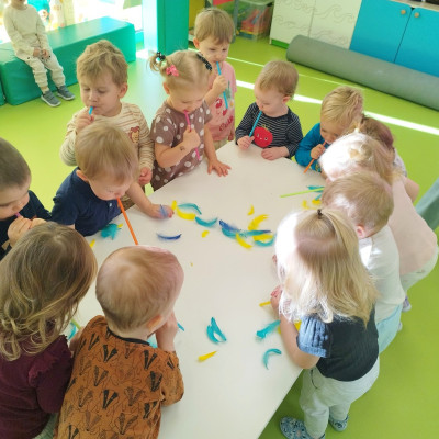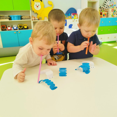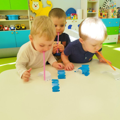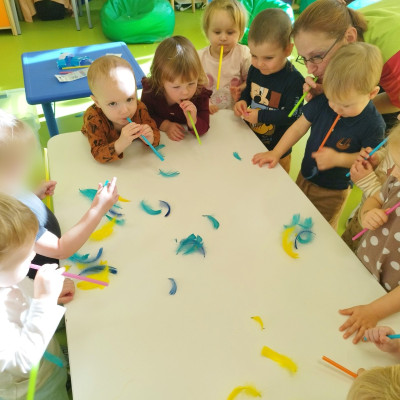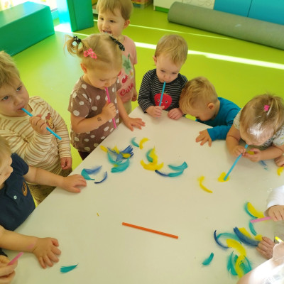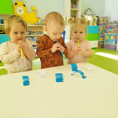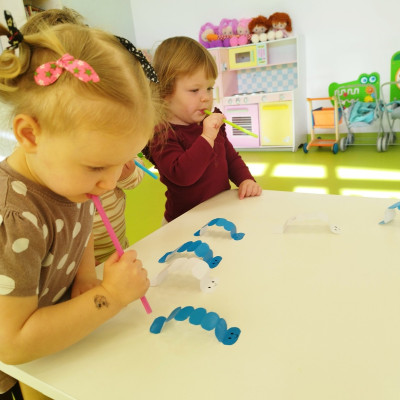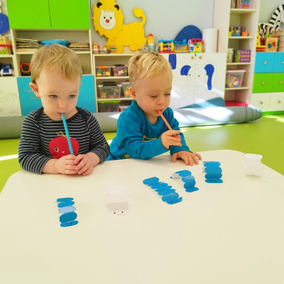 W naszym żłobku stawiamy na wszechstronny rozwój dziecka, dlatego często łączymy zabawę z nauką. Wykorzystując proste zabawy i ćwiczenia staramy się stymulować rozwój narządów mowy u naszych milisińskich.