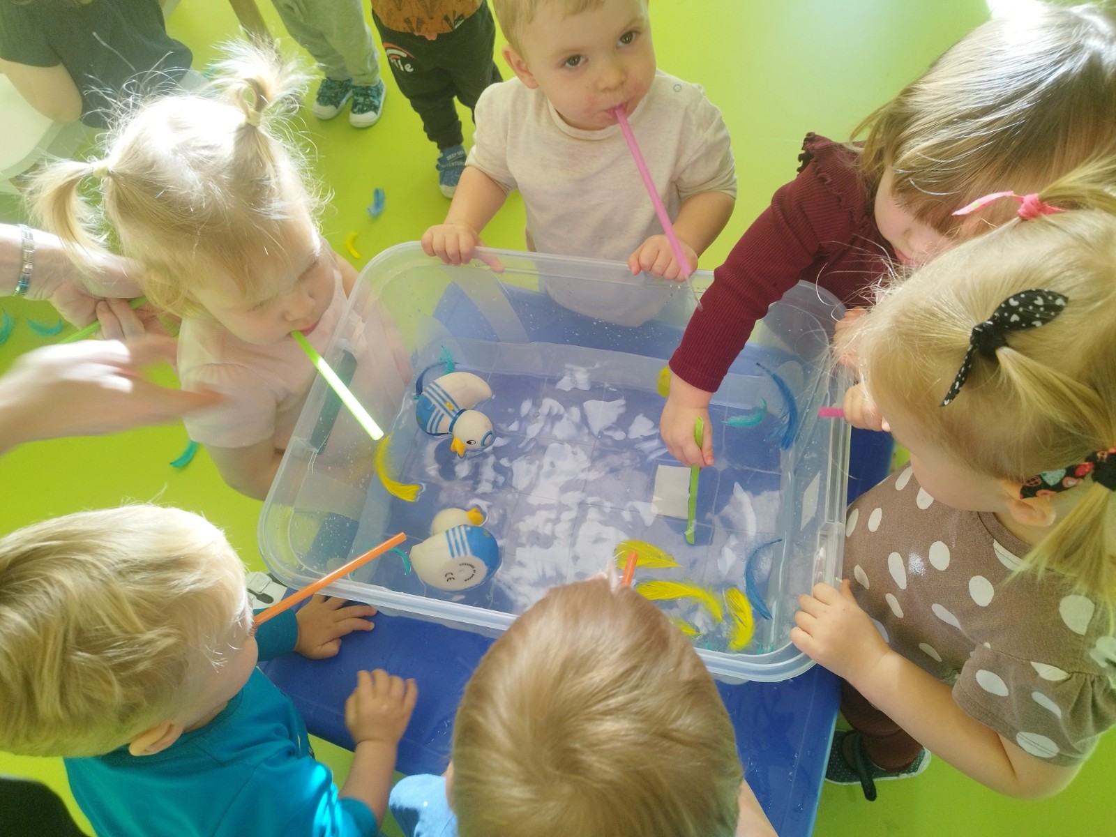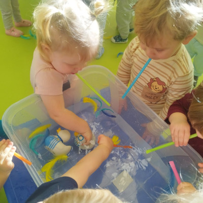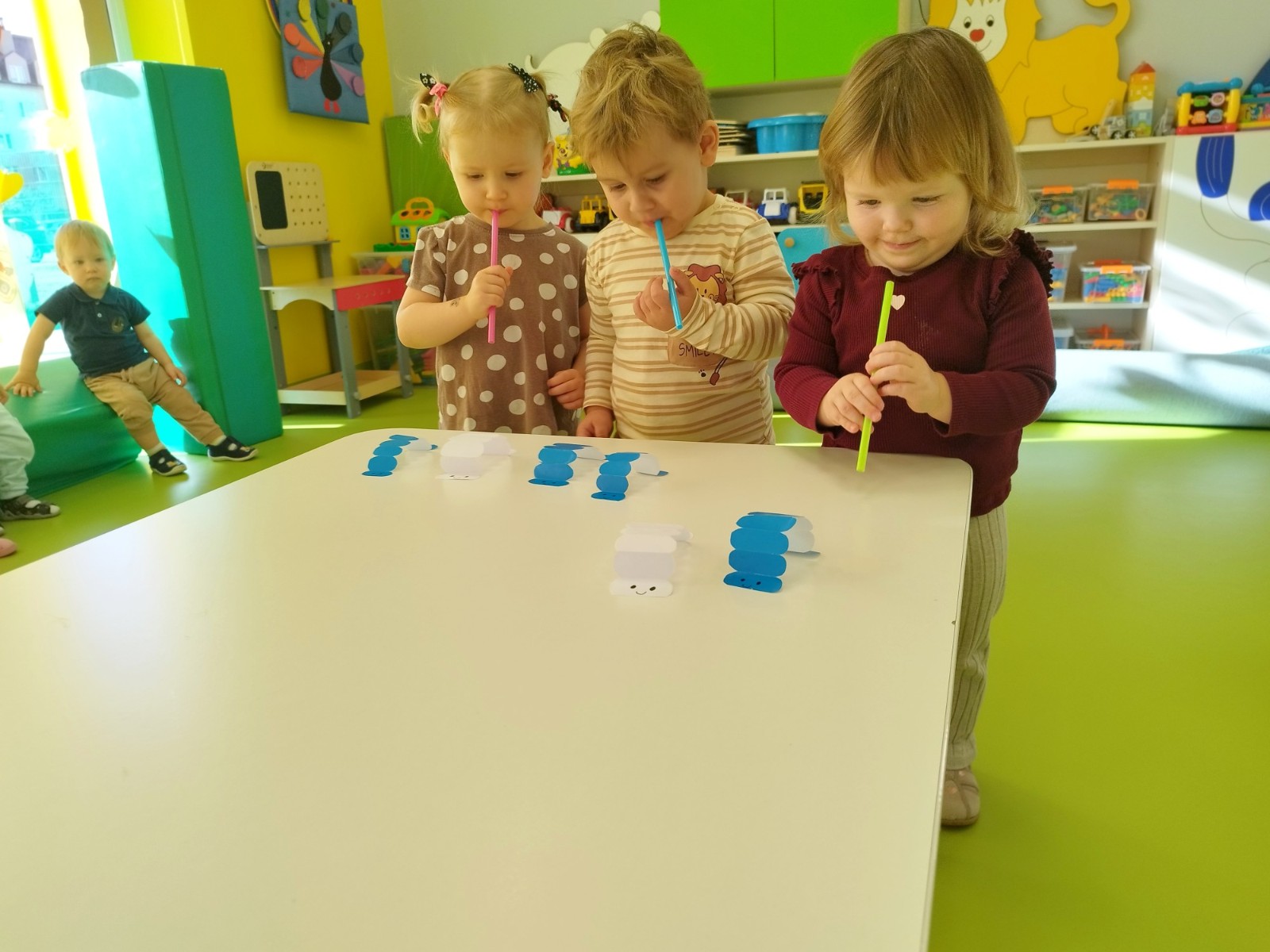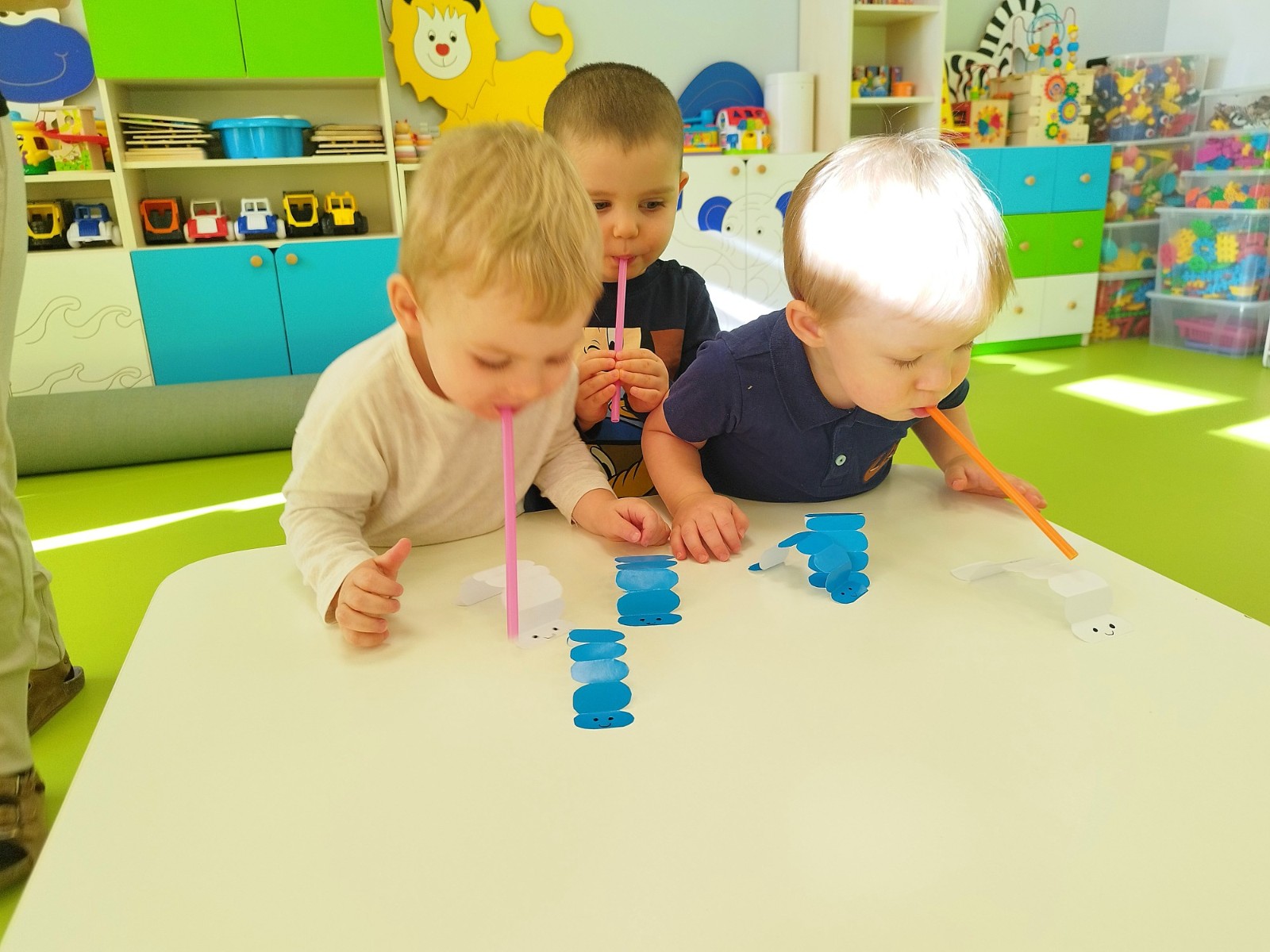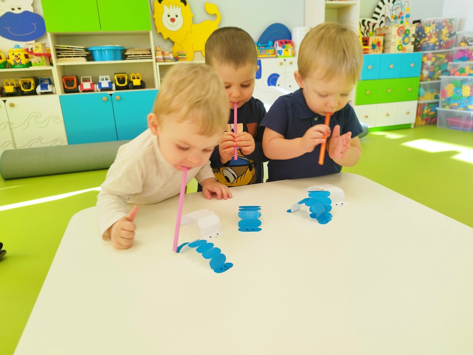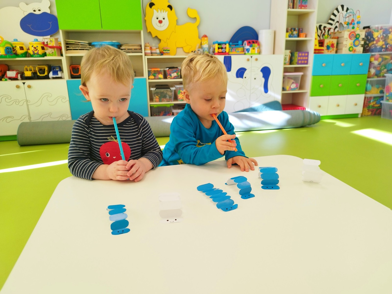 W naszym żłobku stawiamy na wszechstronny rozwój dziecka, dlatego często łączymy zabawę z nauką. Wykorzystując proste zabawy i ćwiczenia staramy się stymulować rozwój narządów mowy u naszych milisińskich.