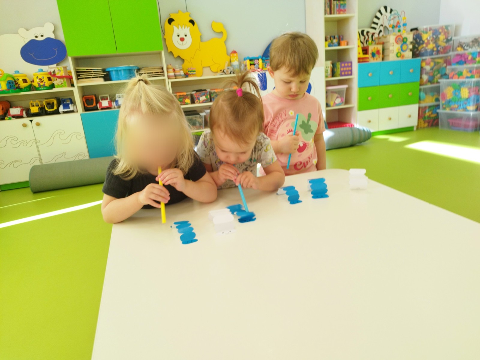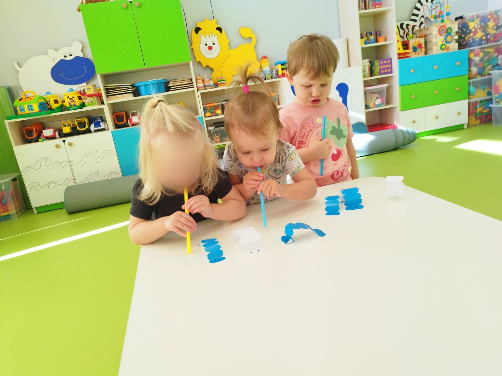 Zdjęcie przedstawia dzieci podczas zajęć logopedycznych
