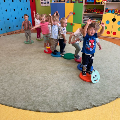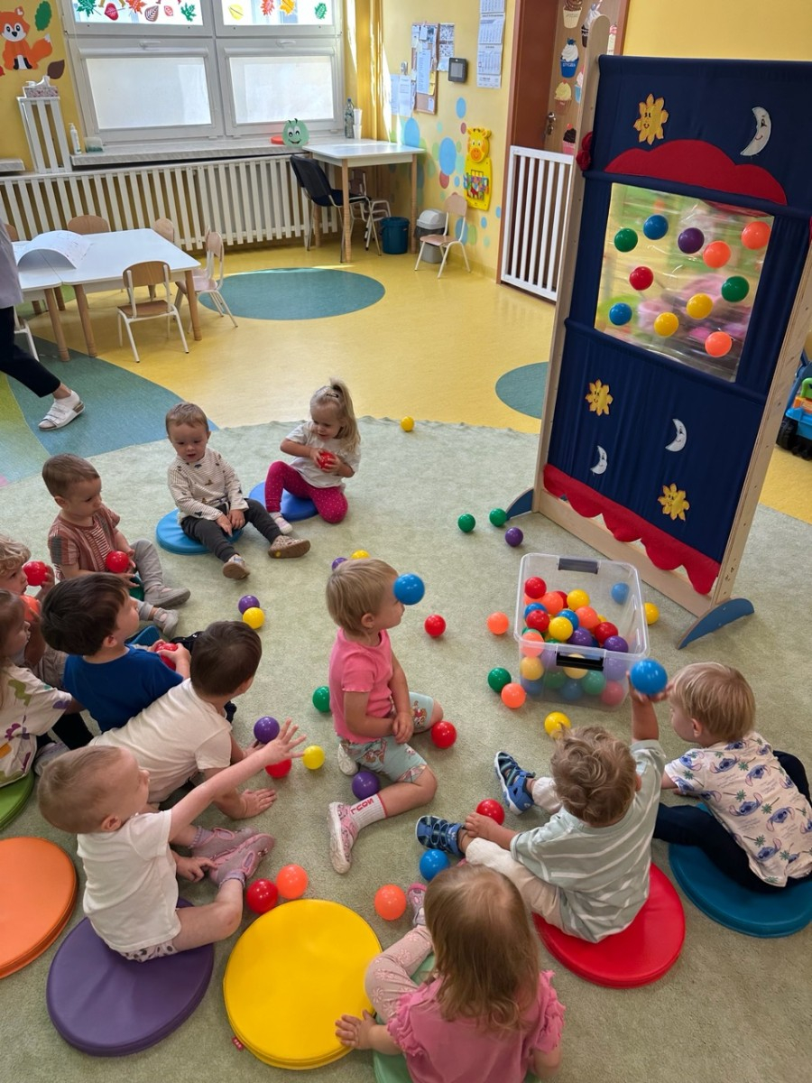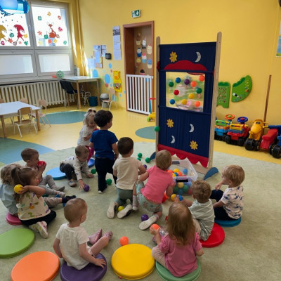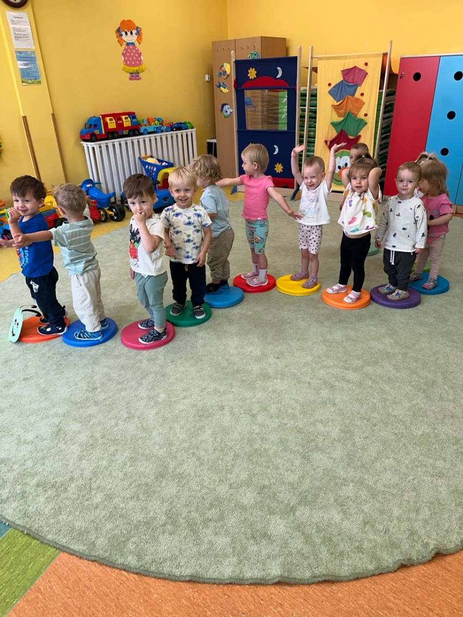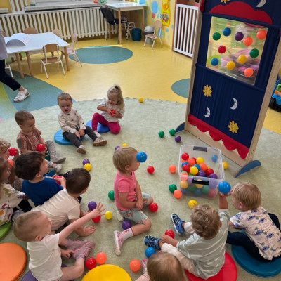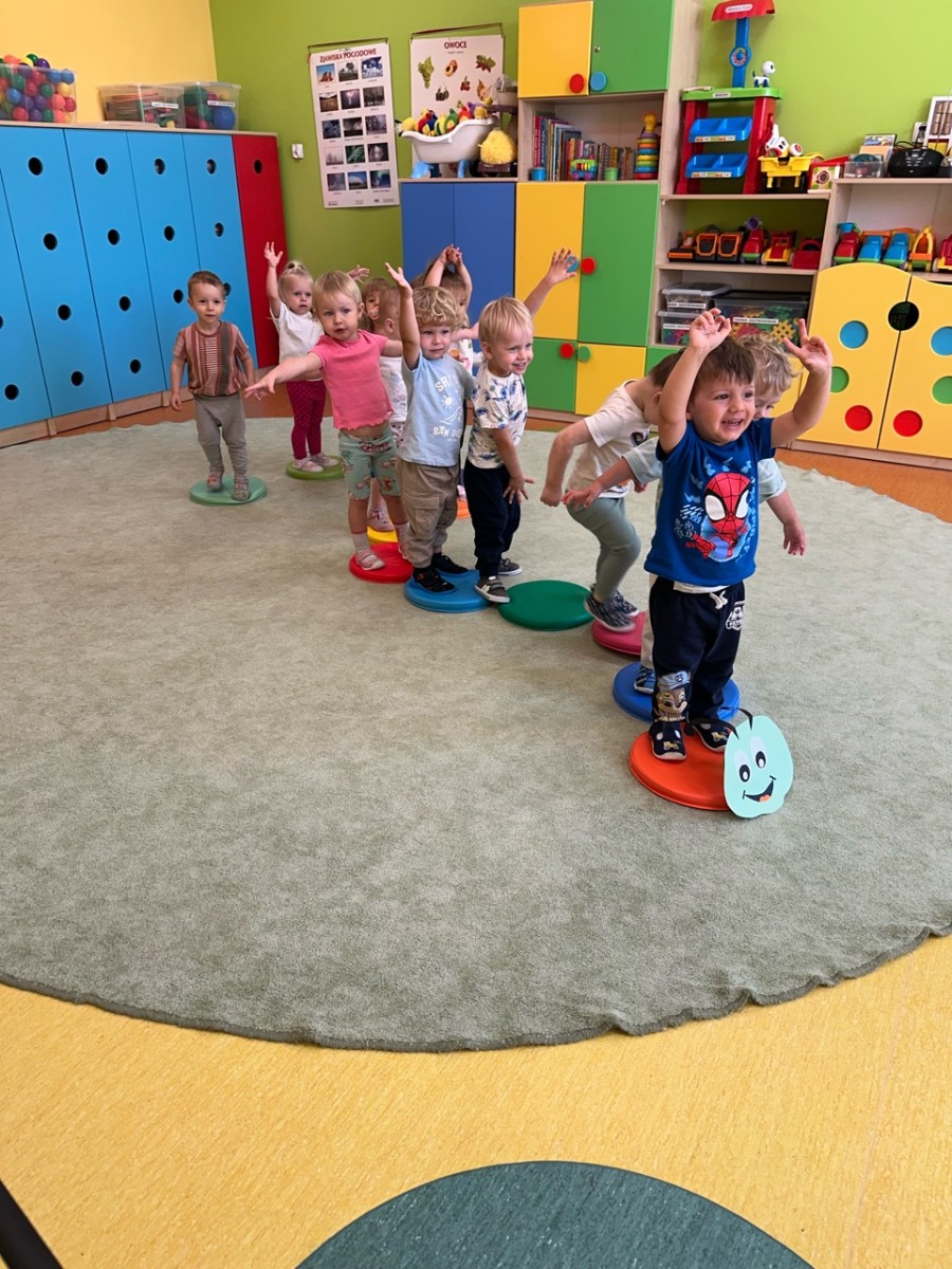 Dziś na gr Rybek obchodziliśmy Międzynarodowy dzień kropki. Dzieci uczestniczyły w kolorowych zajęciach, malując paluszkami kropkowy plakat. Po zajęciach plastycznych, odbyły się zajęcia ruchowe: segregowanie kółek wg kolorów, rzut do celu kolorowymi piłkami oraz zabawy z gąsienicą. Celem naszych zajęć było rozbudzenie kreatywności i sprawności fizycznej, oraz dostarczenie dzieciom dużo radości i dobrej zabawy