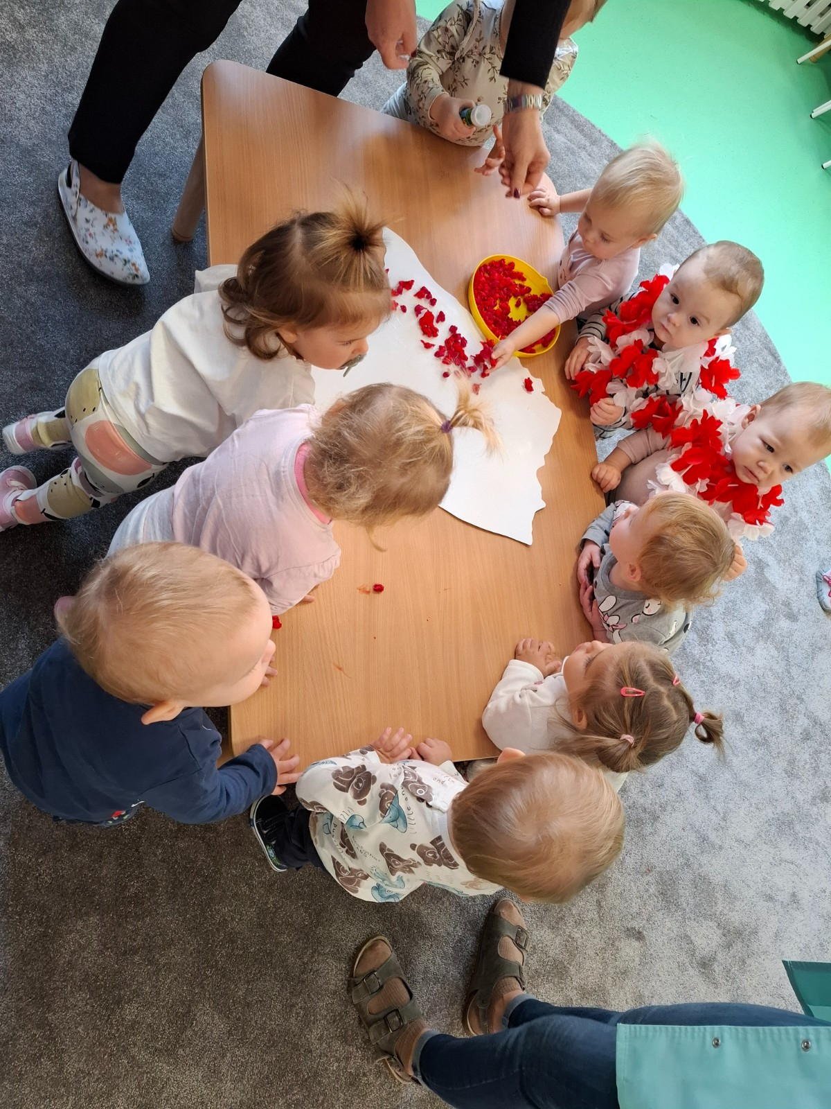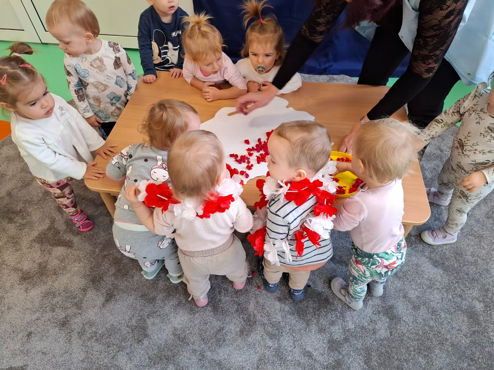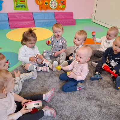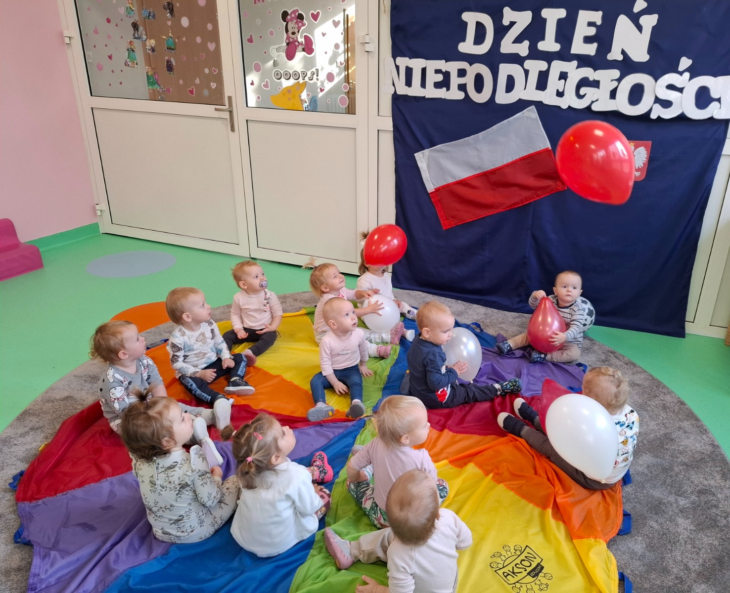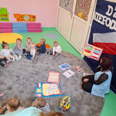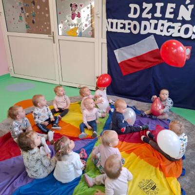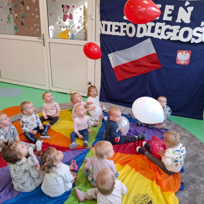 Na zakończenie zajęć nasze maluszki podrzucały do góry białe i czerwone baloniki oraz słuchały piosenek o tematyce patriotycznej