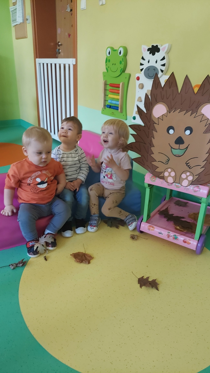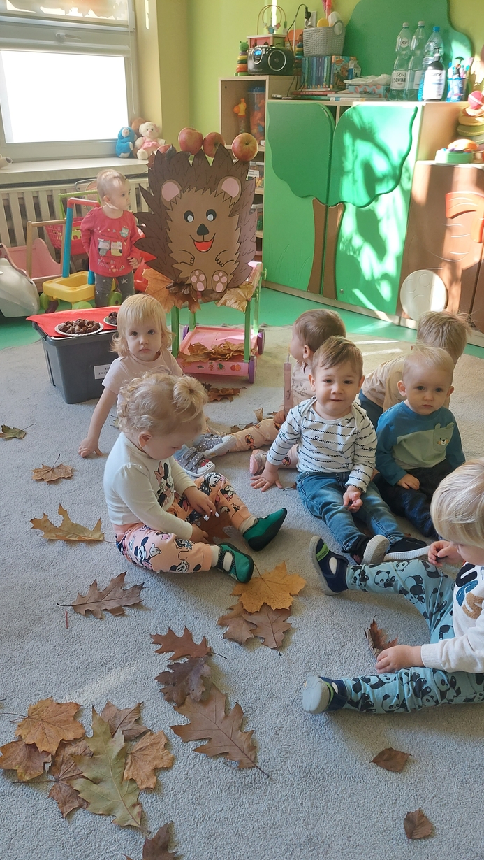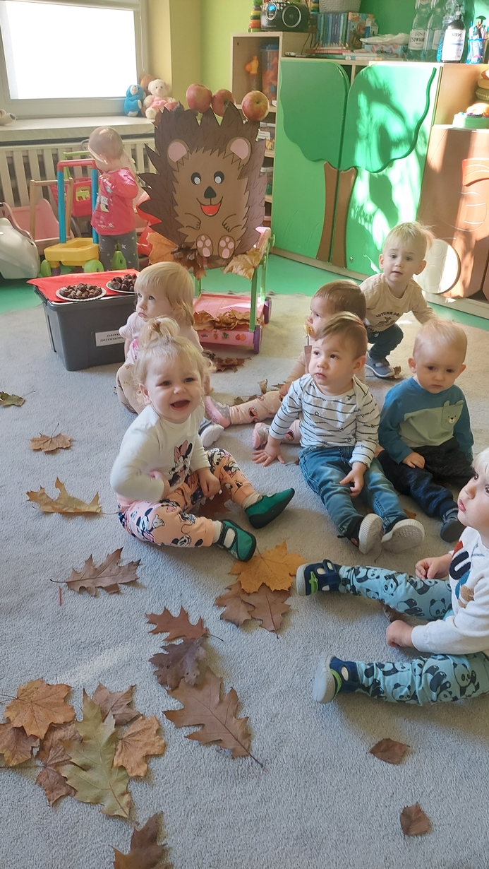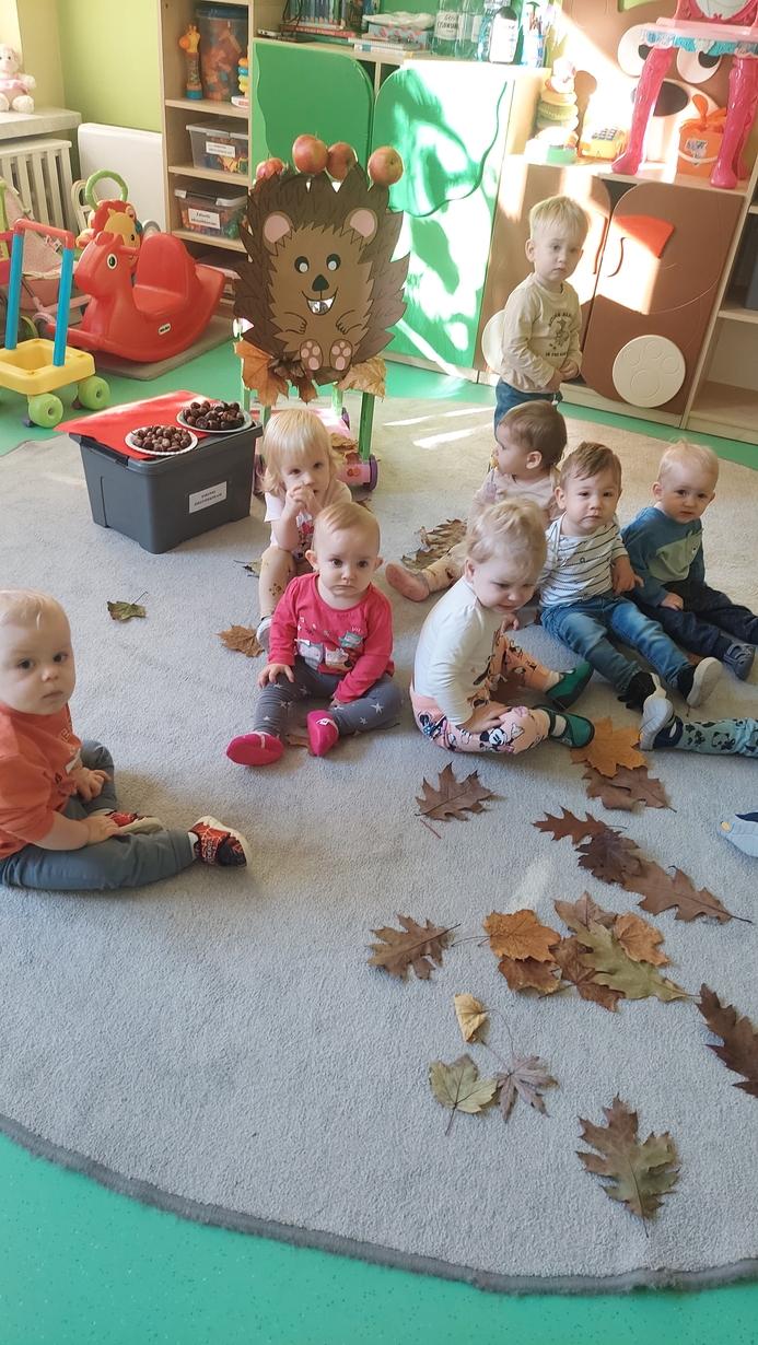 Nasze Misie podczas dzisiejszych zajęć świętowały Dzień Jeża. Na początku dowiedzieli się wielu ciekawostek o tym zimowym śpiochu. Później przy pomocy pań opiekunek wykonały prace plastyczną, odbijając małe rączki na kartce papieru, z których powstały piękne jeżyki. Następnie wszyscy uczestniczyli w wesołej zabawie, a mianowicie karmiły wesołego jeża kasztanami i żołędziami. Na zakończenie ćwiczyliście motorykę dużą przy zabawie ,, na dywanie siedzi jeż " oraz śpiewaliśmy piosenki o tym kolczastym zwierzaku.