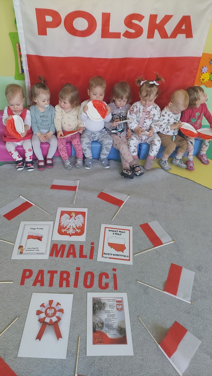 Zbliżają się bardzo ważne dni dla każdego polaka ,, 1-Maja ", ,,Dzień Flagi" oraz ,,Konstytucja 3 Maja ". Budząc zainteresowanie u dzieci, nasze Misie uczestniczyły w zajęciach edukacyjnych o charakterze patriotycznym. Dzieci poznały symbole narodowe godło i flagę, oraz poznały znacznie patriotyzmu i przynależności do państwa. Brały udział w zabawach ruchowych, a także plastycznych podczas których, wykonały flagę Polski i inne symbole związane z tymi dniami.