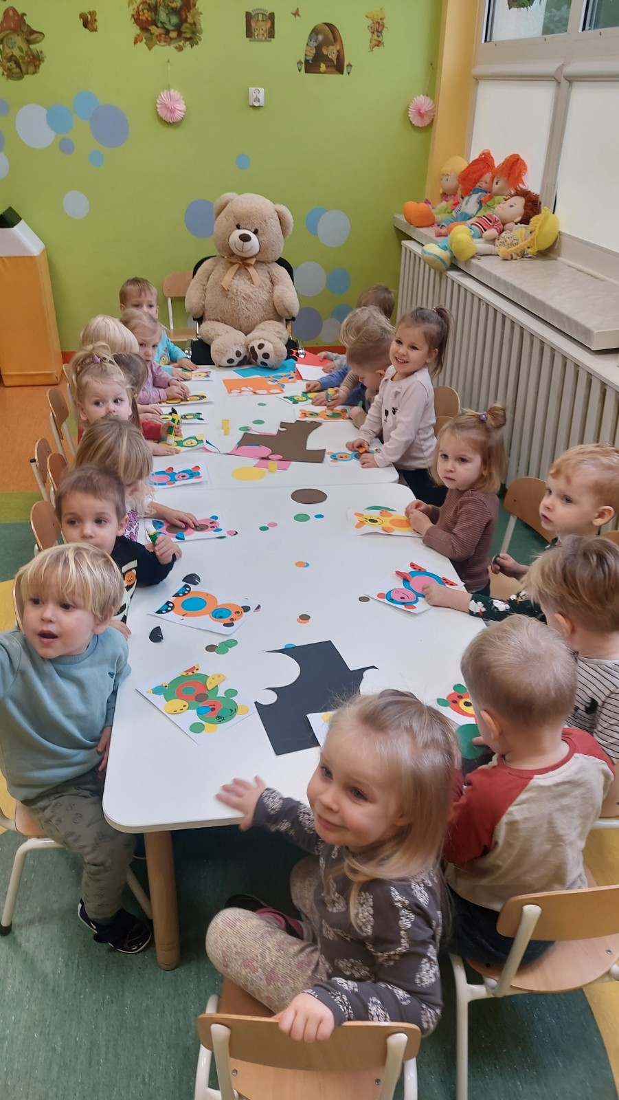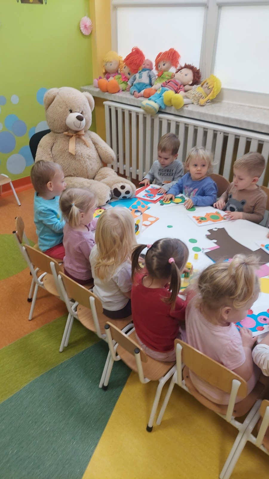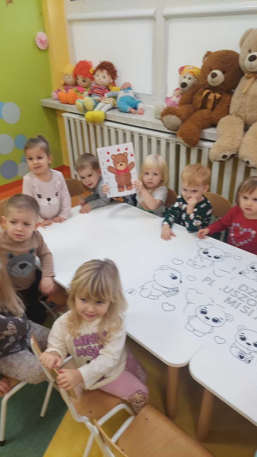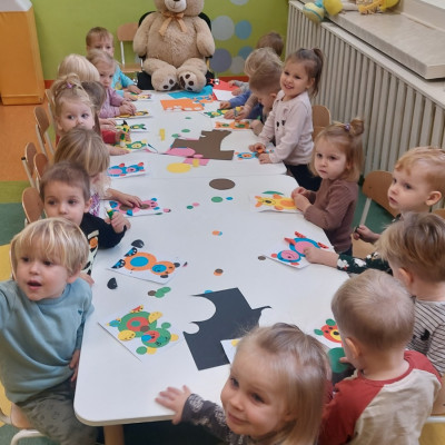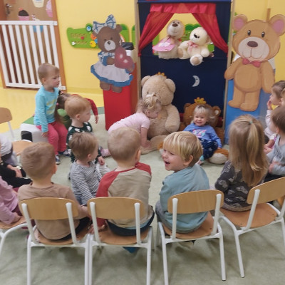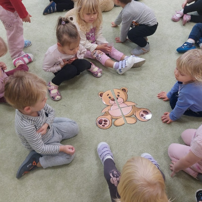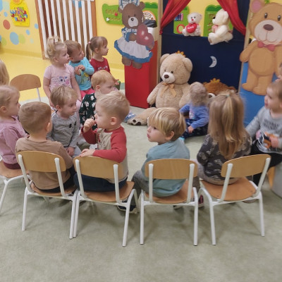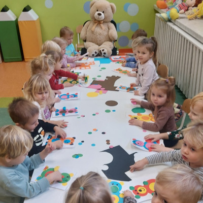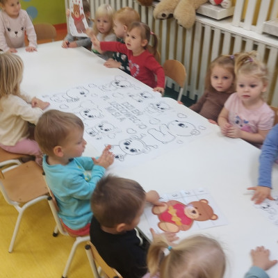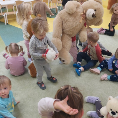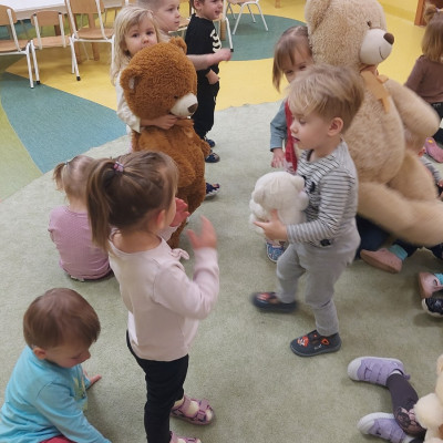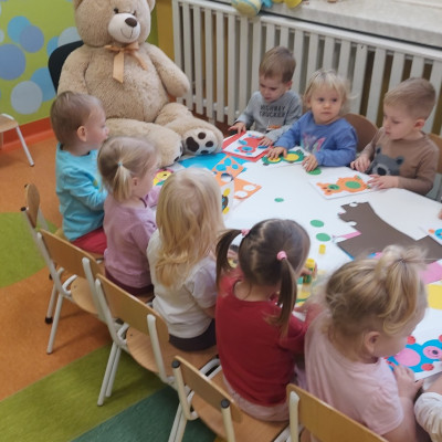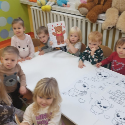 Dzień Pluszowego Misia to wyjątkowe świeto dla najmłodszych, jest okazją do wspólnej zabawy, rozwijania przyjaźni i ciepłej atmosfery. Dzieci z grupy Rybki miały okazję oglądać mini teatrzyk w którym główny bohater był,, Miś Foszek ". Podczas przedstawienia przenieśliśmy się w świat wyobraźni, fantazji i wielu przygód. Później przyszedł czas na zabawę podczas której dzieci rozpoznawały na obrazkach postać Misia i zgadywały z jakiej jest bajki. Nasze Rybki układały również puzle z których powstał duży miś oraz próbowałyby przysmaku Misia czyli miodu. Po wspólnej zabawie wykonaliśmy prace plastyczne pt. ,, Kolorowe Misie " z różnych wielkości papierowych kolorowych kółek. Na koniec śpiewaliśmy piosenki. Dzień był radosny, pełen śmiechu i wspólnej zabawy. Mamy nadzieję że to święto zostanie w naszych wspomnieniach długi czas.
