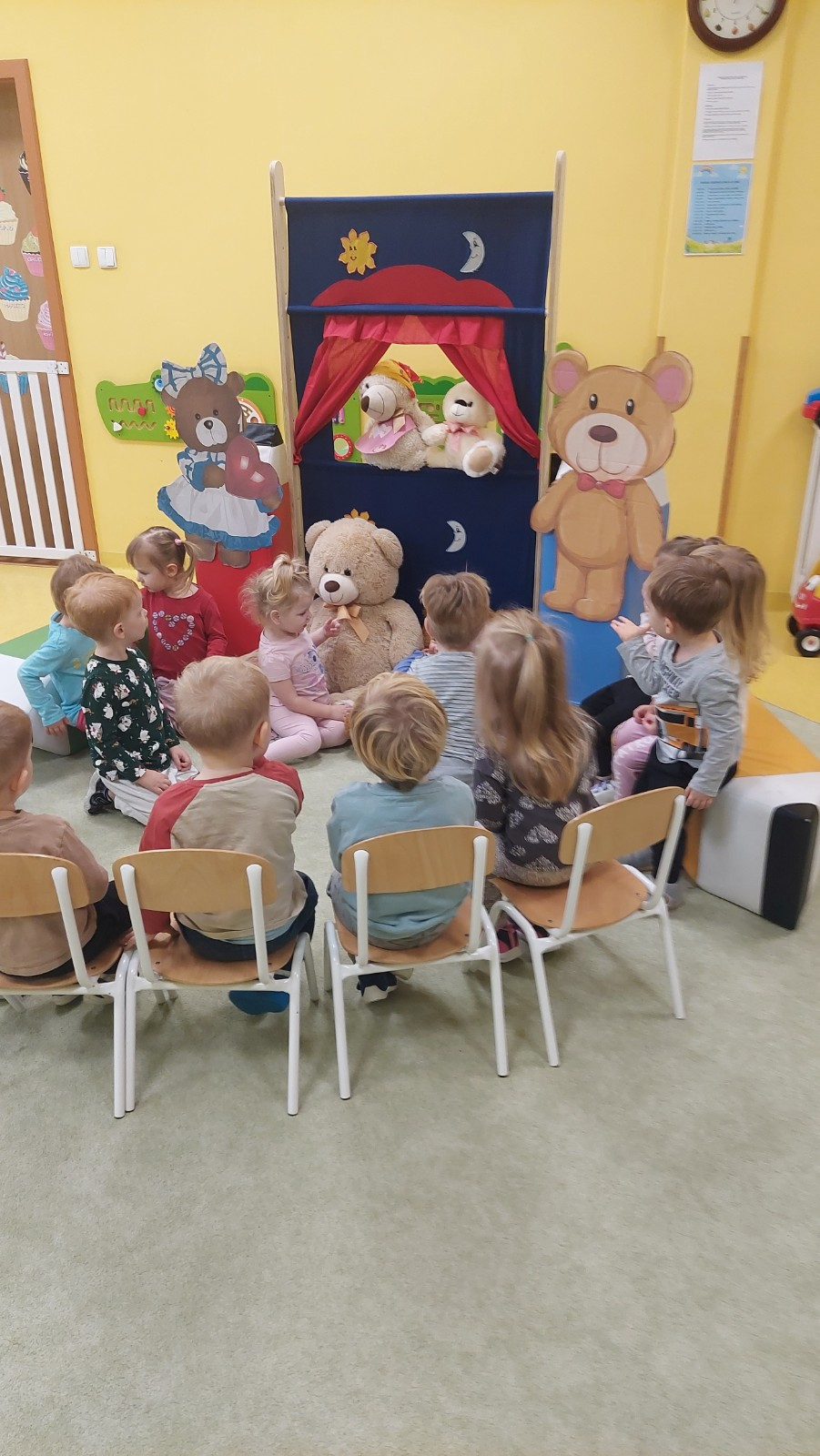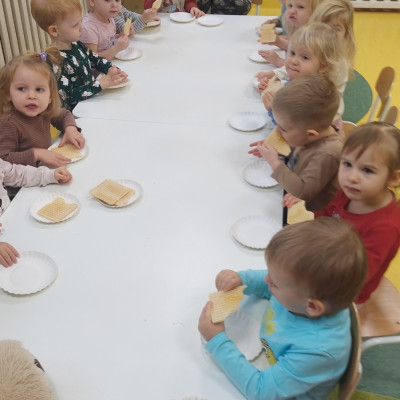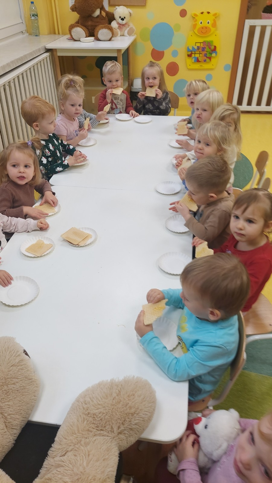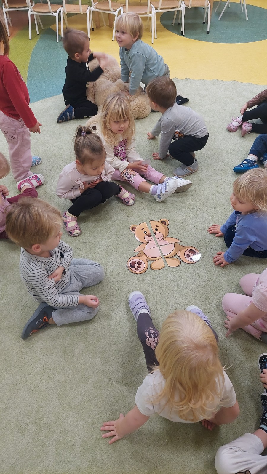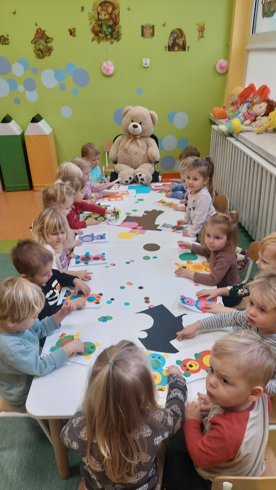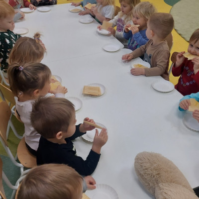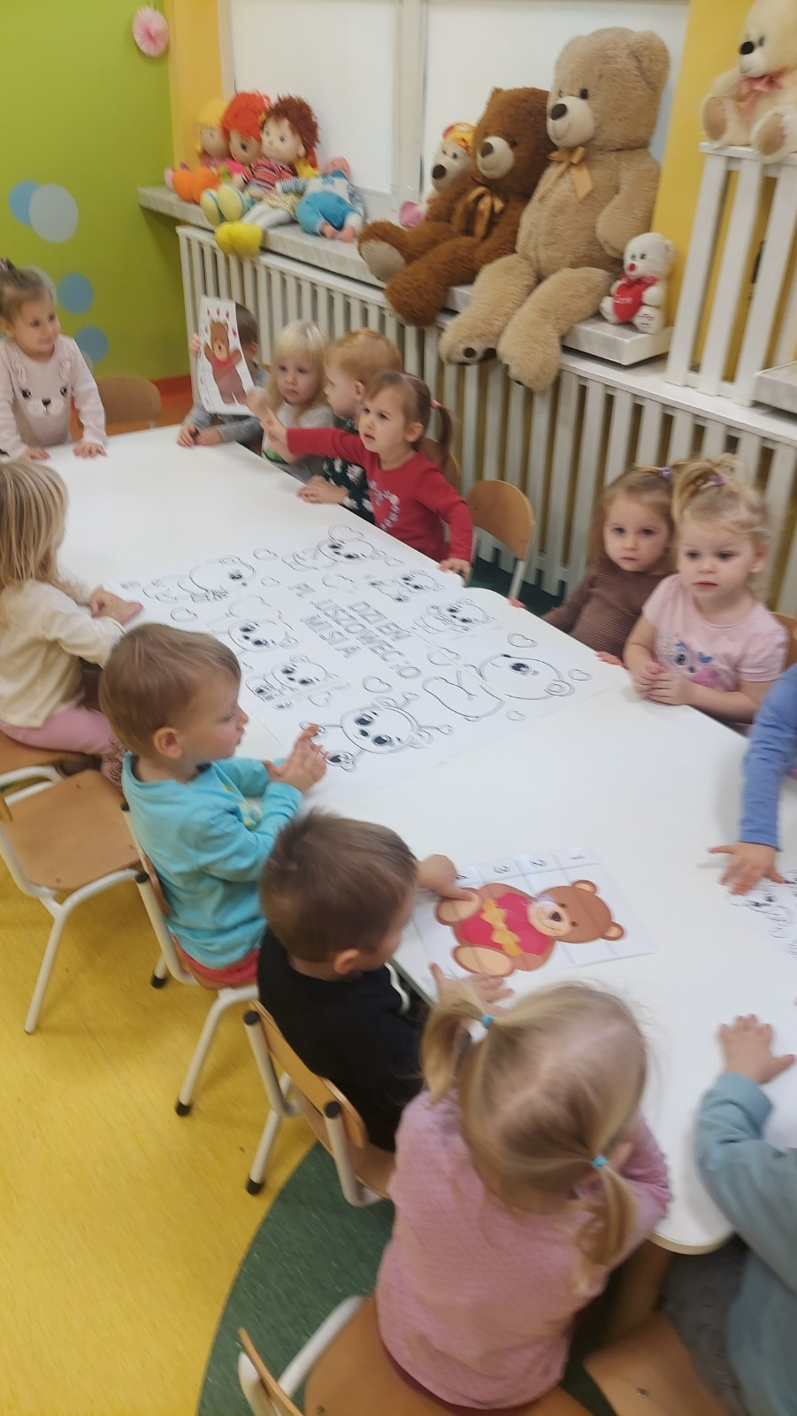 Dzień Pluszowego Misia to wyjątkowe świeto dla najmłodszych, jest okazją do wspólnej zabawy, rozwijania przyjaźni i ciepłej atmosfery. Dzieci z grupy Rybki miały okazję oglądać mini teatrzyk w którym główny bohater był,, Miś Foszek ". Podczas przedstawienia przenieśliśmy się w świat wyobraźni, fantazji i wielu przygód. Później przyszedł czas na zabawę podczas której dzieci rozpoznawały na obrazkach postać Misia i zgadywały z jakiej jest bajki. Nasze Rybki układały również puzle z których powstał duży miś oraz próbowałyby przysmaku Misia czyli miodu. Po wspólnej zabawie wykonaliśmy prace plastyczne pt. ,, Kolorowe Misie " z różnych wielkości papierowych kolorowych kółek. Na koniec śpiewaliśmy piosenki. Dzień był radosny, pełen śmiechu i wspólnej zabawy. Mamy nadzieję że to święto zostanie w naszych wspomnieniach długi czas.