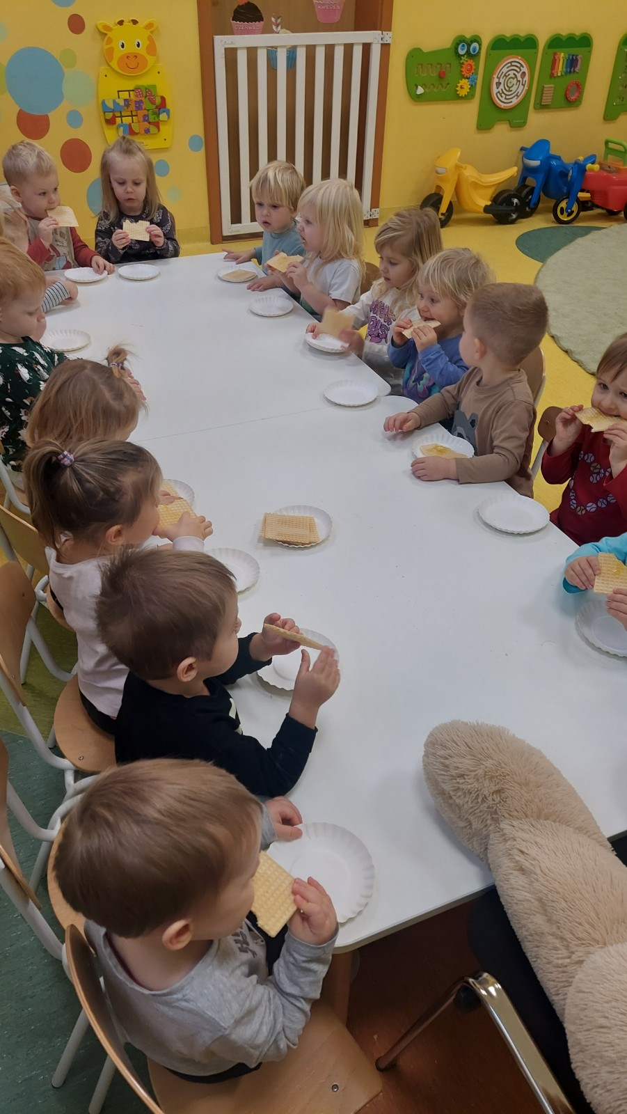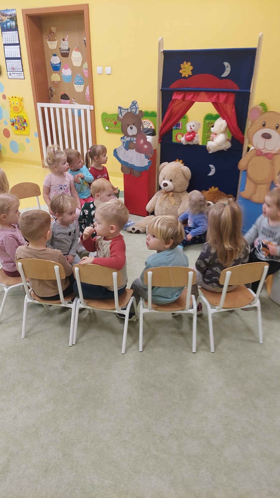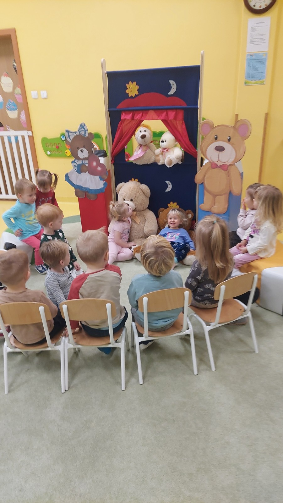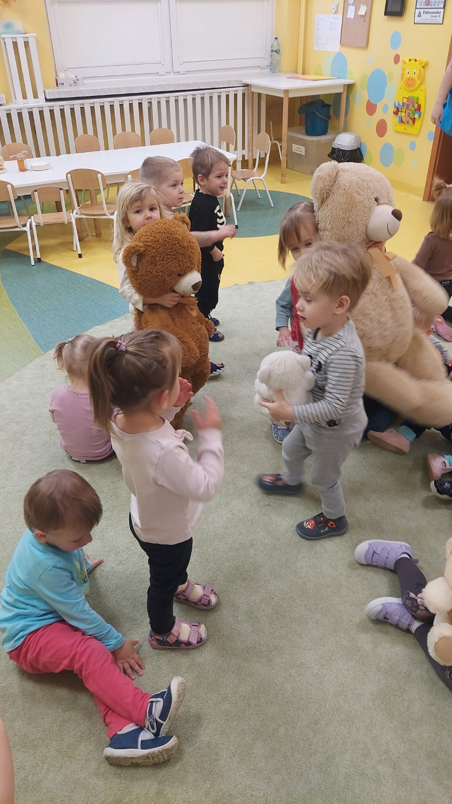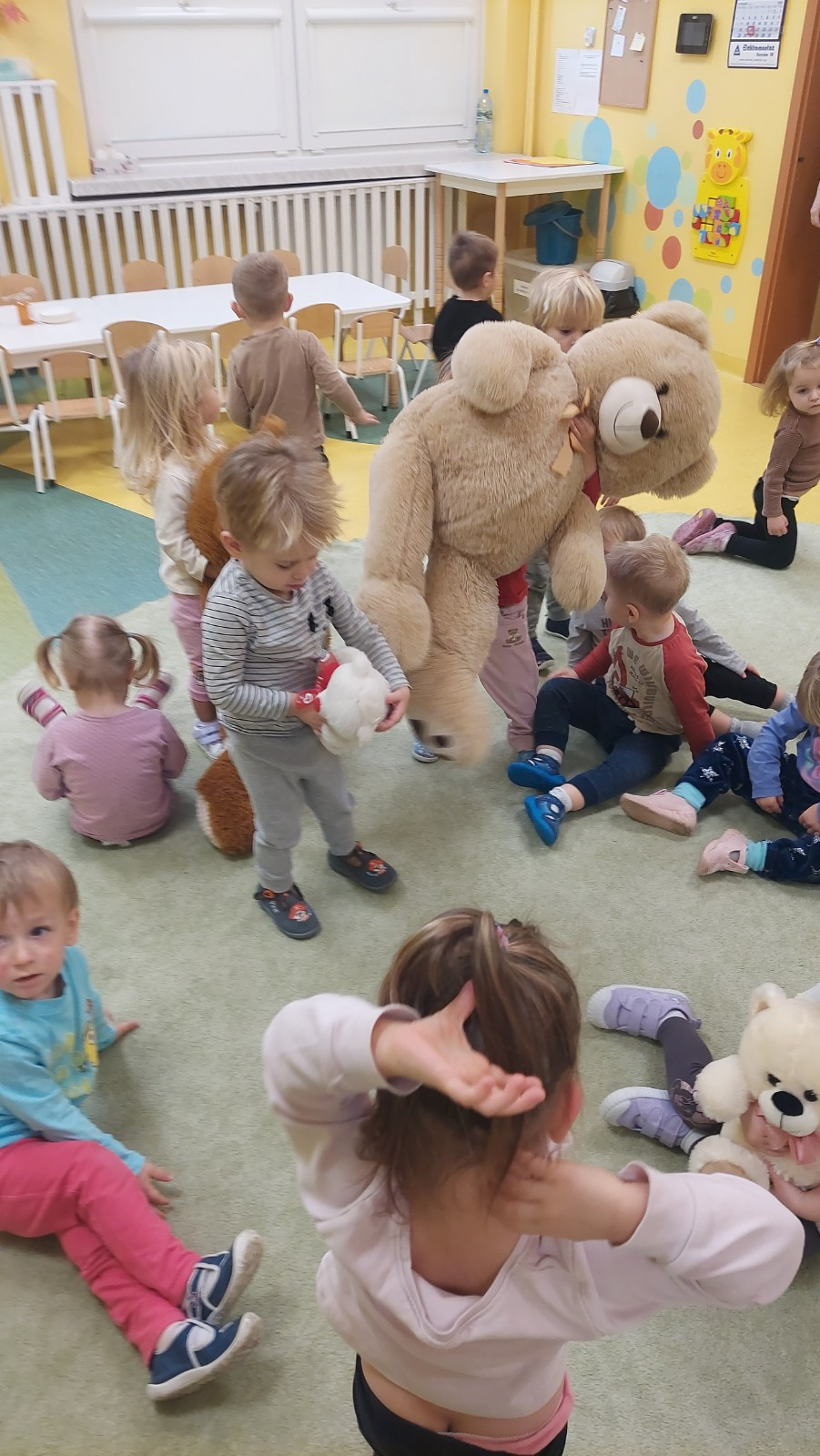 Dzień Pluszowego Misia to wyjątkowe świeto dla najmłodszych, jest okazją do wspólnej zabawy, rozwijania przyjaźni i ciepłej atmosfery. Dzieci z grupy Rybki miały okazję oglądać mini teatrzyk w którym główny bohater był,, Miś Foszek ". Podczas przedstawienia przenieśliśmy się w świat wyobraźni, fantazji i wielu przygód. Później przyszedł czas na zabawę podczas której dzieci rozpoznawały na obrazkach postać Misia i zgadywały z jakiej jest bajki. Nasze Rybki układały również puzle z których powstał duży miś oraz próbowałyby przysmaku Misia czyli miodu. Po wspólnej zabawie wykonaliśmy prace plastyczne pt. ,, Kolorowe Misie " z różnych wielkości papierowych kolorowych kółek. Na koniec śpiewaliśmy piosenki. Dzień był radosny, pełen śmiechu i wspólnej zabawy. Mamy nadzieję że to święto zostanie w naszych wspomnieniach długi czas.