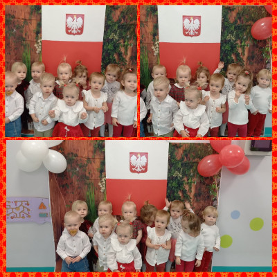 W dniu dzisiejszym obchodziliśmy Święto Niepodległości. Dzieci poznawały barwy i symbole narodowe naszego kraju mające na celu kształtowanie miłości i przywiązania do jego kultury i tradycji. Dzieci odsłuchały hymn narodowy. Na zakończenie uroczystości wykonaliśmy pracę plastyczną- flagę.