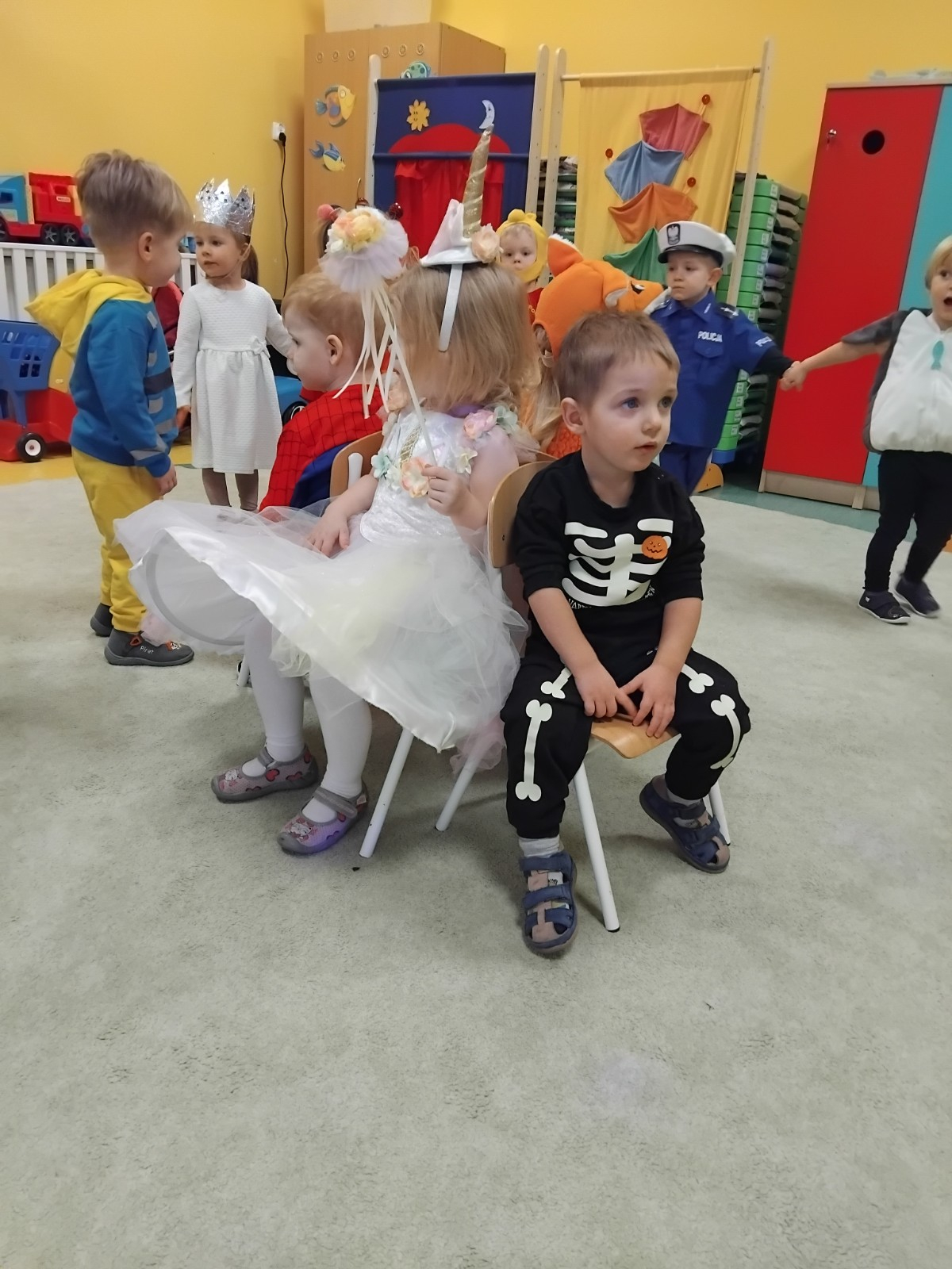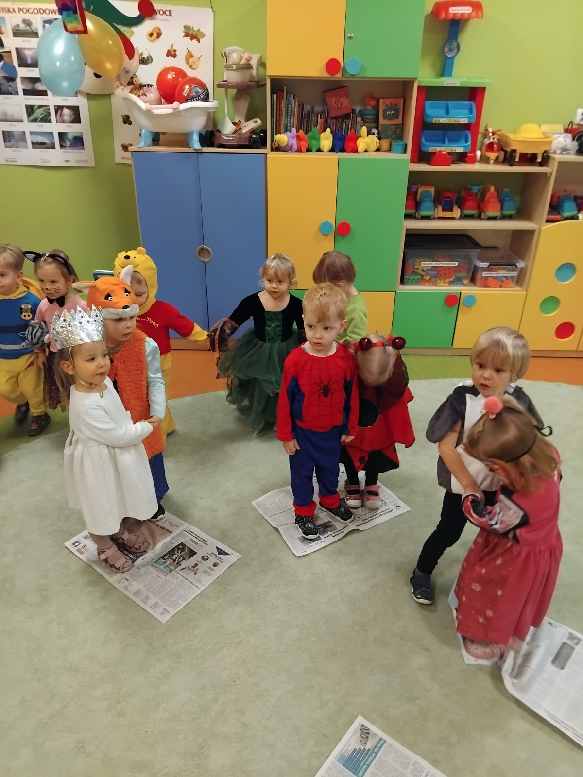 Zdjęcie przedstawia dzieci bawiące się na balu karnawałowym
