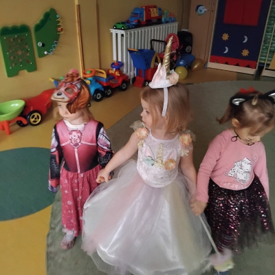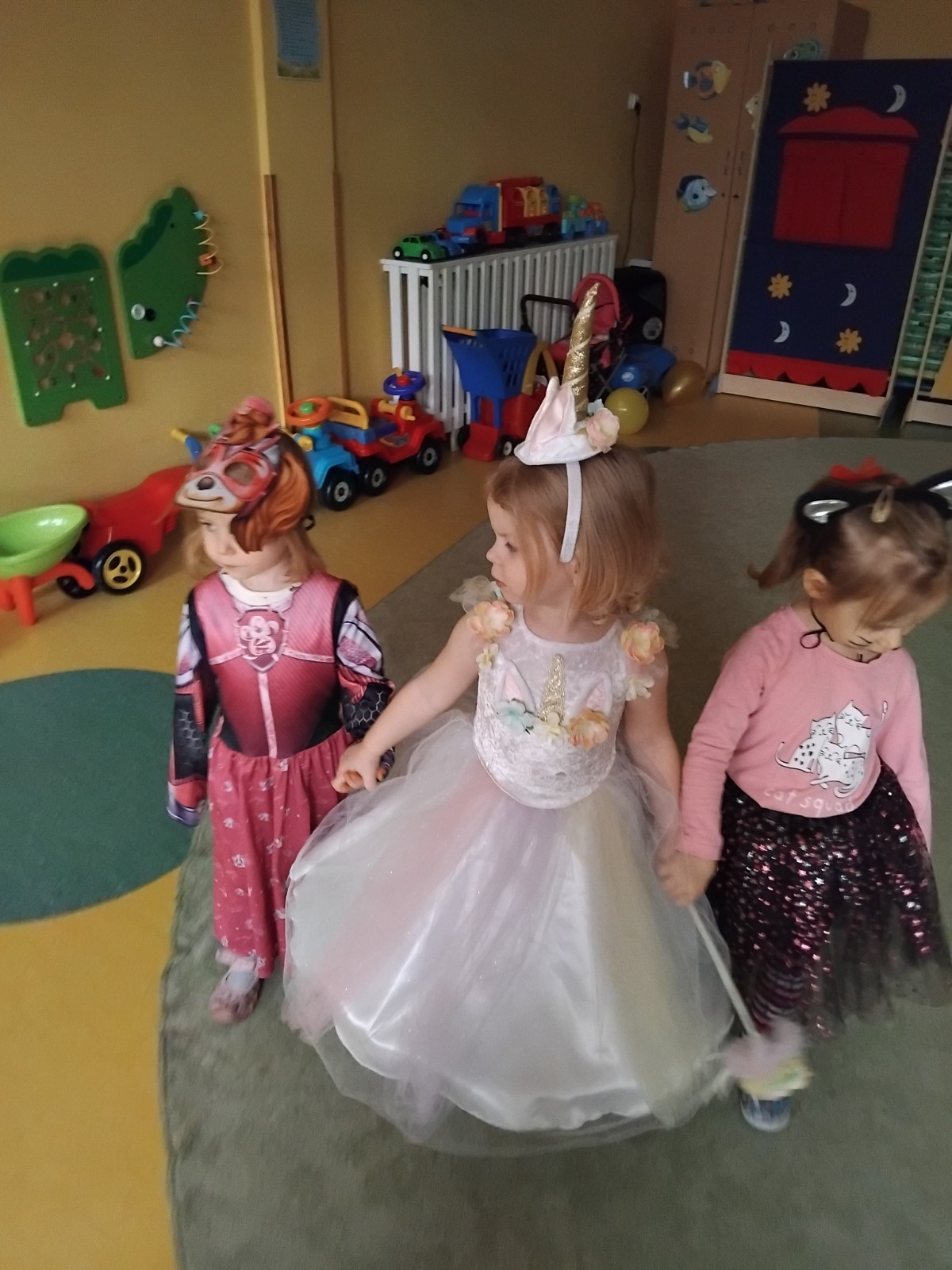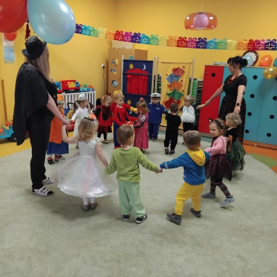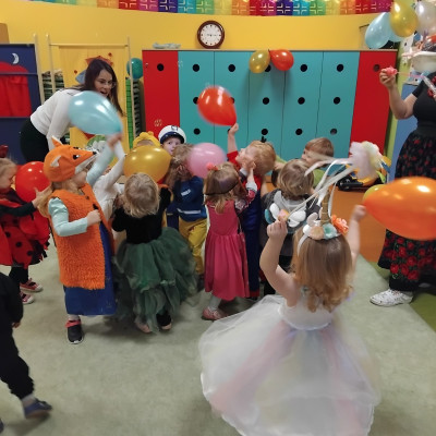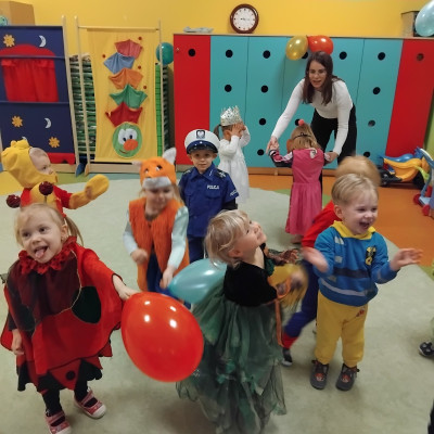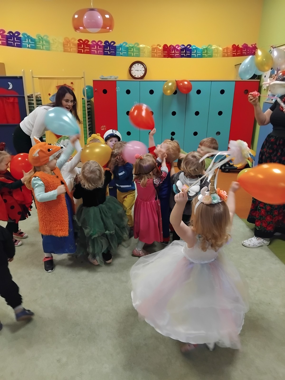 24 stycznia 2025 roku w naszym żłobku odbył się Bal Karnawałowy. Nasze Rybki już od rana z dumą prezentowały karnawałowe stroje. Dzieci przebrane były za wróżki, księżniczki,motylki,policjantów strażaków oraz inne bajkowe postacie. Przebierańcy świetnie się bawili z ochotą uczestnicząc w różnych konkurencjach między innymi: tańca w parach z balonem, tańca na gazecie oraz w konkursie z krzesełkami. W czasie przerwy na odpoczynek na dzieci czekał pyszny poczęstunek. Na koniec zabawy uczestnicy wybrali króla i królową balu. Dzieci bawiły się doskonale a wystrój sali i wesoła muzyka zachęcały do tańca. Na twarzach naszych Rybek malował się uśmiech, który nie znikał pomimo zmęczenia. Wszyscy bawili się wspaniałe. Ach, cóż to był za bal!!!