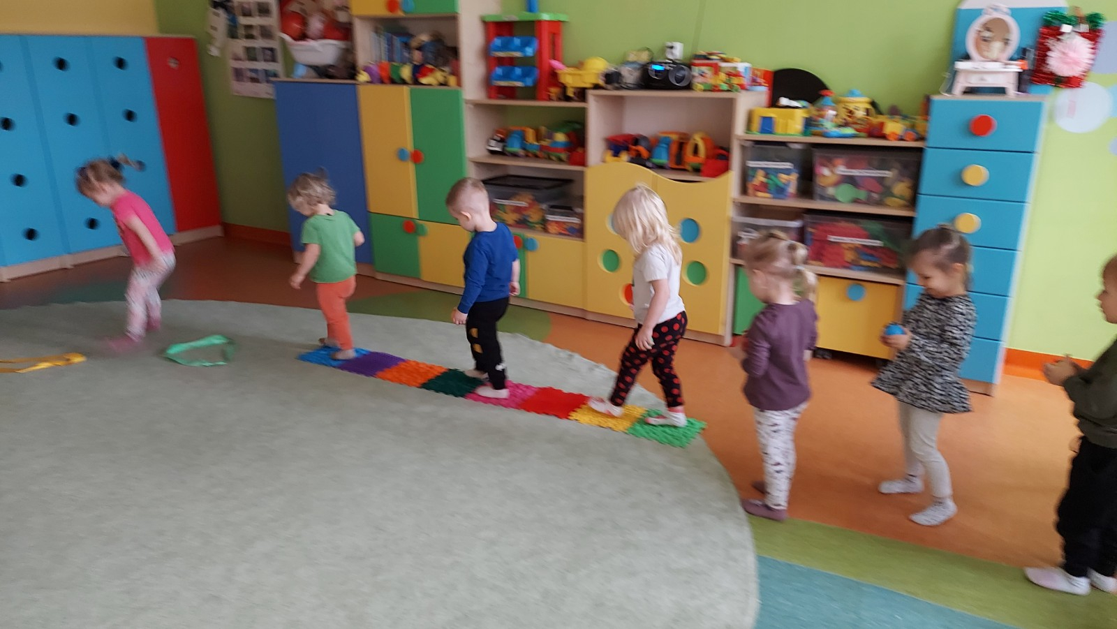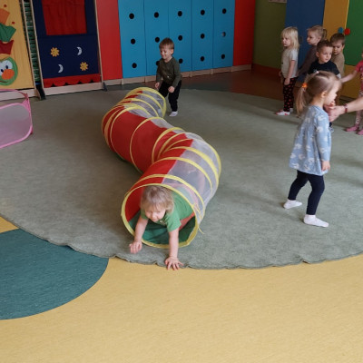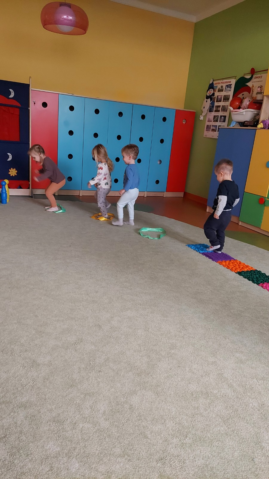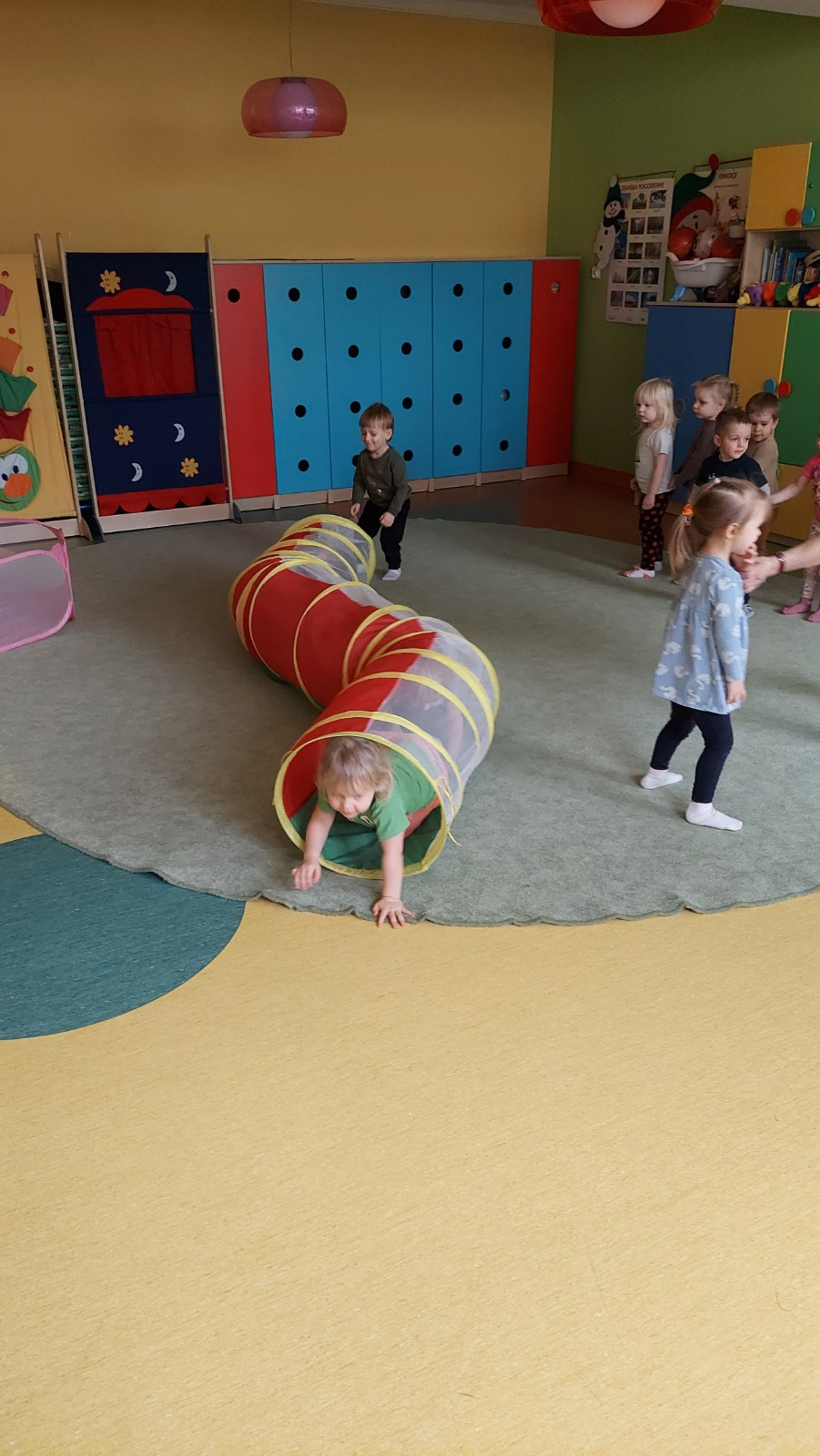 Ruch jest ważnym elementem rozwoju małego dziecka. Dlatego dzieci z grupy Rybki dzielnie pokonywały kolejne etapy toru przeszkód, który miał na celu rozwijać motorykę dużą, koordynację ruchową, wspierać ich zdrowie i sprawność fizyczną. Podczas zajęć było dużo zabawy a, na twarzach naszych rybek malował się uśmiech I nutka rywalizacji. Dzieci zdobywały nowe umiejętności w naturalny i radosny sposób. Była to najlepsza forma nauki oraz zabawy.