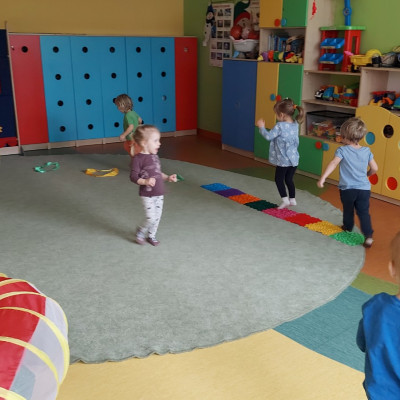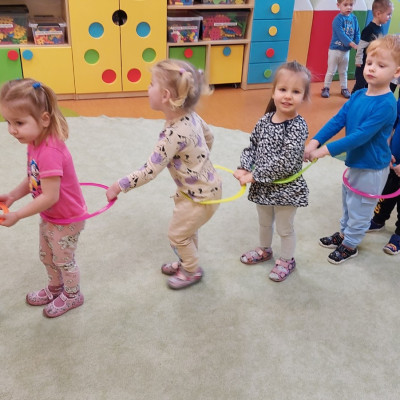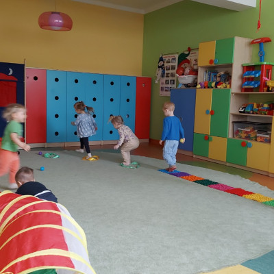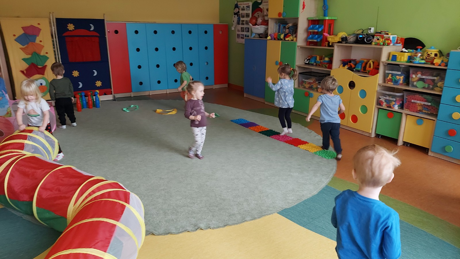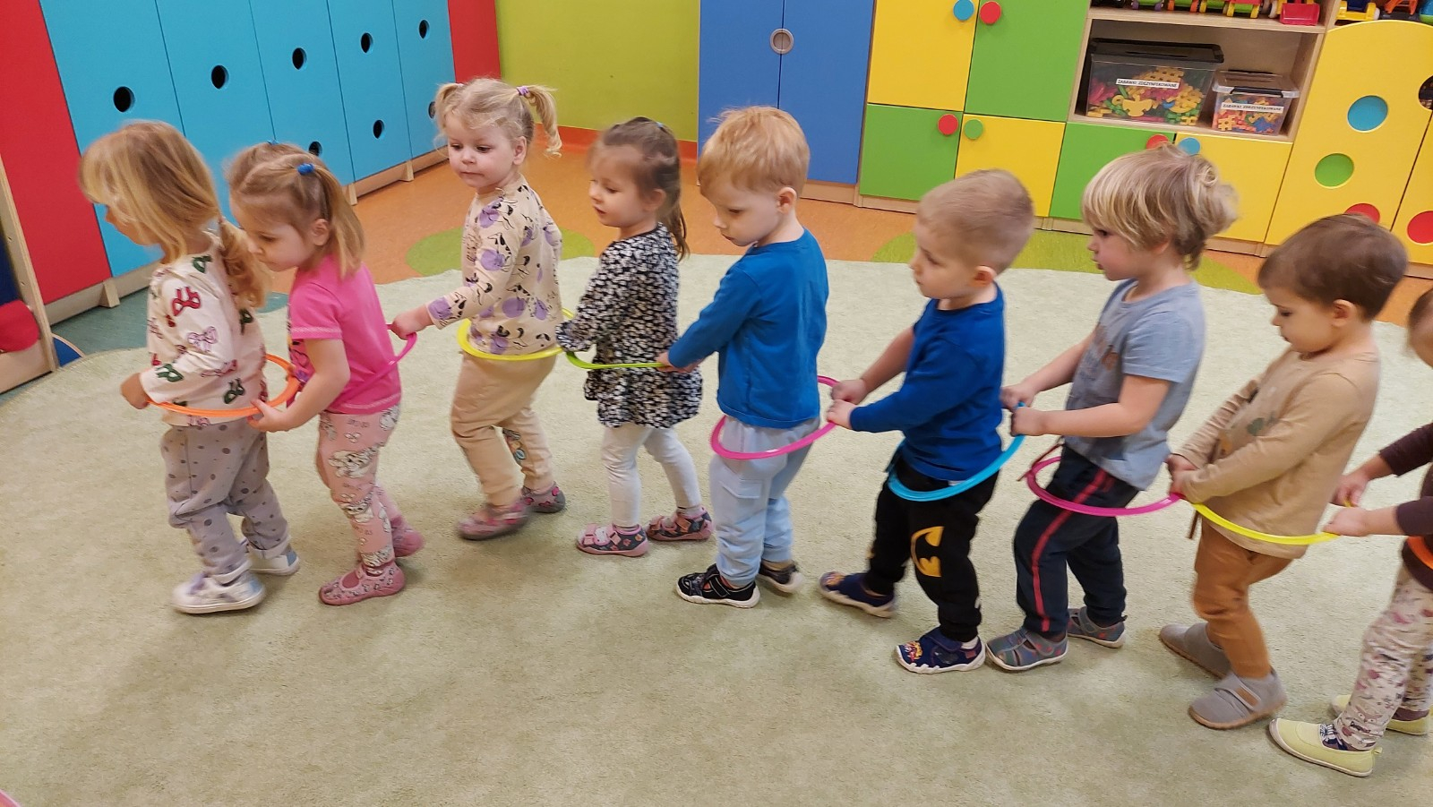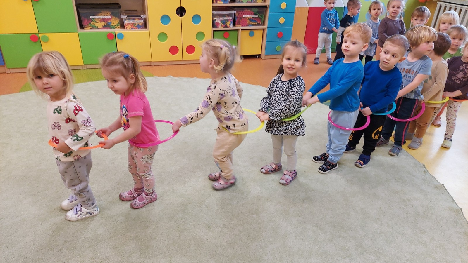 Ruch jest ważnym elementem rozwoju małego dziecka. Dlatego dzieci z grupy Rybki dzielnie pokonywały kolejne etapy toru przeszkód, który miał na celu rozwijać motorykę dużą, koordynację ruchową, wspierać ich zdrowie i sprawność fizyczną. Podczas zajęć było dużo zabawy a, na twarzach naszych rybek malował się uśmiech I nutka rywalizacji. Dzieci zdobywały nowe umiejętności w naturalny i radosny sposób. Była to najlepsza forma nauki oraz zabawy.