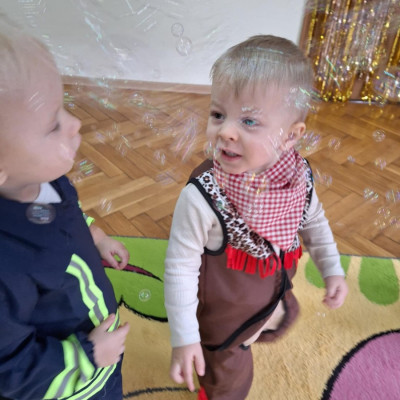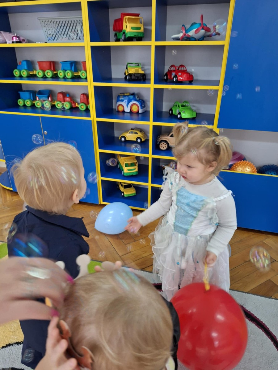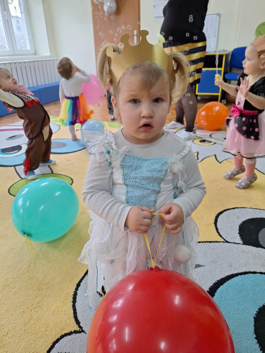 Zdjęcia przedstawiają dzieci podczas balu karnawałowego.
