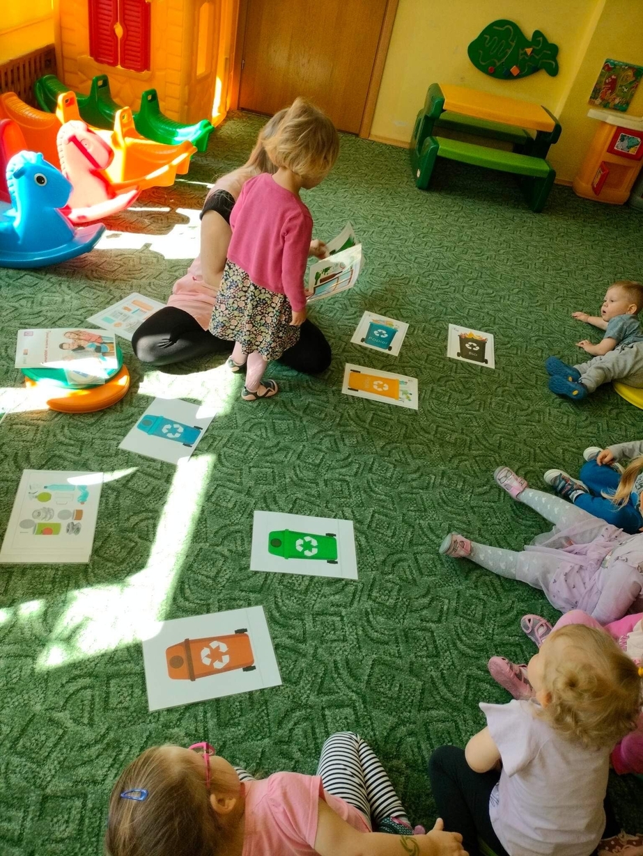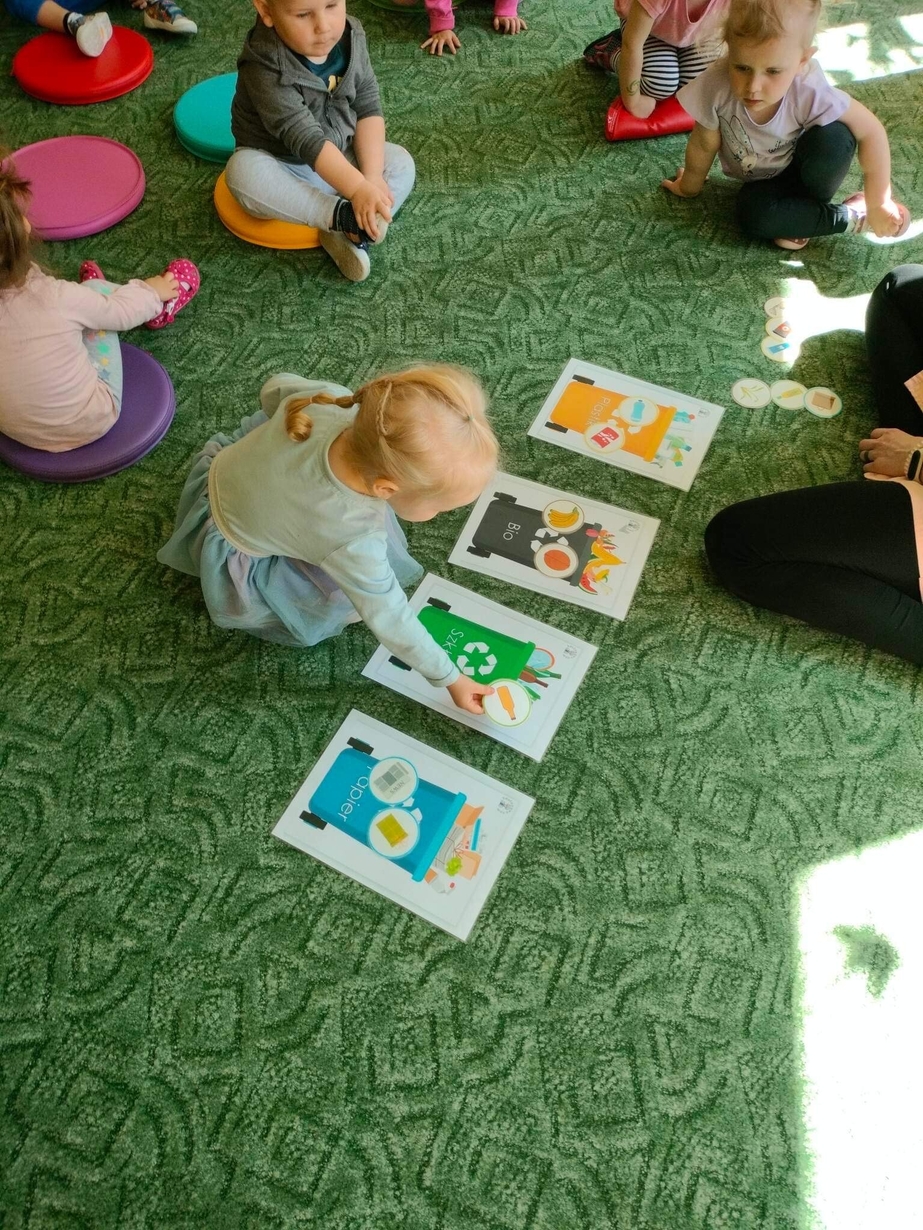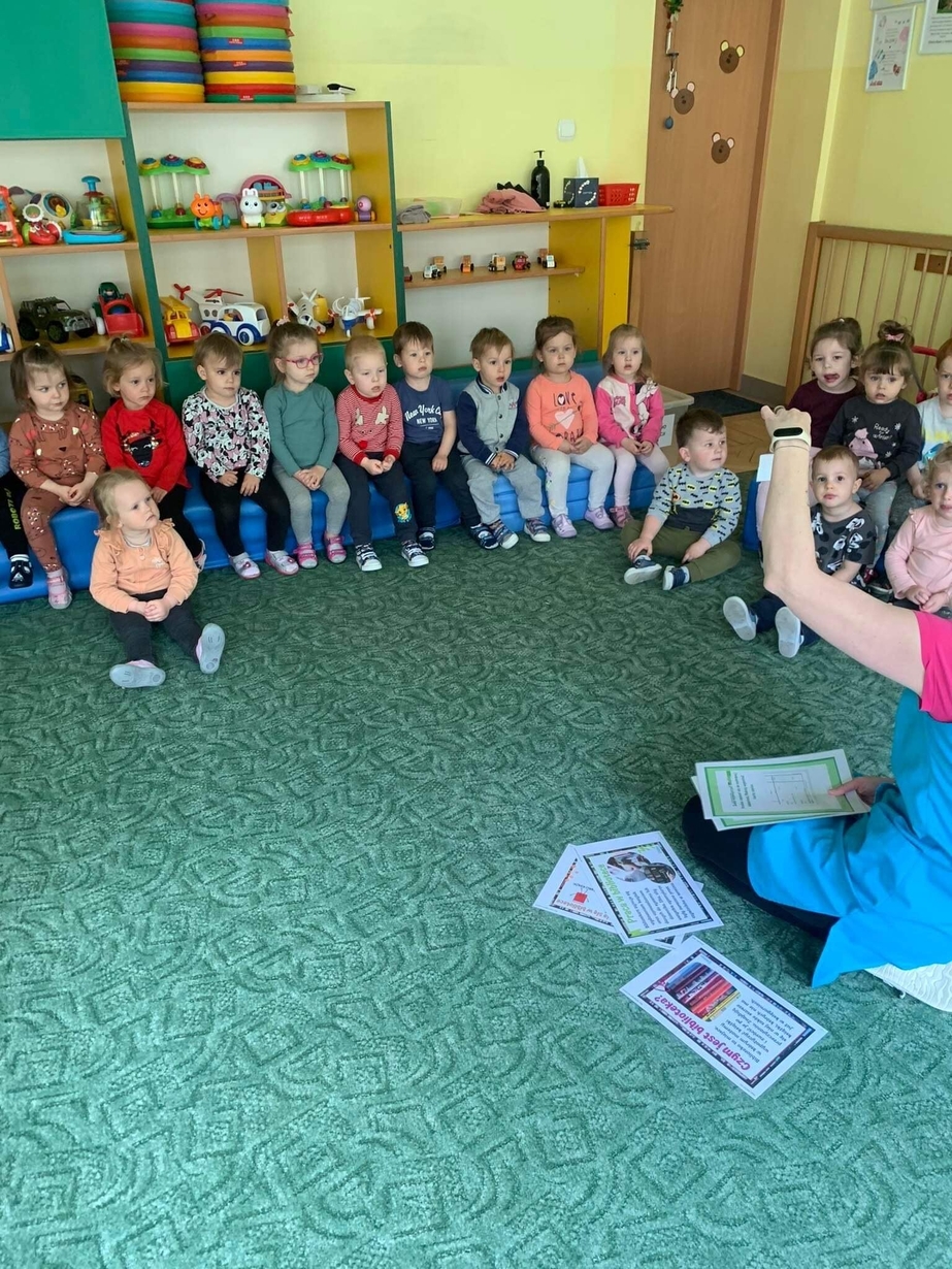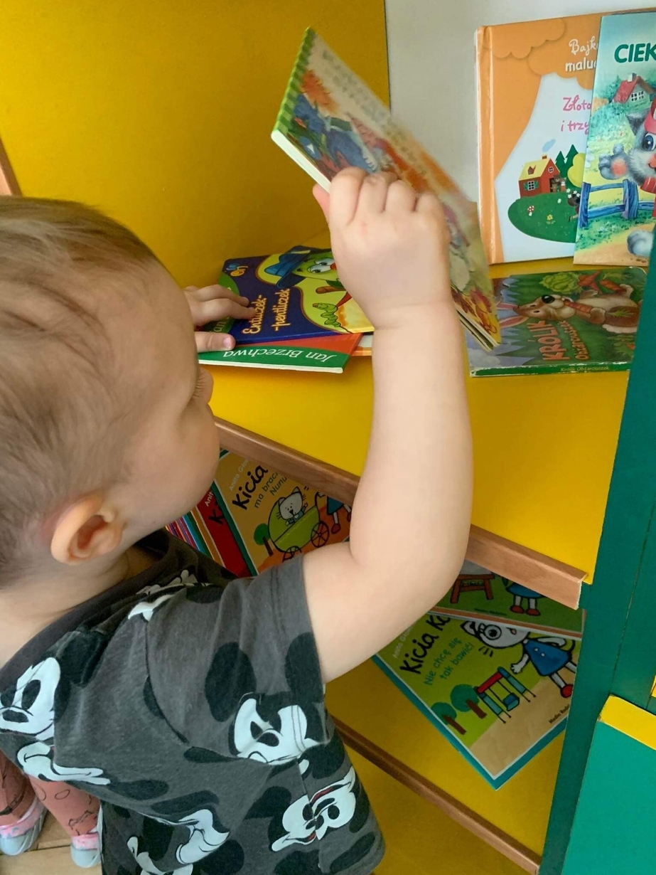 Tego dnia bawiliśmy się w bibliotekę, w której maluszki wypożyczały i oglądały bajeczki.