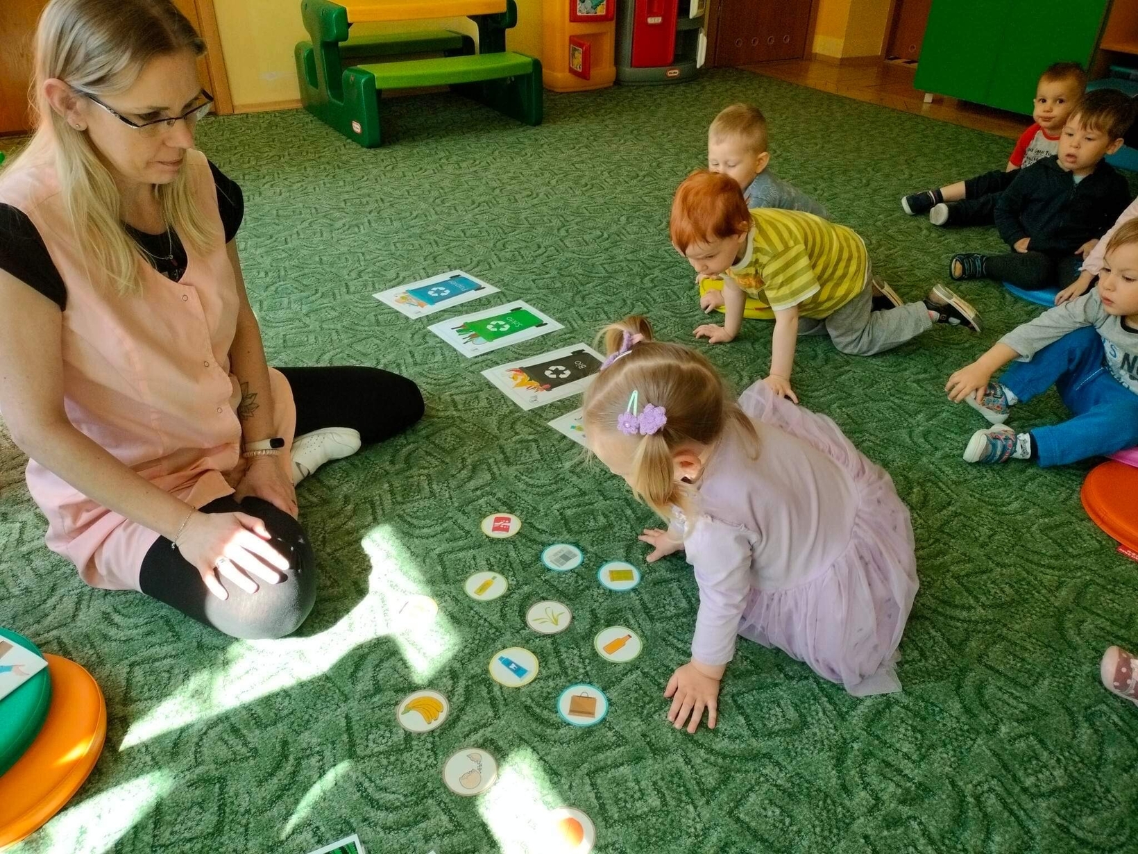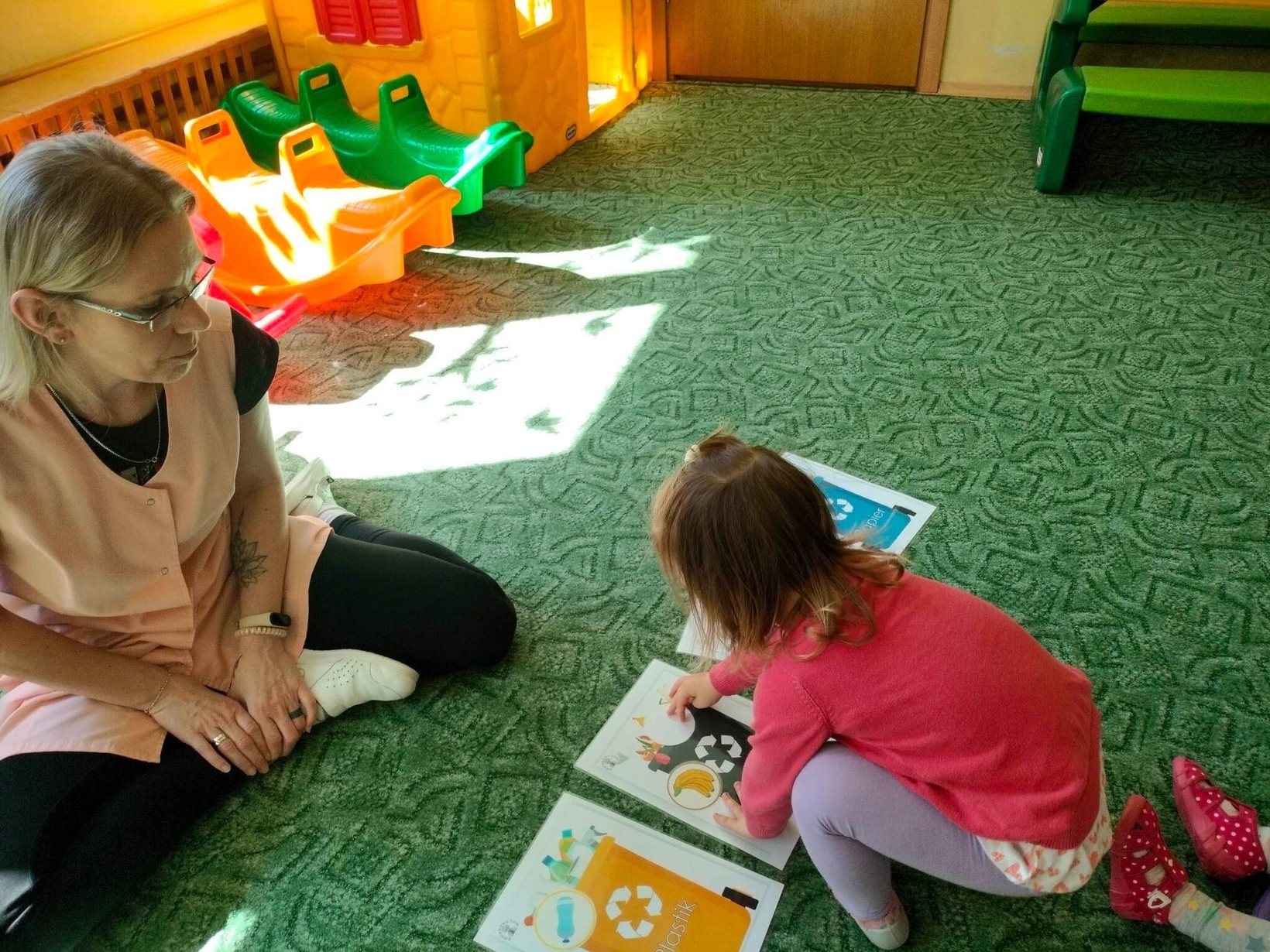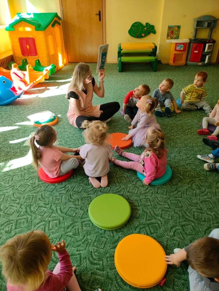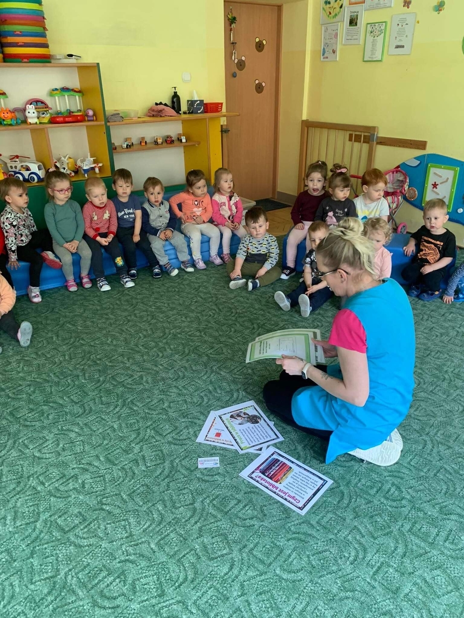 Tego dnia bawiliśmy się w bibliotekę, w której maluszki wypożyczały i oglądały bajeczki.