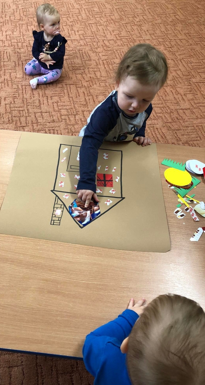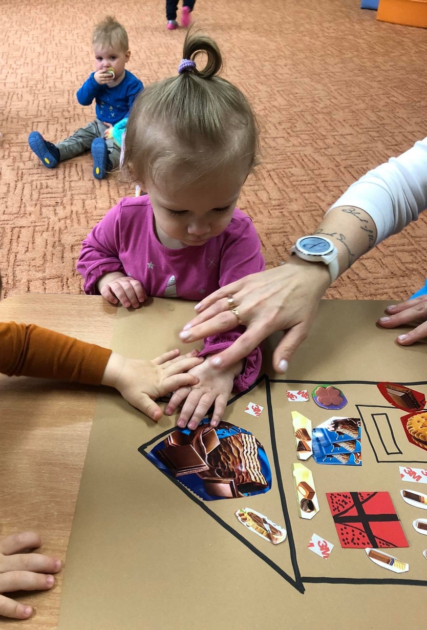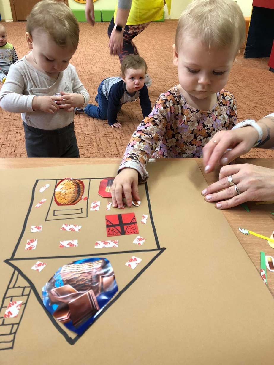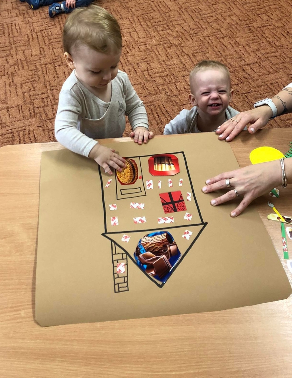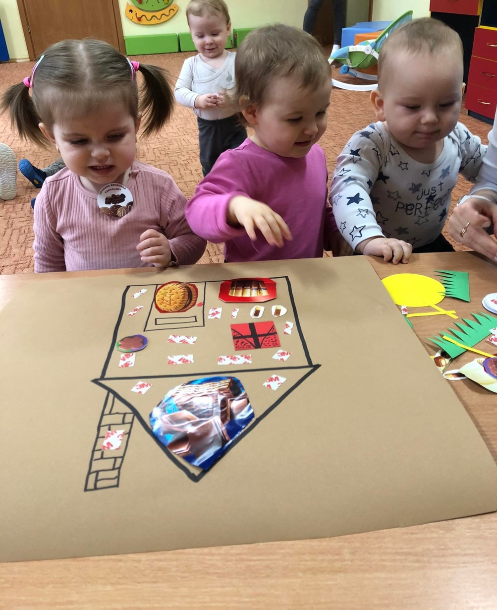 Na grupie biedronek postanowiliśmy troszkę inaczej obchodzić DZIEŃ CZEKOLADY . Dbając o ząbki naszych maluszków zamiast czekoladki zabawiliśmy się w dekorowanie domku kolorowymi papierkami po czekoladkach.