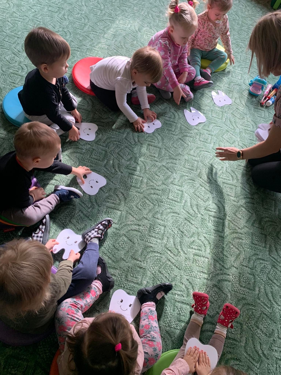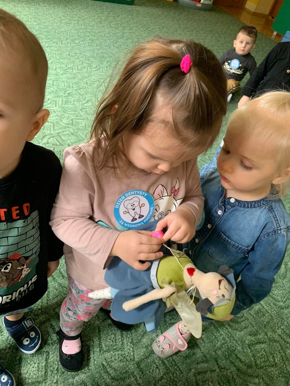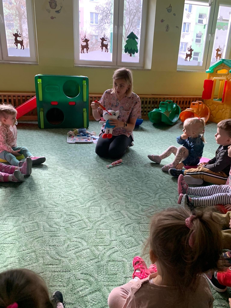 Dnia 5 marca obchodzony jest Dzień Dentysty?. Maluszki w poniedziałek miały okazję dowiedzieć się jak dać o higienę jamy ustnej, aby ząbki były zdrowe, a ich uśmiech błyszczał czystością. Wraz z Kicią Kocią dzieci poznały zawód dentysty. Wszystkie Misie mogły wykazać się umiejętnościami praktycznymi szczotkując zęby grupowemu hipopotamowi Felusiowi. Poznaliśmy przybory niezbędne do utrzymania czystości jamy ustnej??. Dzieci dowiedziały się również co warto zjadać, aby ich ząbki były mocne i zdrowe. Nauczyliśmy się również piosenki o myciu zębów, która bardzo spodobała się naszym Misiom. Wróżka zębuszka na zakończenie wspólnych zabaw wręczyła każdemu uczestnikowi pamiątkowy medal "przyjaciela zdrowych ząbków". Prowadzenie tego typu działań edukacyjnych ma na celu wdrożenie dzieci do codziennego szczotkowania ząbków???.