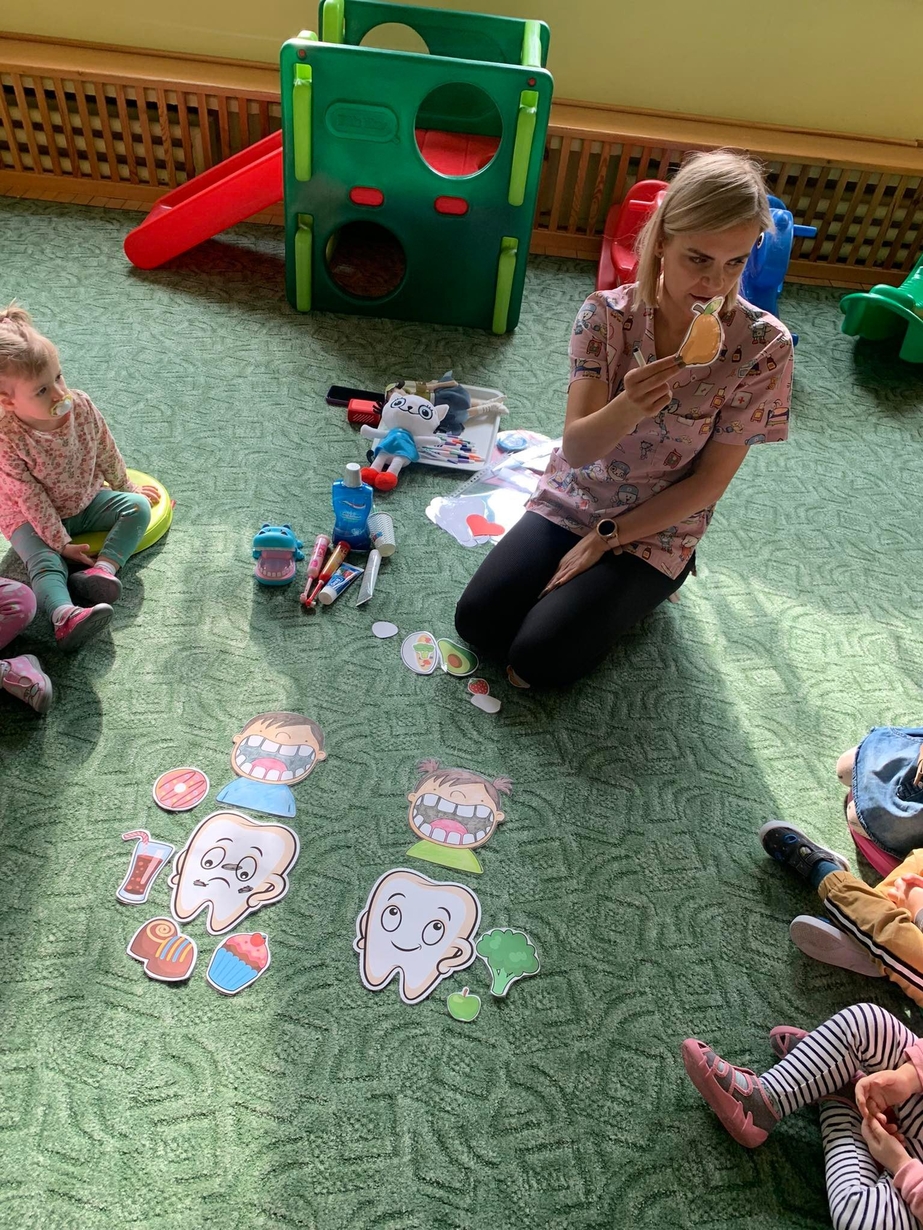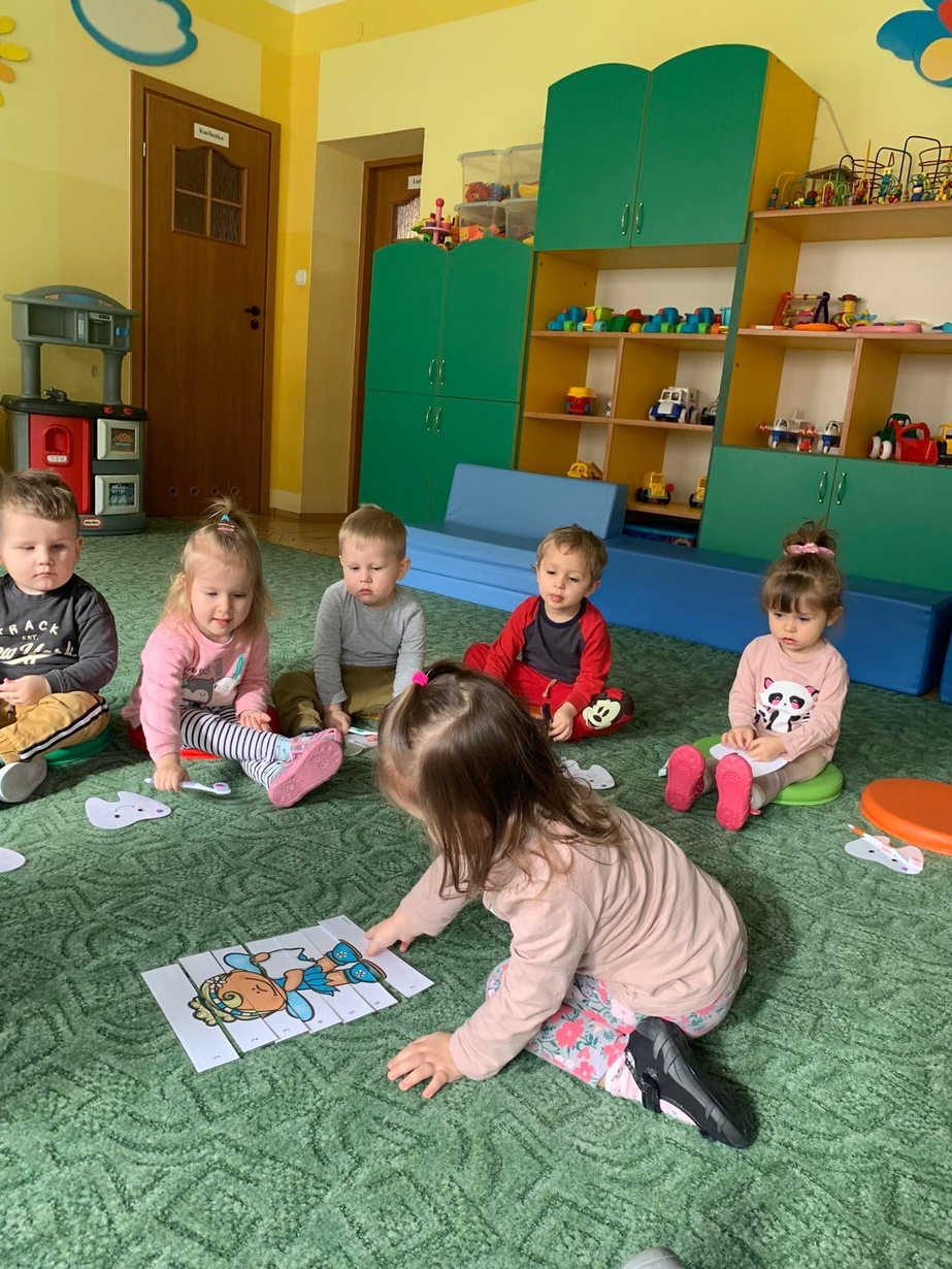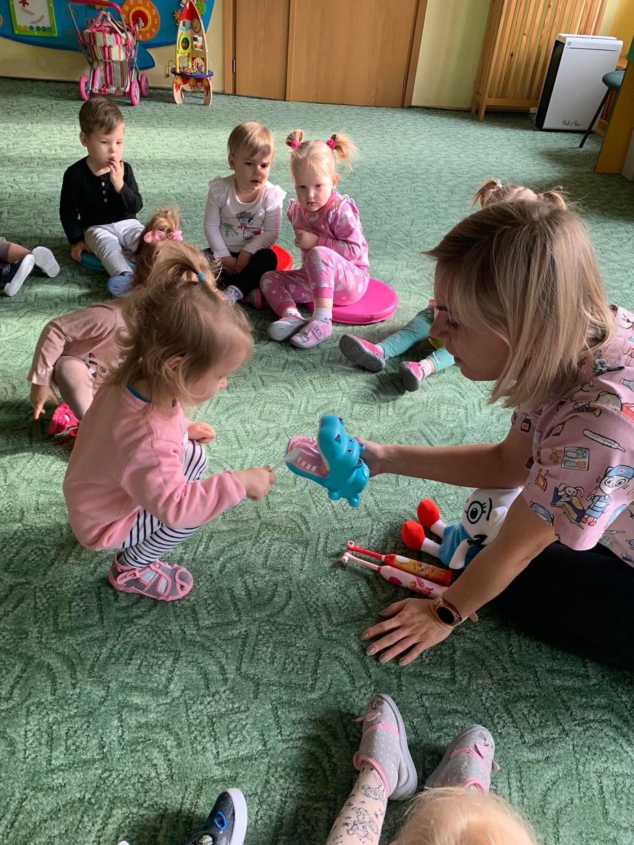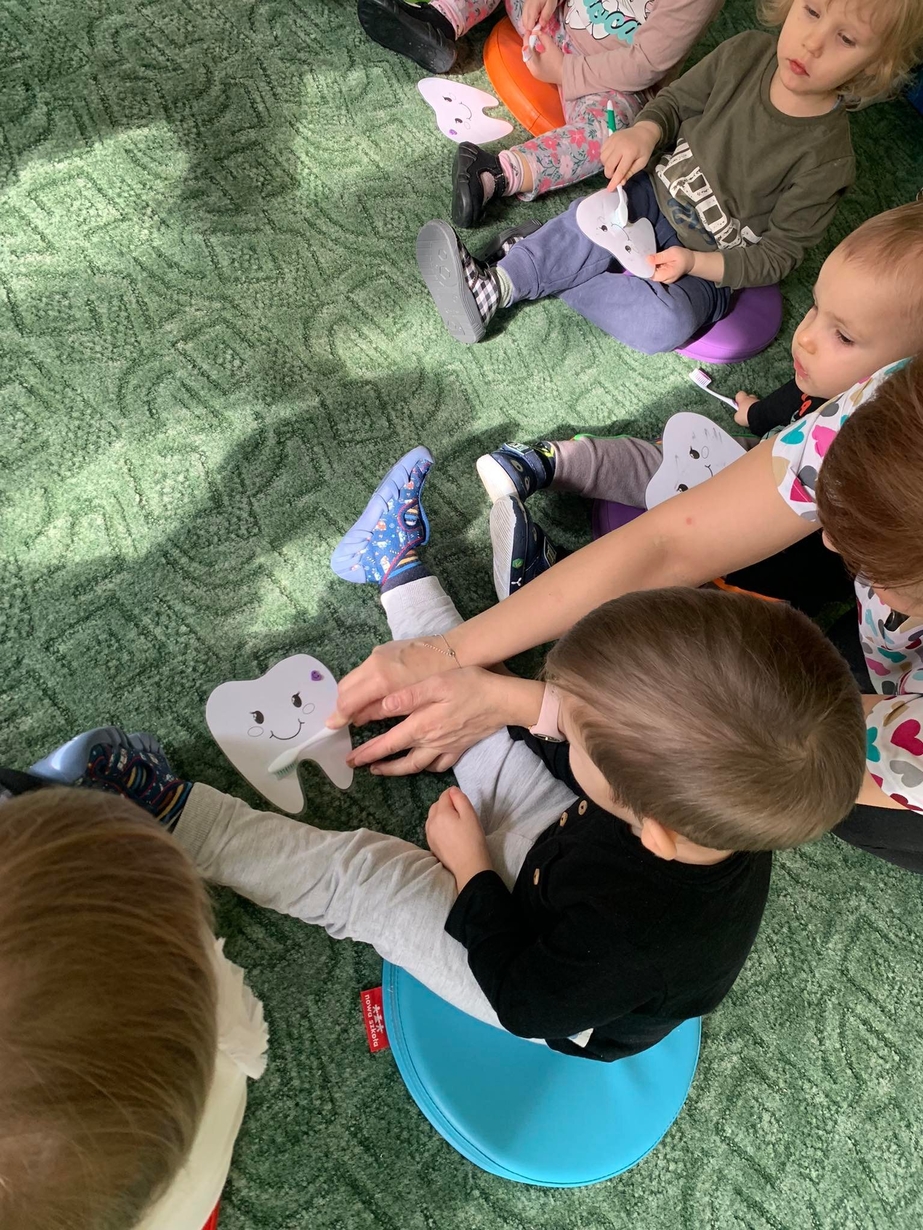 Dnia 5 marca obchodzony jest Dzień Dentysty?. Maluszki w poniedziałek miały okazję dowiedzieć się jak dać o higienę jamy ustnej, aby ząbki były zdrowe, a ich uśmiech błyszczał czystością. Wraz z Kicią Kocią dzieci poznały zawód dentysty. Wszystkie Misie mogły wykazać się umiejętnościami praktycznymi szczotkując zęby grupowemu hipopotamowi Felusiowi. Poznaliśmy przybory niezbędne do utrzymania czystości jamy ustnej??. Dzieci dowiedziały się również co warto zjadać, aby ich ząbki były mocne i zdrowe. Nauczyliśmy się również piosenki o myciu zębów, która bardzo spodobała się naszym Misiom. Wróżka zębuszka na zakończenie wspólnych zabaw wręczyła każdemu uczestnikowi pamiątkowy medal "przyjaciela zdrowych ząbków". Prowadzenie tego typu działań edukacyjnych ma na celu wdrożenie dzieci do codziennego szczotkowania ząbków???.