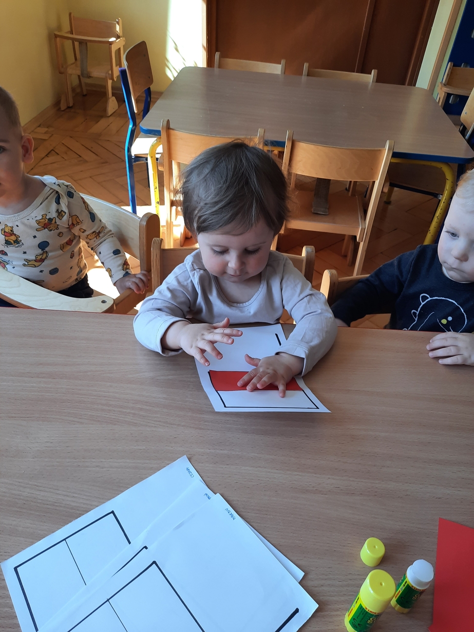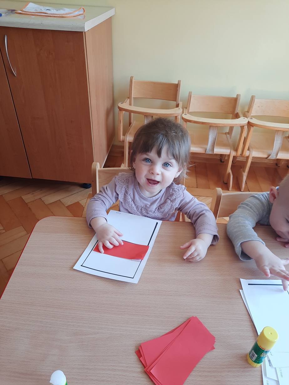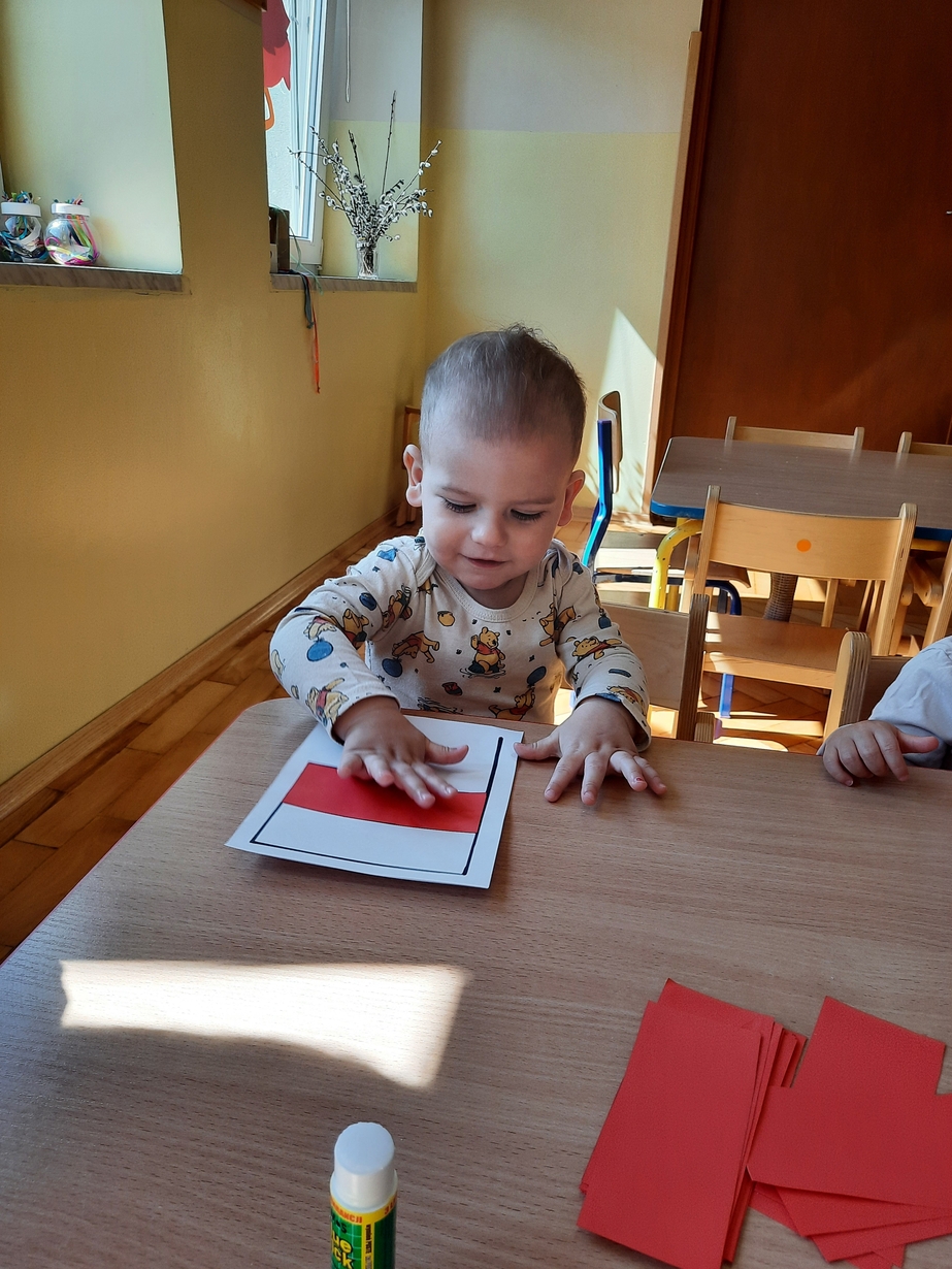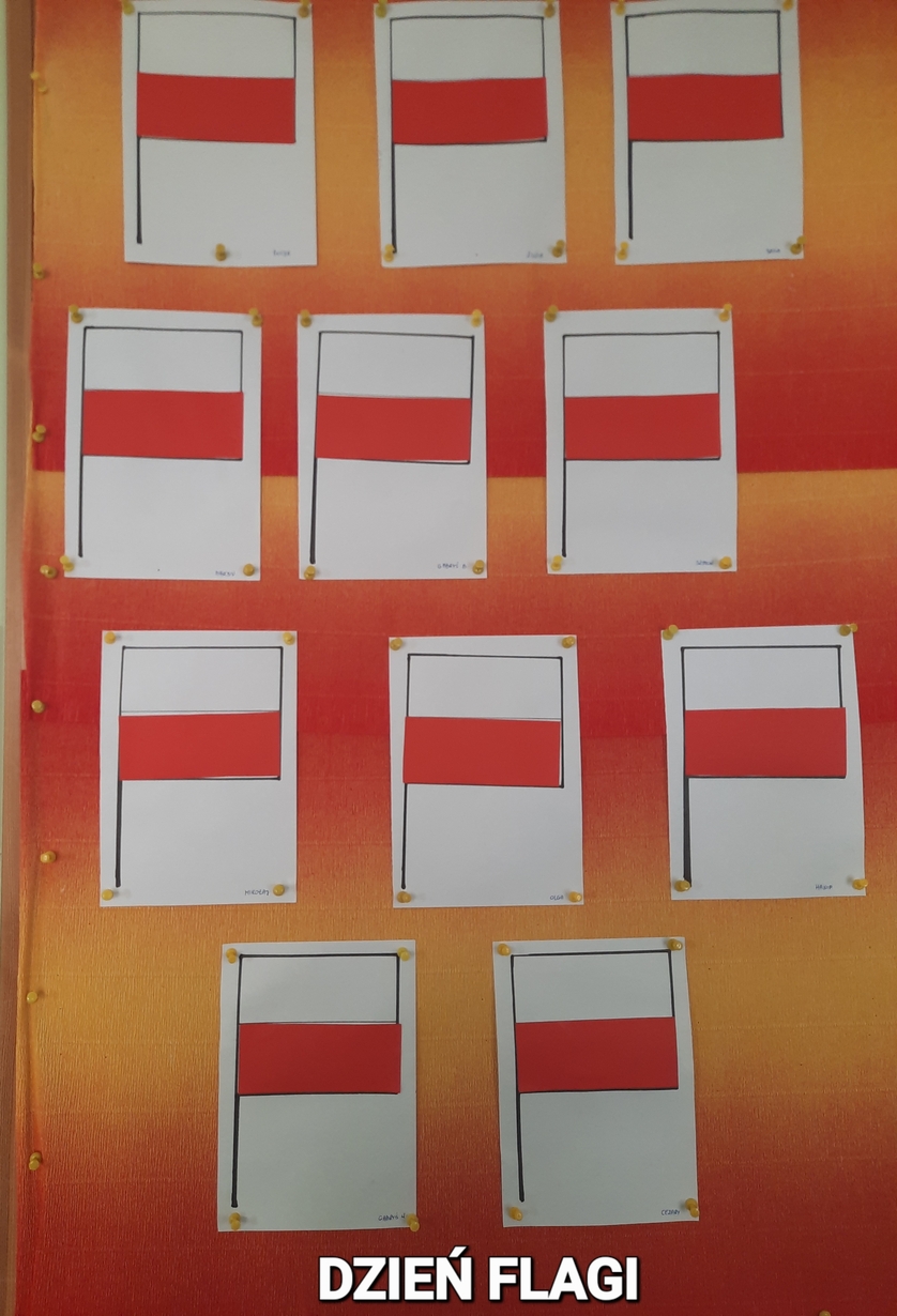 Dzieci z tej okazji wykonały pracę plastyczną Flagę Polski - nasz symbol narodowy .