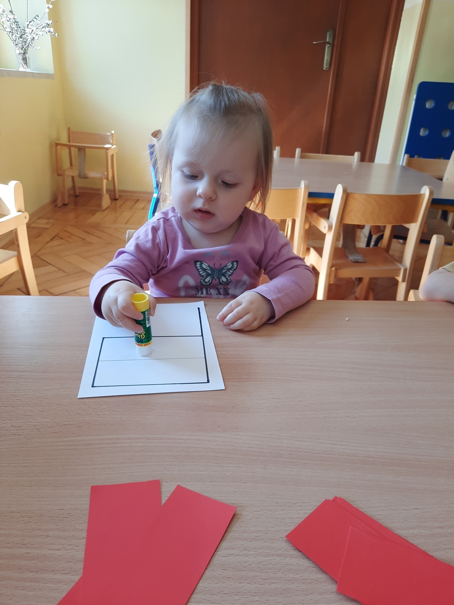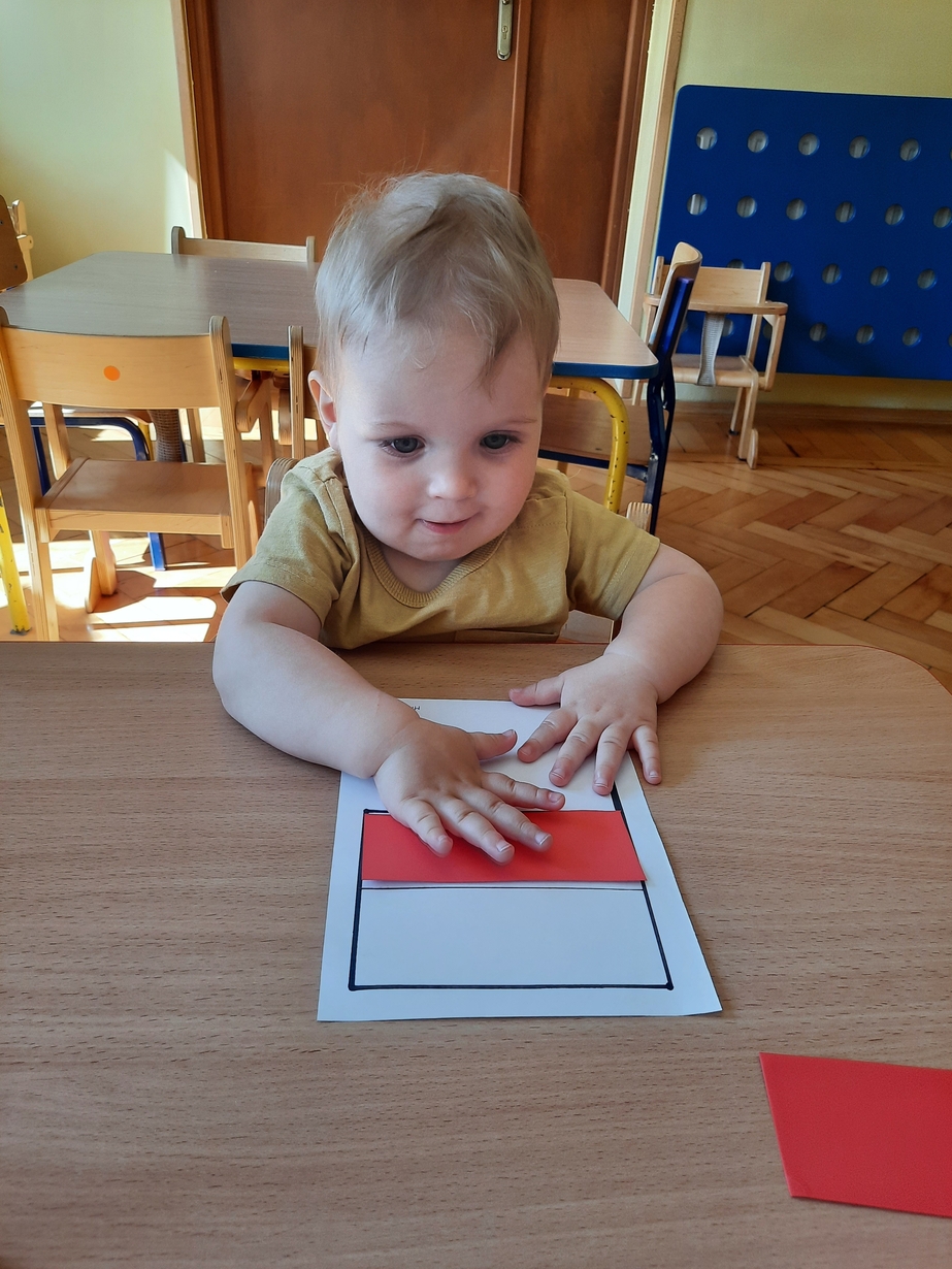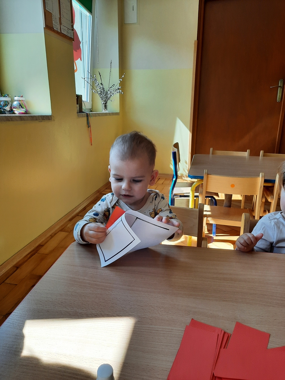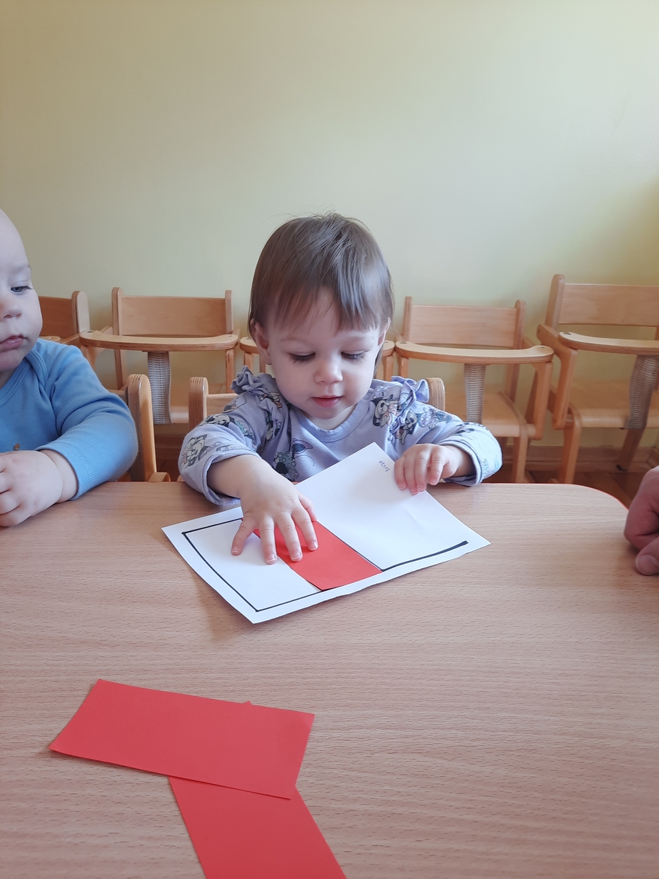 Dzieci z tej okazji wykonały pracę plastyczną Flagę Polski - nasz symbol narodowy .
