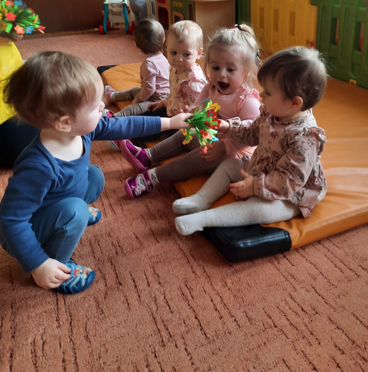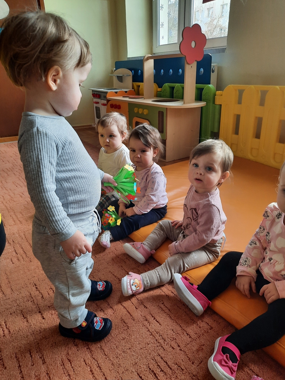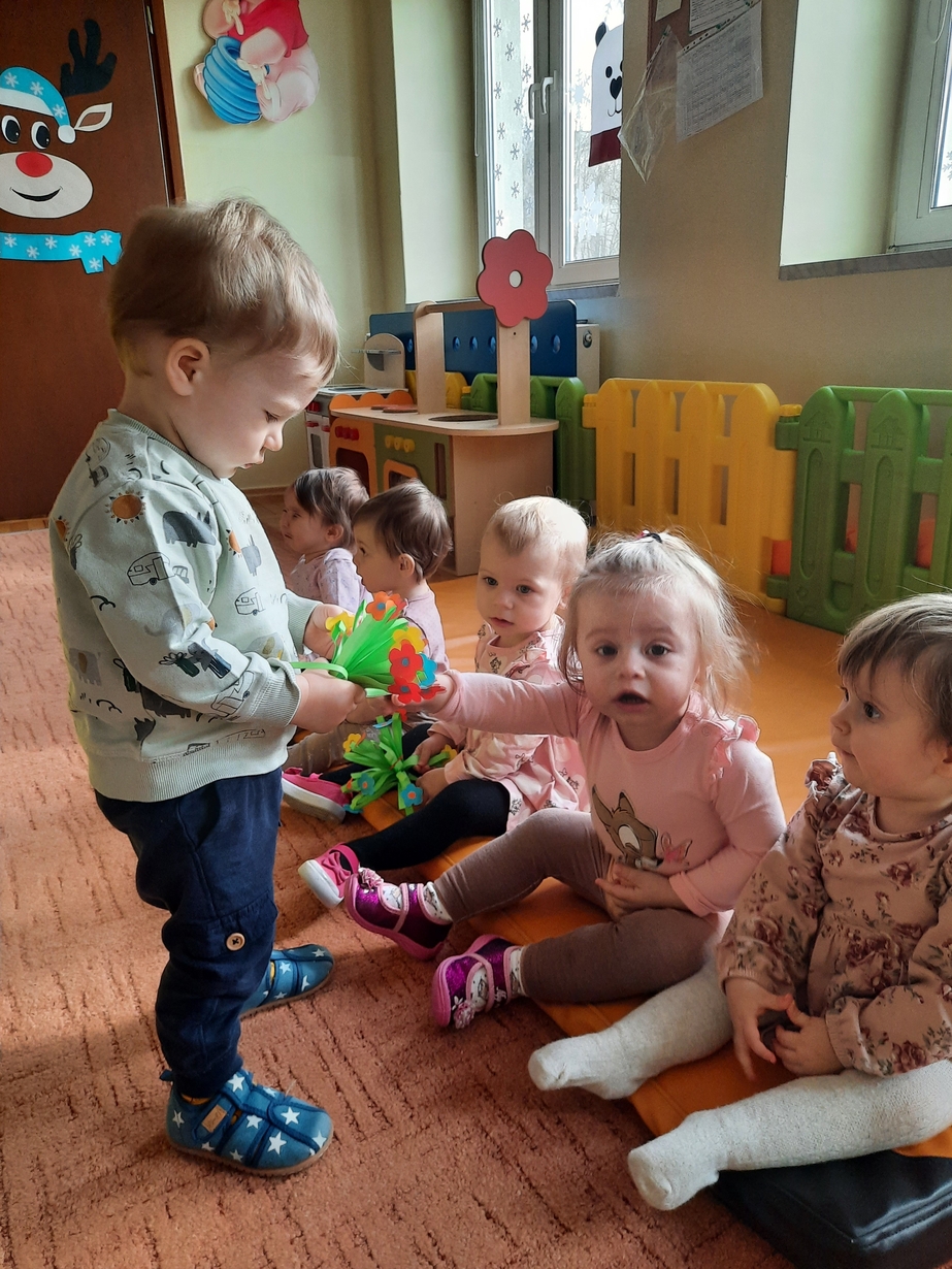Dzisiaj chłopcy z grupy biedronek chcąc uczcić ten dzień, przygotowali dla Swoich małych koleżanek bukieciki kwiatów.