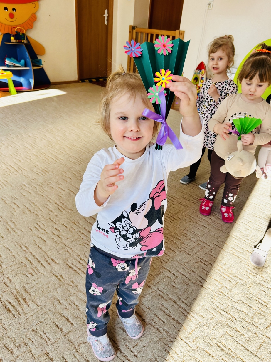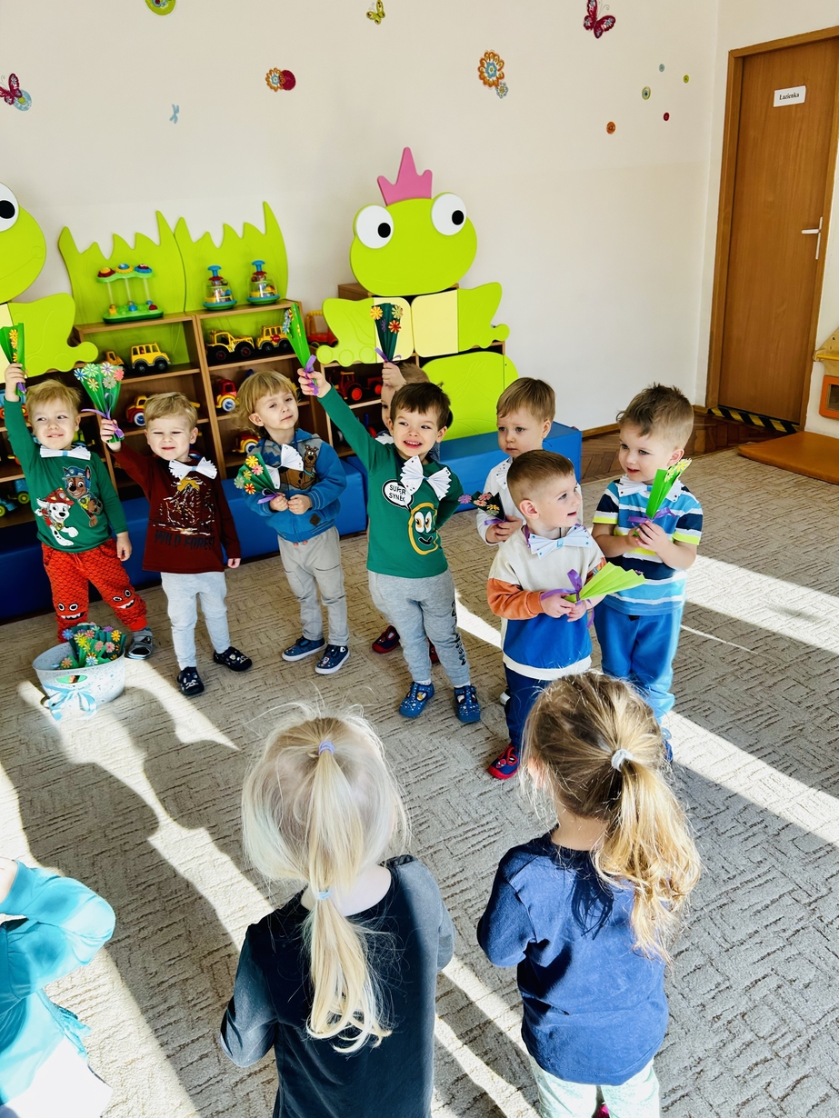 Dzień Kobiet to wyjątkowy dzień , ważny dla wszystkich kobiet ,zarówno tych dużych ,jak i małych . Radosna atmosfera była już od samego rana . W tym dniu chłopcy złożyli życzenia zaśpiewali piosenkę pt. „Marzec " i wręczyli piękne laurki . Tego dnia można było usłyszeć na grupie Motylków taneczną muzykę , w rytm której bawiły się zarówno dziewczynki jak i chłopcy .
