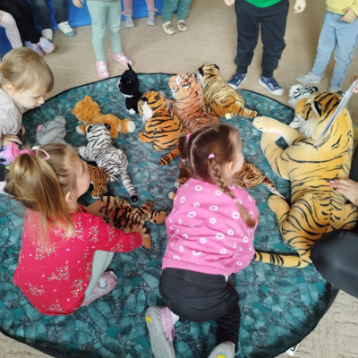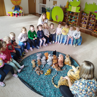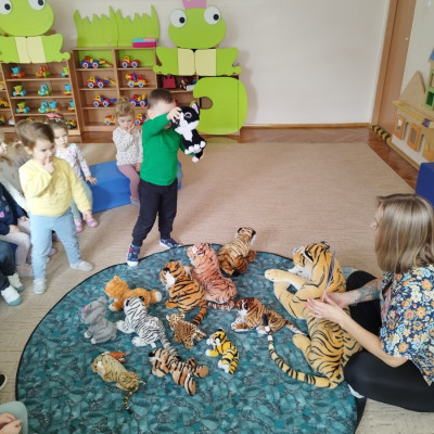 Dzieci poznawały dzikie koty i bawiły się pluszowymi tygrysami i kotkami.
