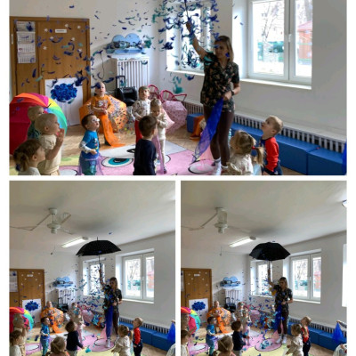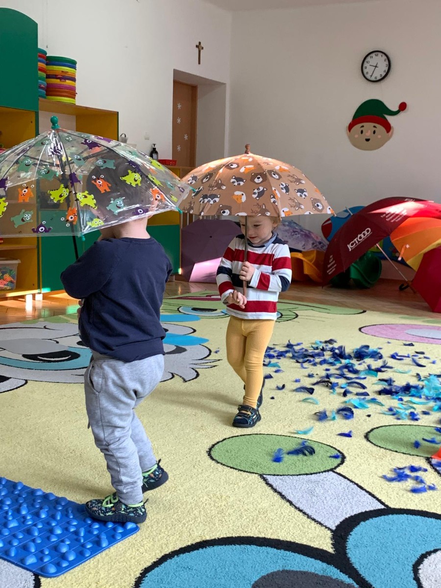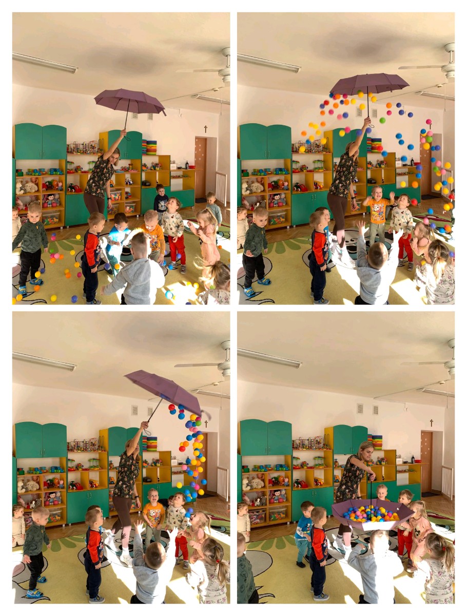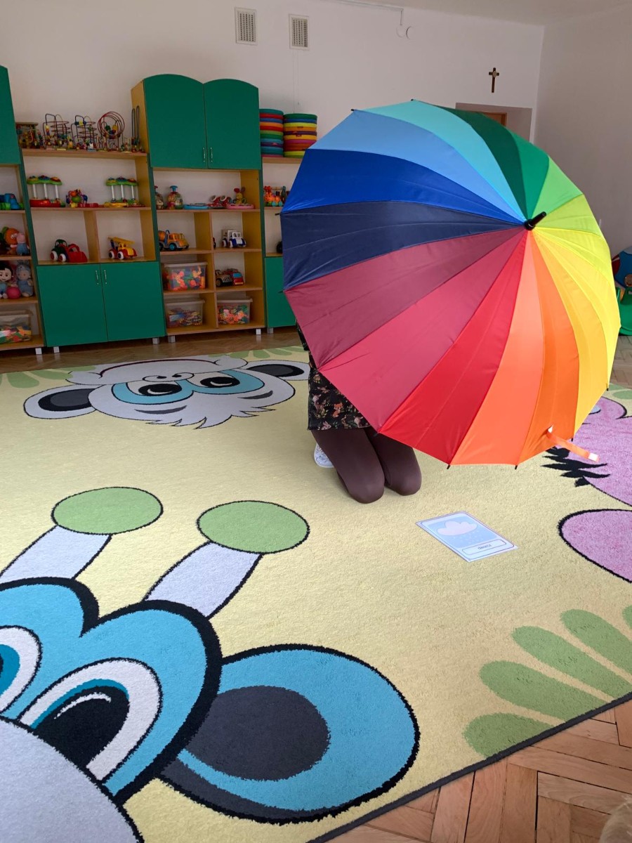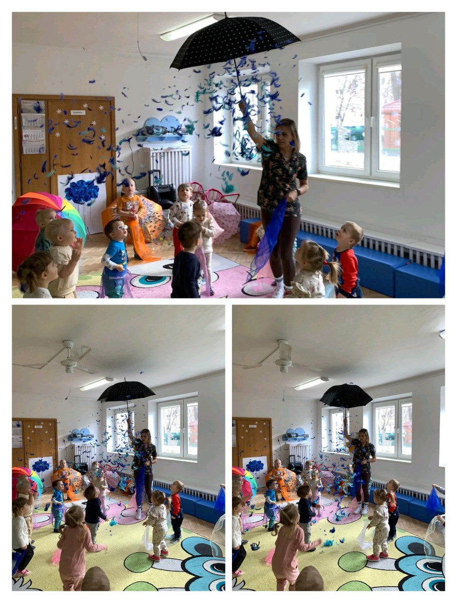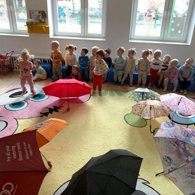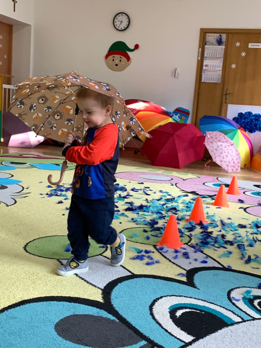 10 lutego obchodzimy Międzynarodowy Dzień Parasola☂️☂️☂️, który był w naszej grupie doskonałą okazją do zapoznania się ze zjawiskiem pogodowym jakim jest deszcz 🌧️ oraz z przydatną podczas jego opadów parasolką🌂☂️. Podczas tego dnia nasze MISIE 🐻 miały możliwość nauki właściwego posługiwania się parasolem, a także uczestniczenia w zabawach z jego użyciem.