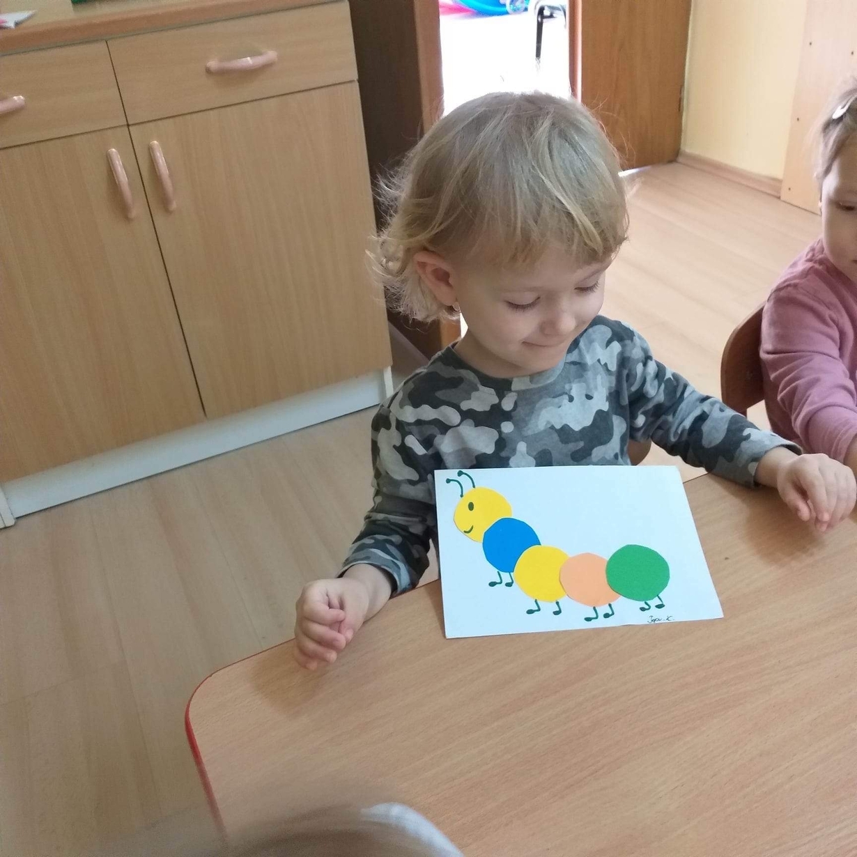 Ten tydzień zaczęliśmy od wyklejania stonogi i malowania jej części.